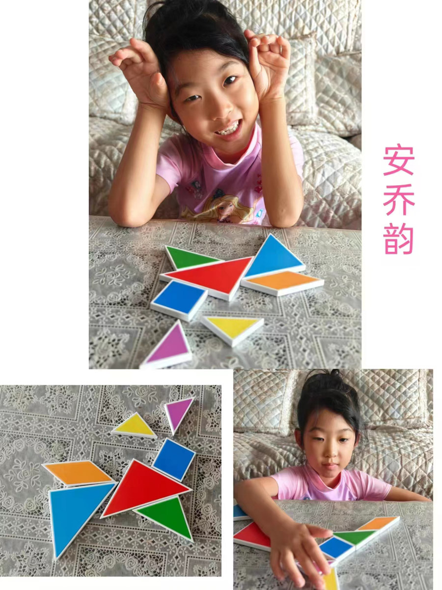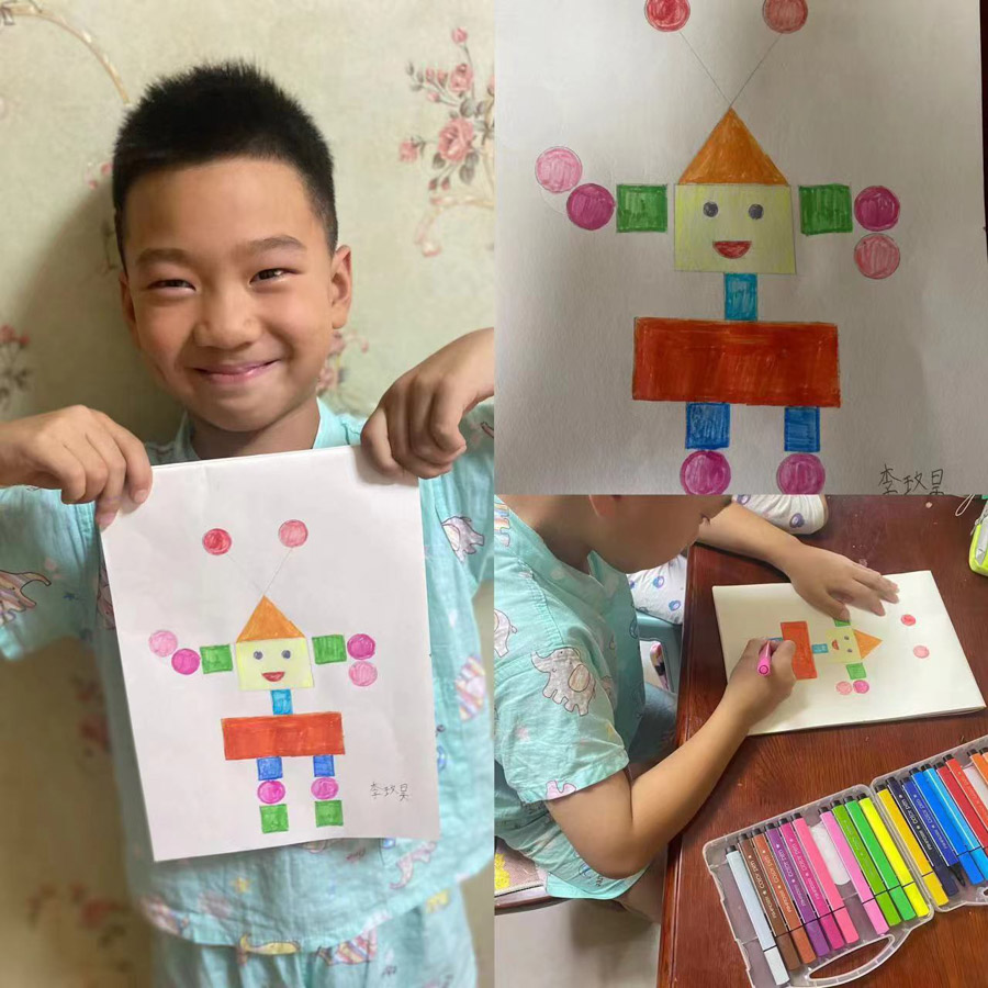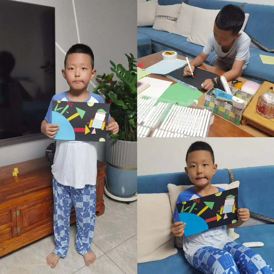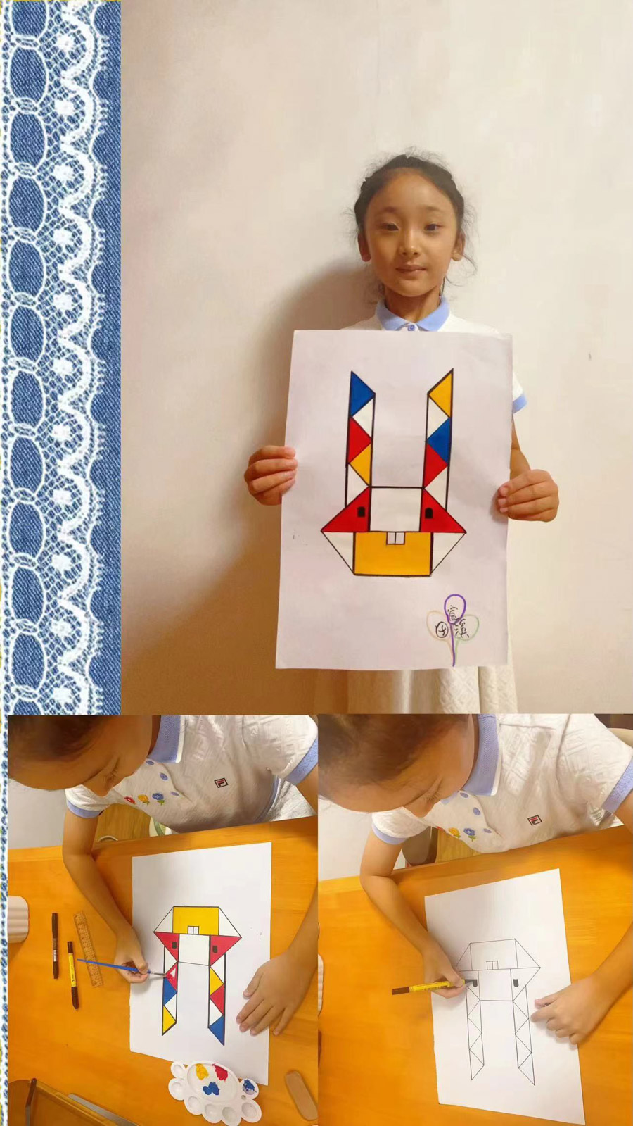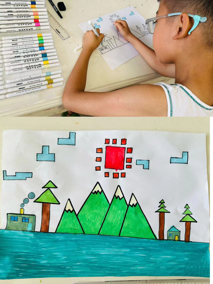 在这样形式新颖,寓教于乐的拼贴绘制过程中,既让孩子巩固了所学的知识,又丰富了孩子们的暑期生活。古希腊数学家普罗克鲁斯说:“哪里有数,哪里就有美。”