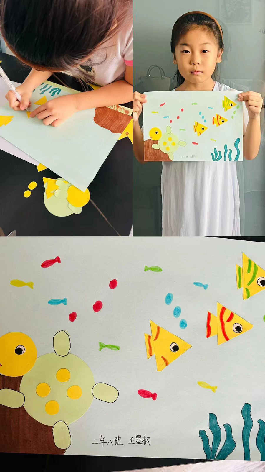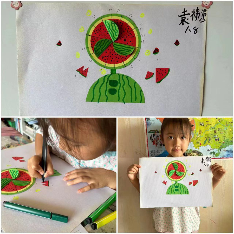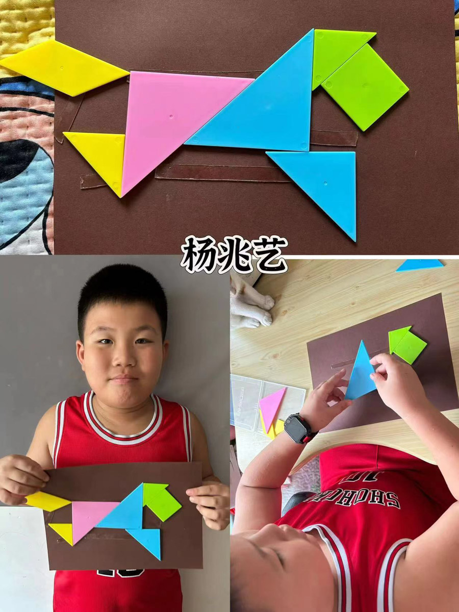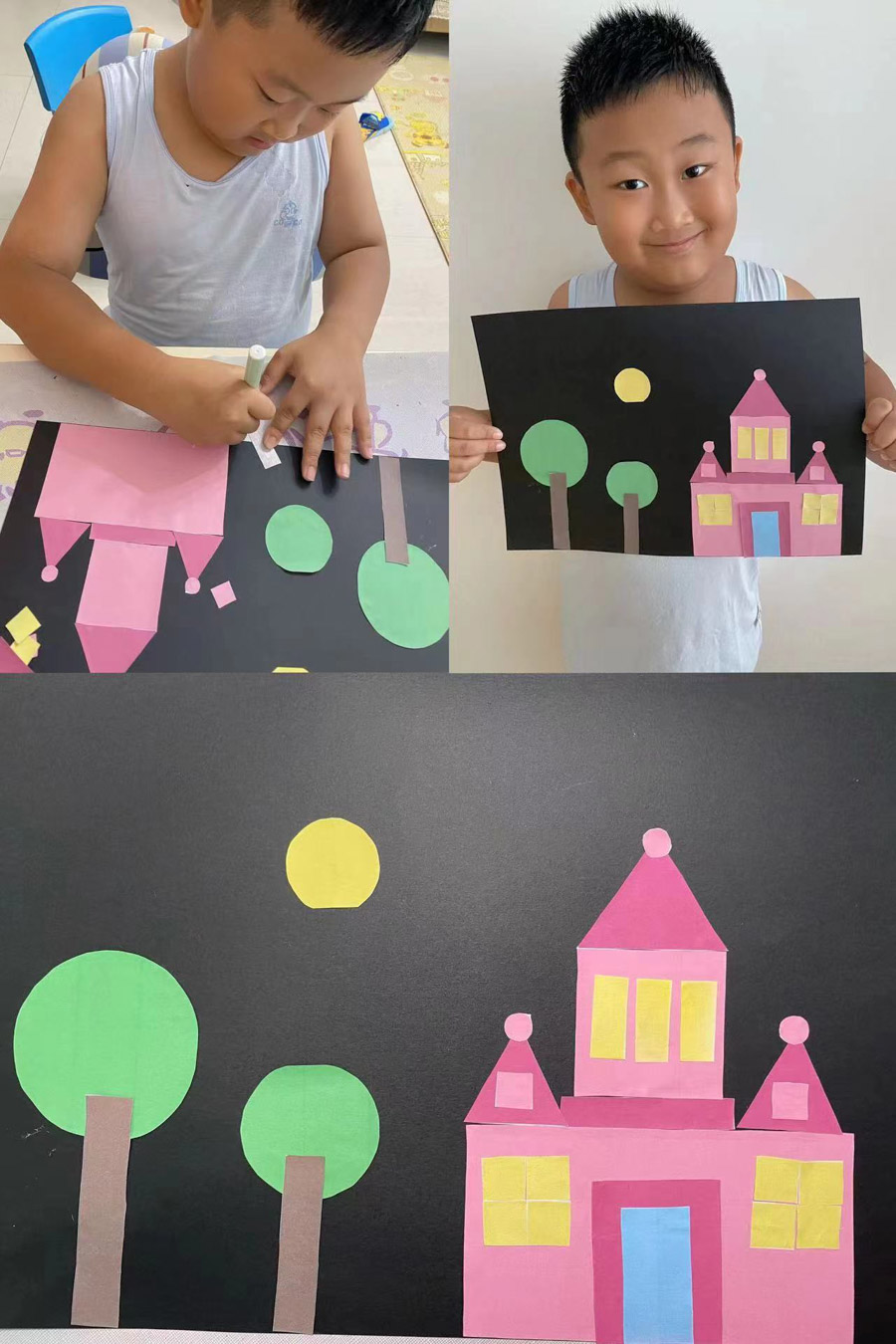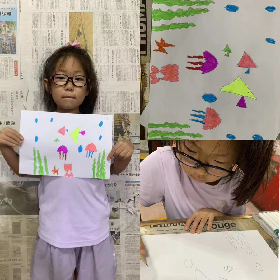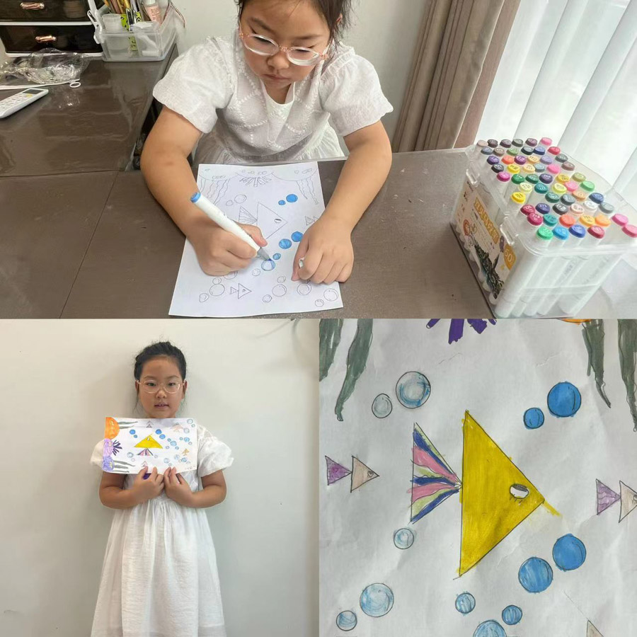 在这样形式新颖,寓教于乐的拼贴绘制过程中,既让孩子巩固了所学的知识,又丰富了孩子们的暑期生活。古希腊数学家普罗克鲁斯说:“哪里有数,哪里就有美。”