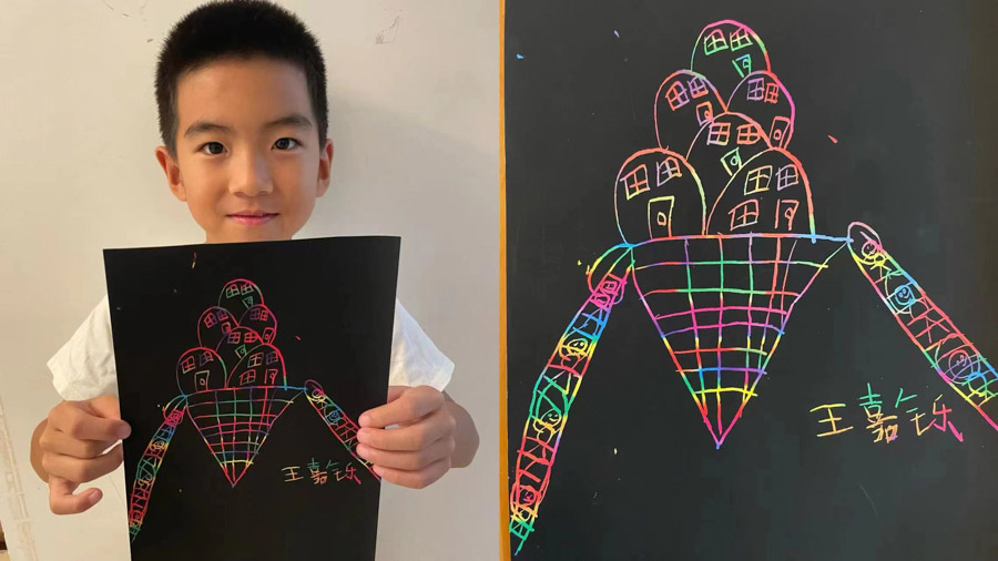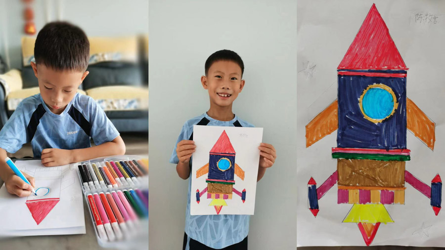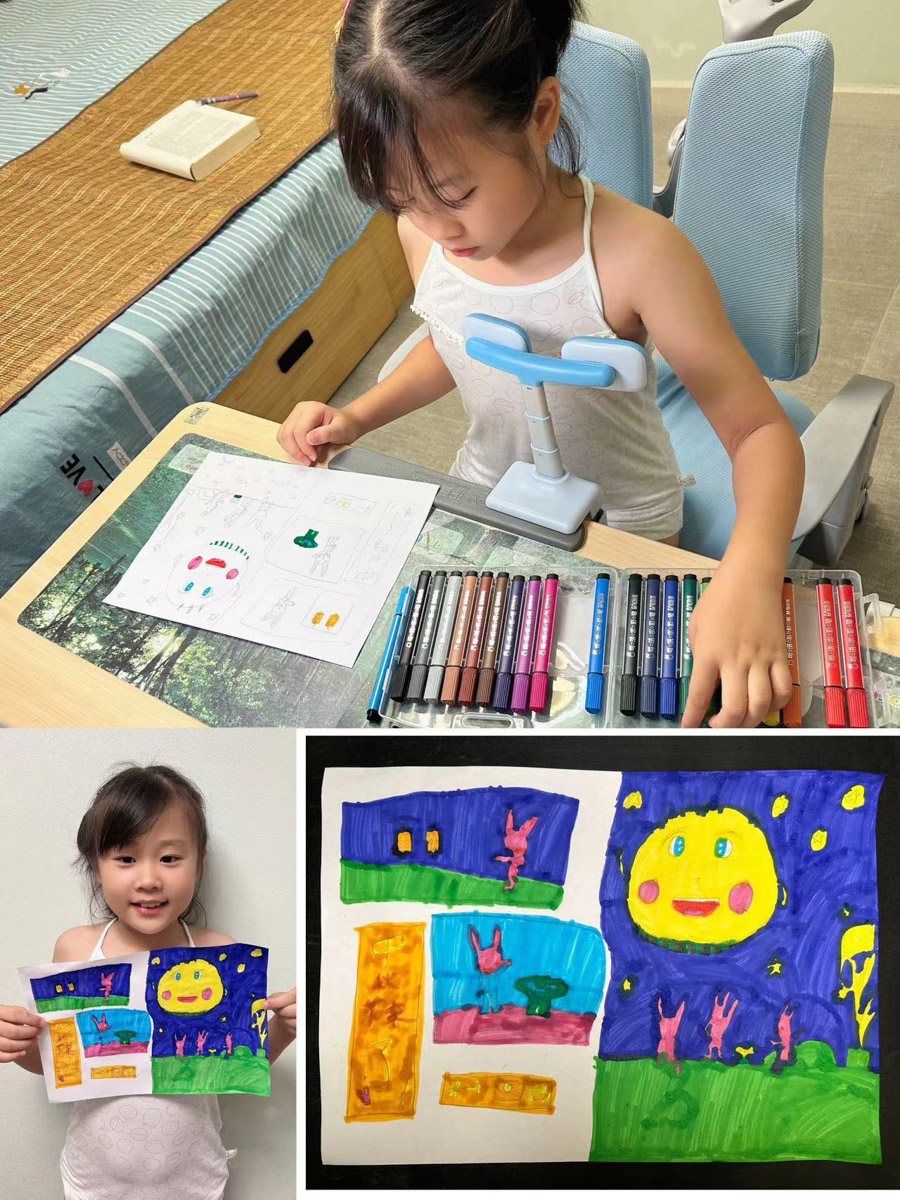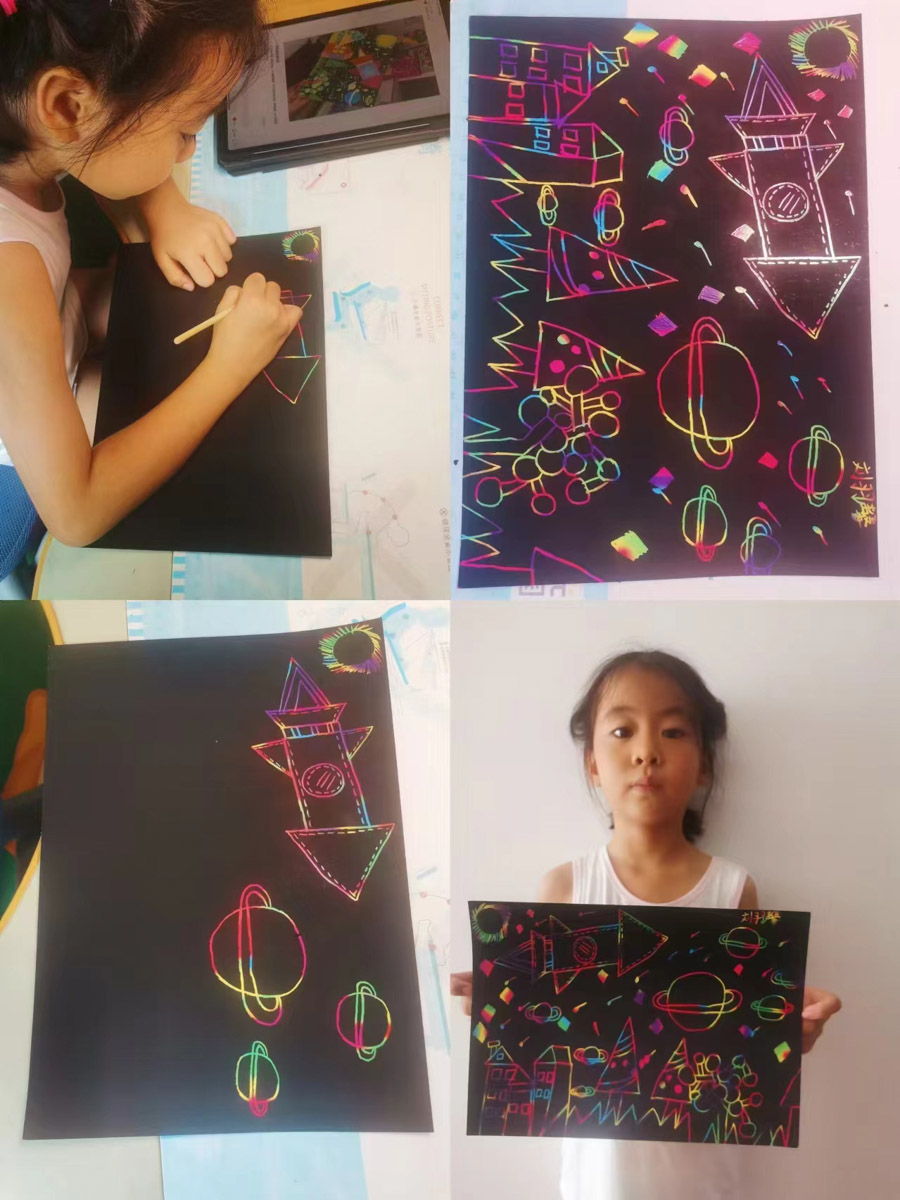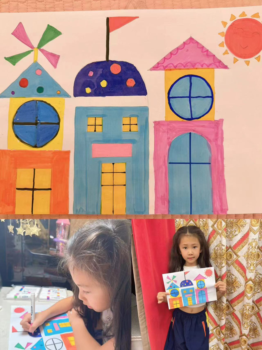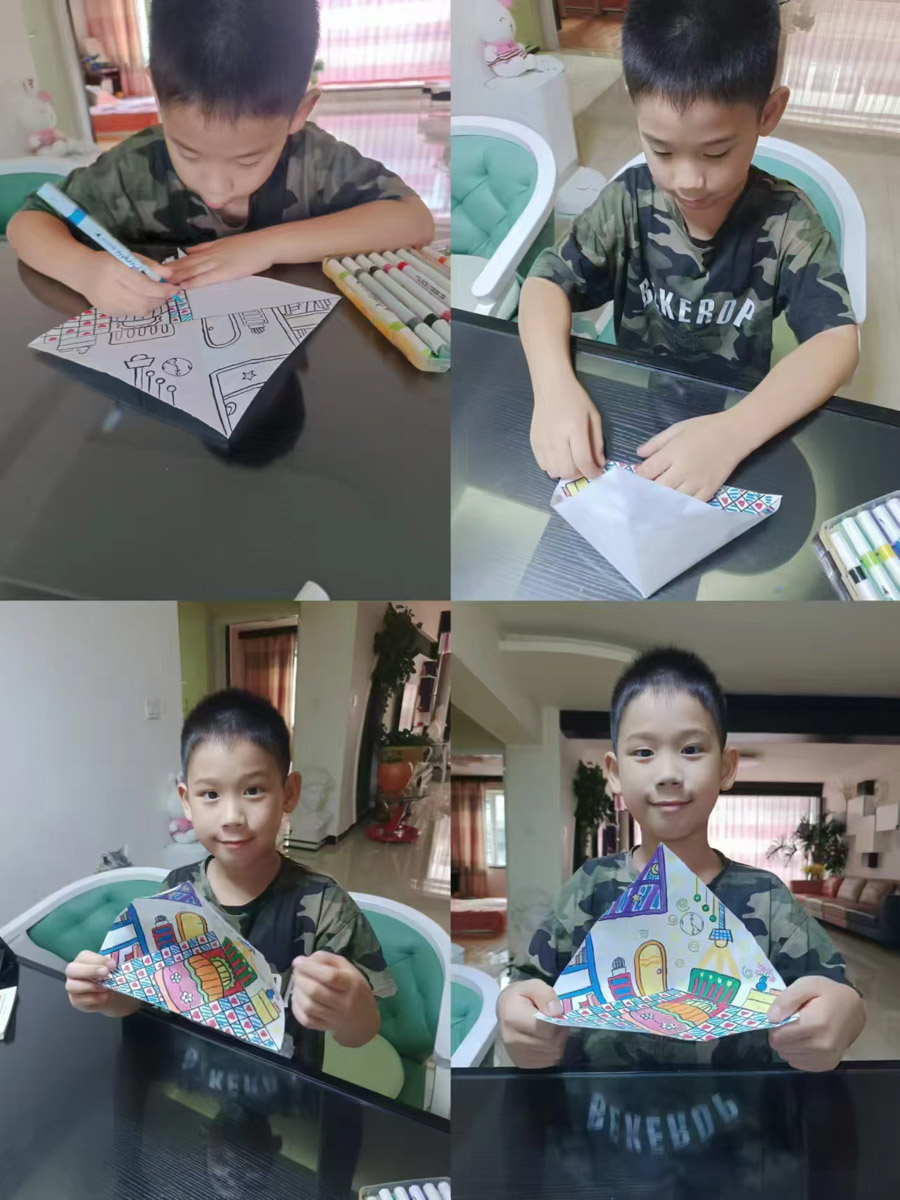 在这样形式新颖,寓教于乐的拼贴绘制过程中,既让孩子巩固了所学的知识,又丰富了孩子们的暑期生活。古希腊数学家普罗克鲁斯说:“哪里有数,哪里就有美。”