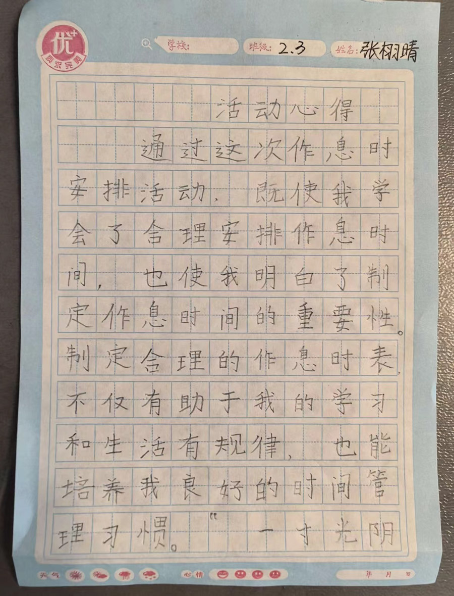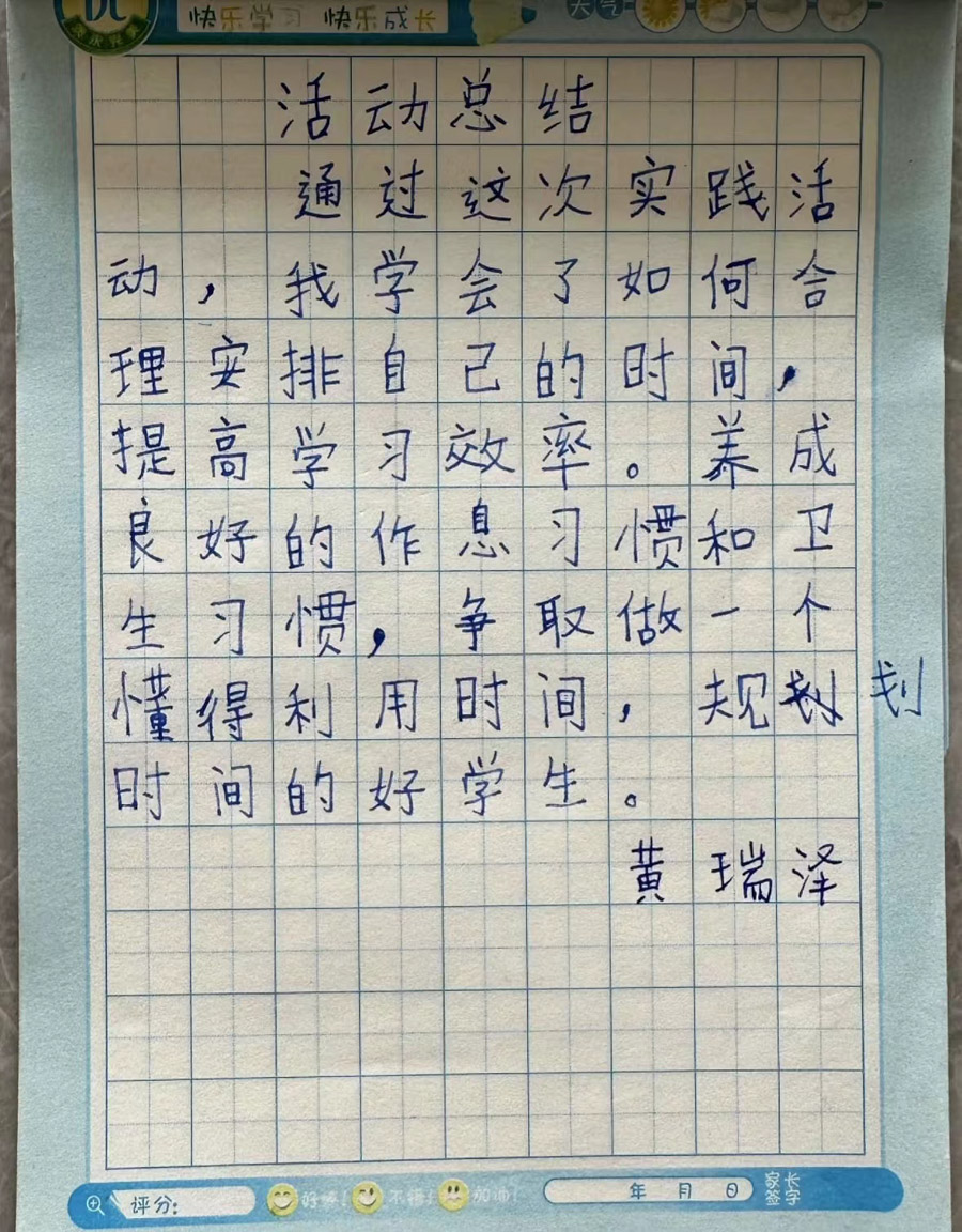 愿孩子们能够通过这次实践活动,开始学会规划自己的时间,变得更加自律、自觉,学会珍惜当下,从而创造更加美好灿烂的未来。