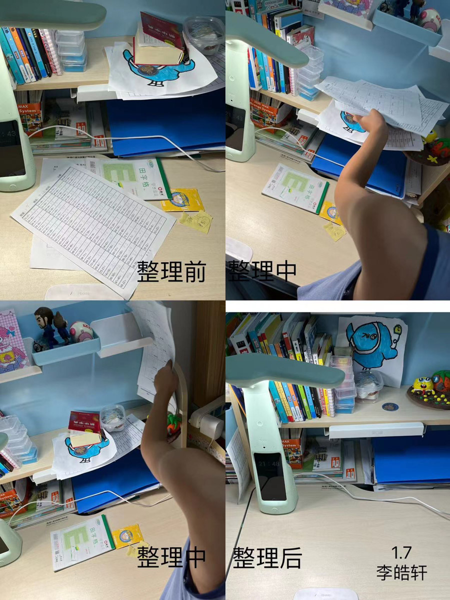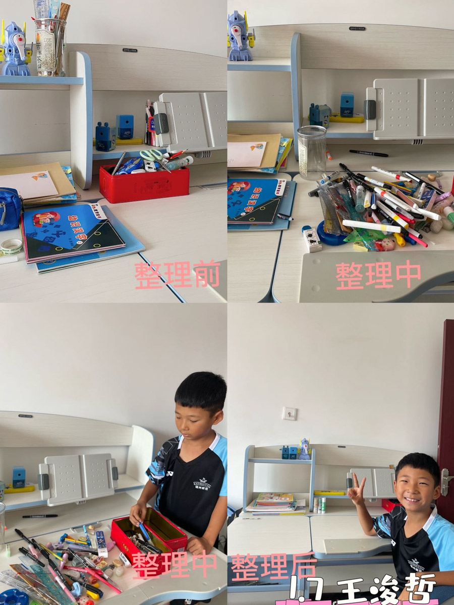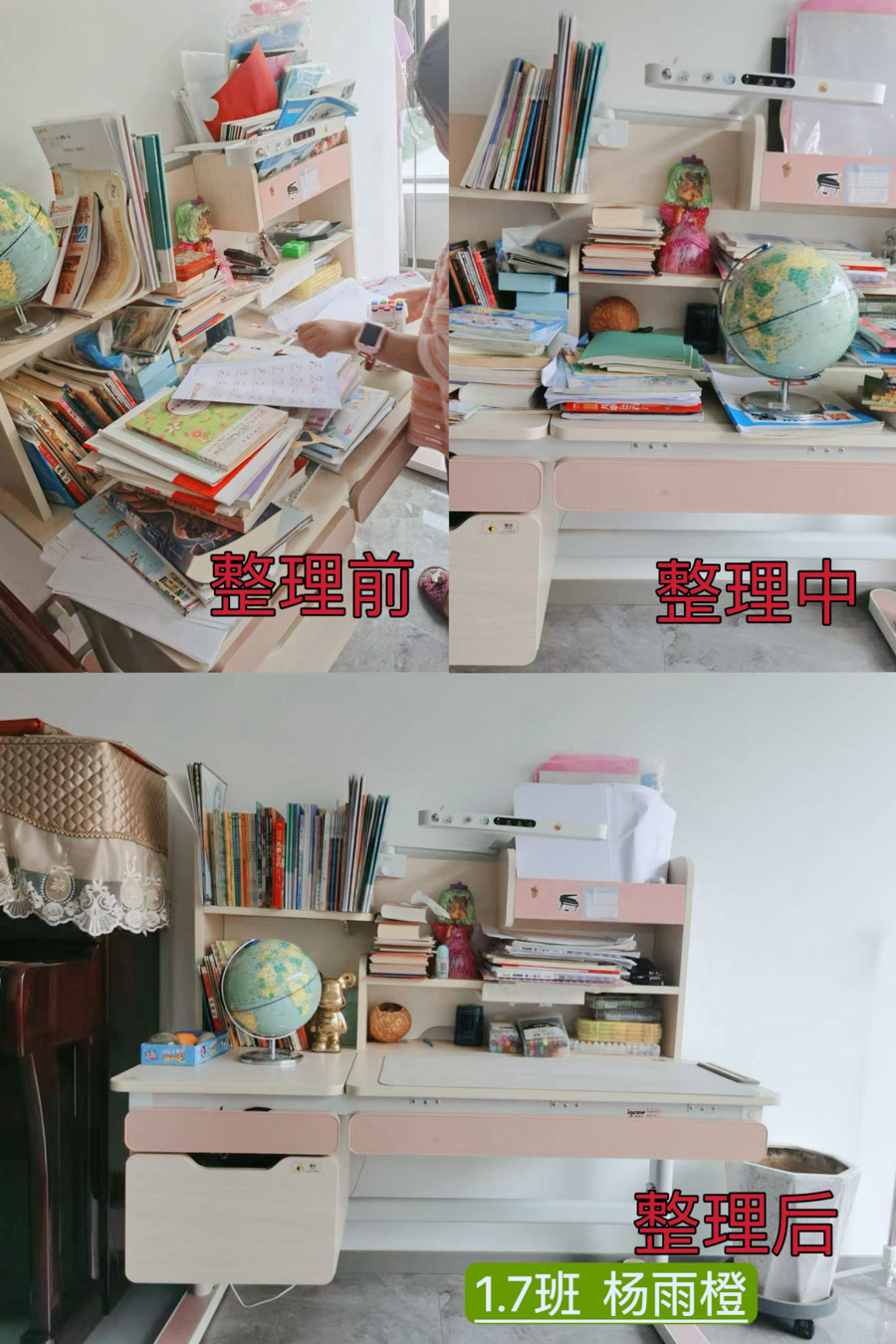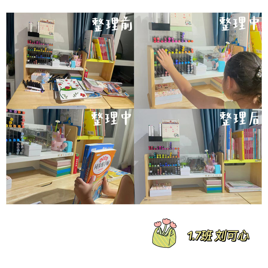 书桌是孩子们每天写作业都要用的,但是好多同学的书桌上堆满了各种书籍和文具。学生先清理书桌上的杂物,然后将书籍、文具等物品进行分类摆放。可以根据物品的大小、形状等进行排列,使书桌更加整洁美观。经过一番分类与整理,原本乱糟糟的书桌整齐多了,一起看看孩子们整理的书桌吧!