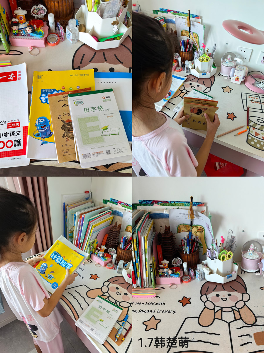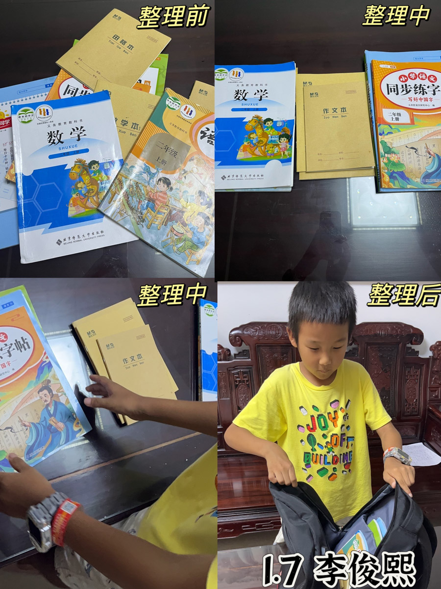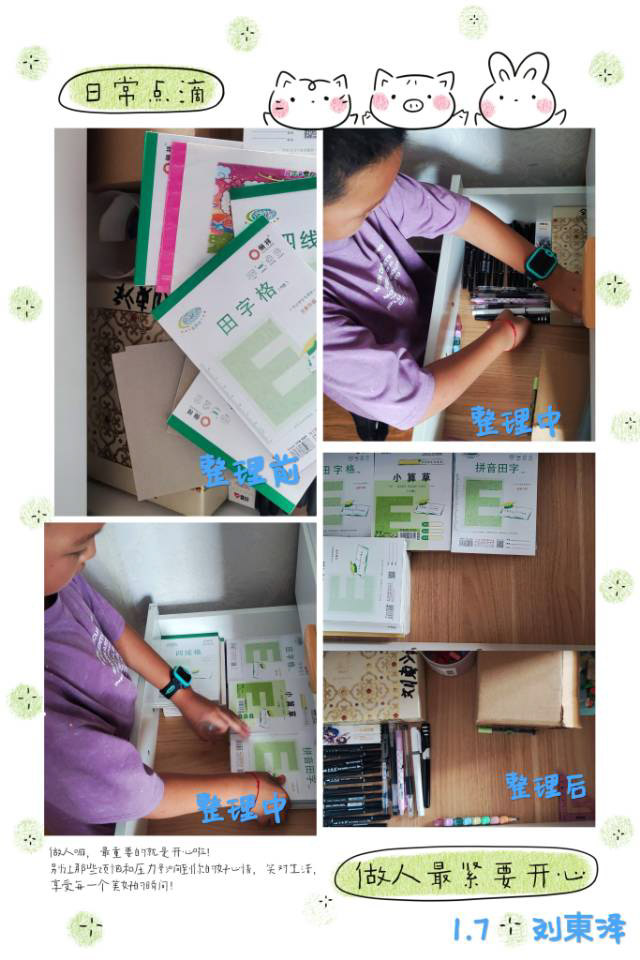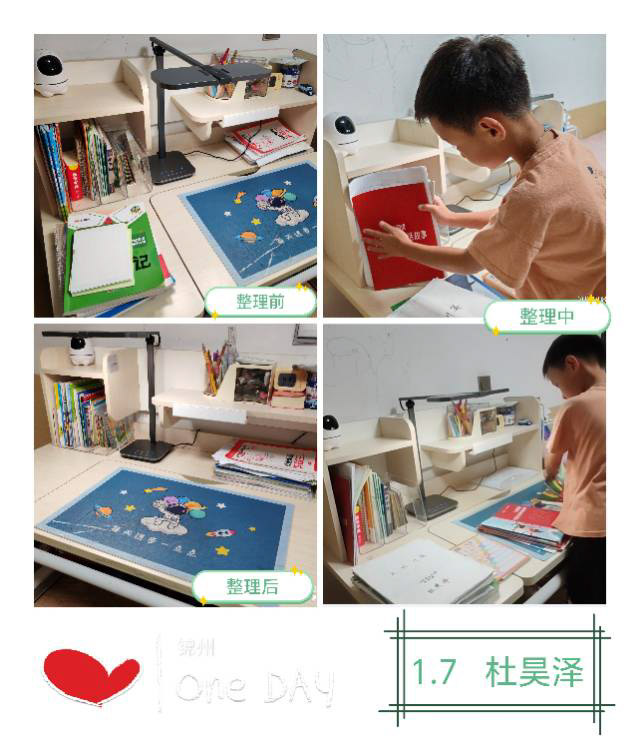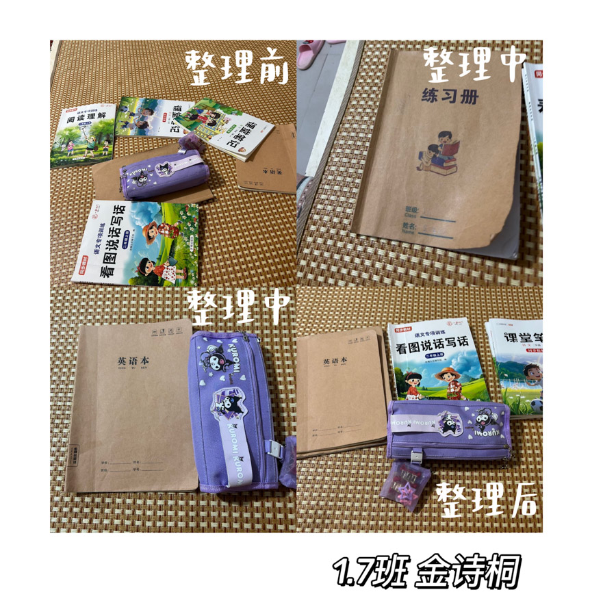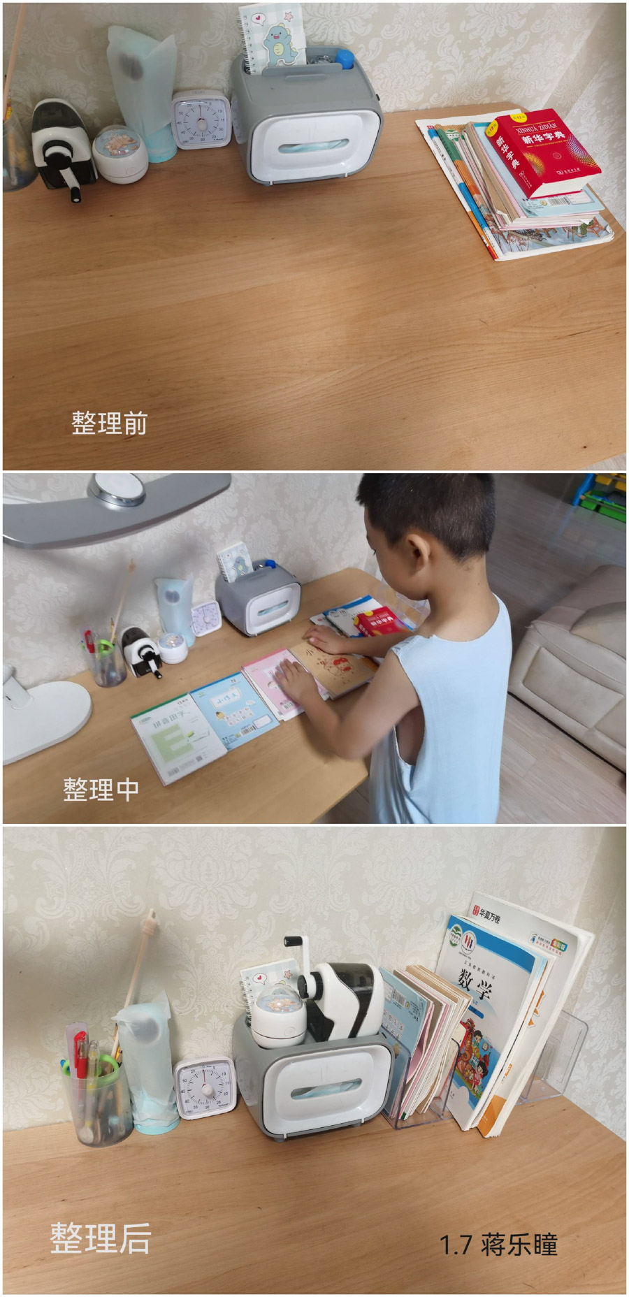 书桌是孩子们每天写作业都要用的,但是好多同学的书桌上堆满了各种书籍和文具。学生先清理书桌上的杂物,然后将书籍、文具等物品进行分类摆放。可以根据物品的大小、形状等进行排列,使书桌更加整洁美观。经过一番分类与整理,原本乱糟糟的书桌整齐多了,一起看看孩子们整理的书桌吧!