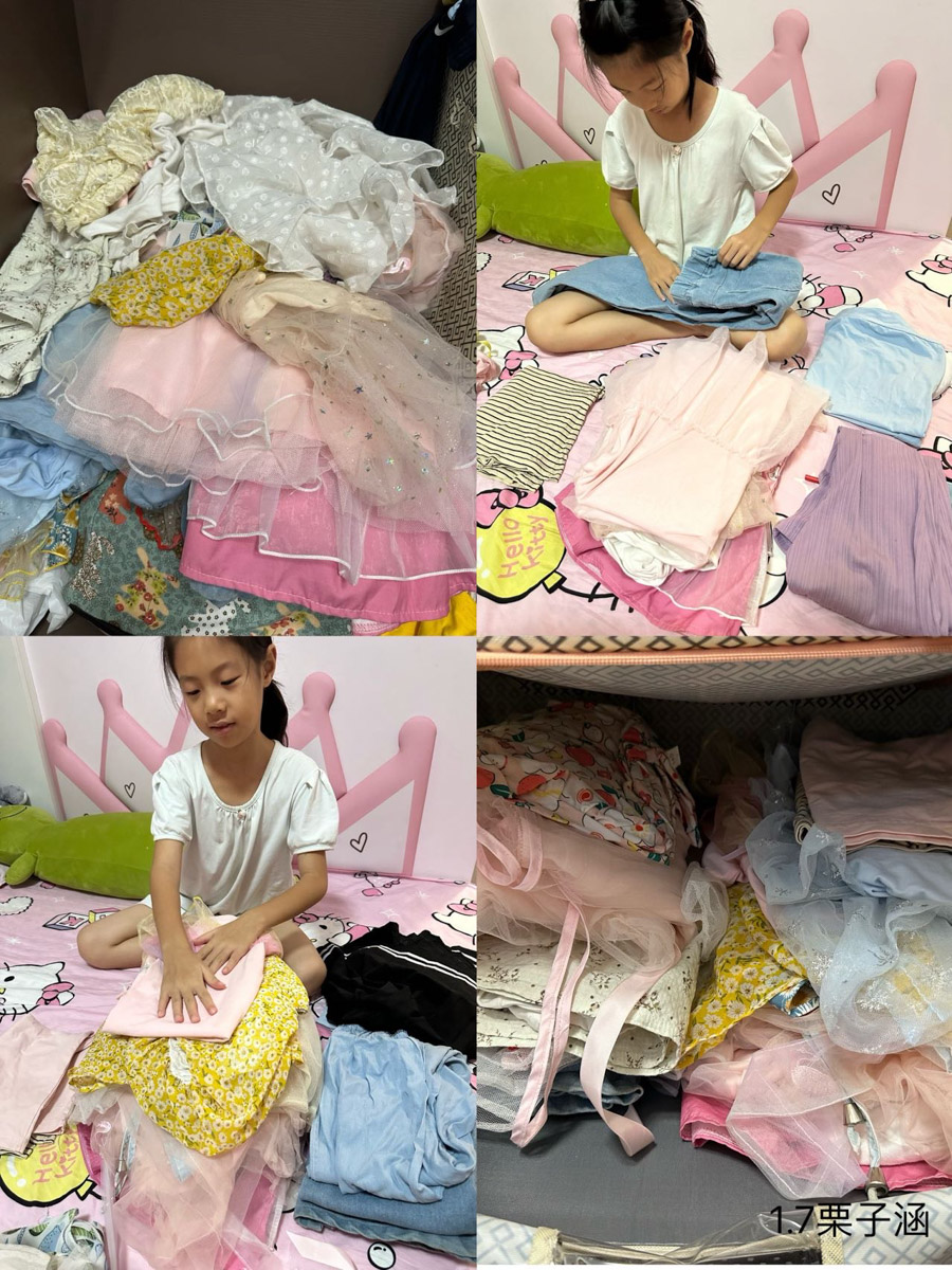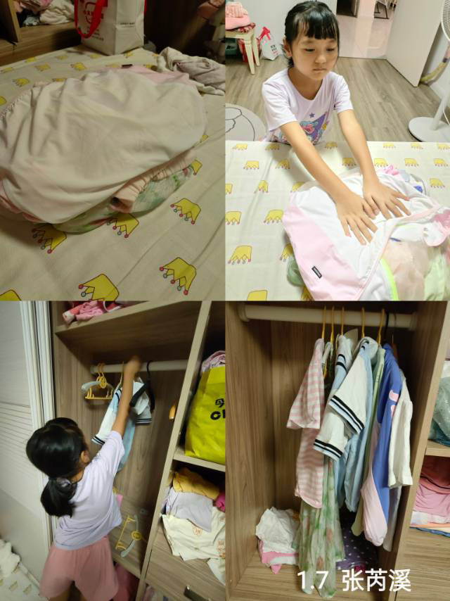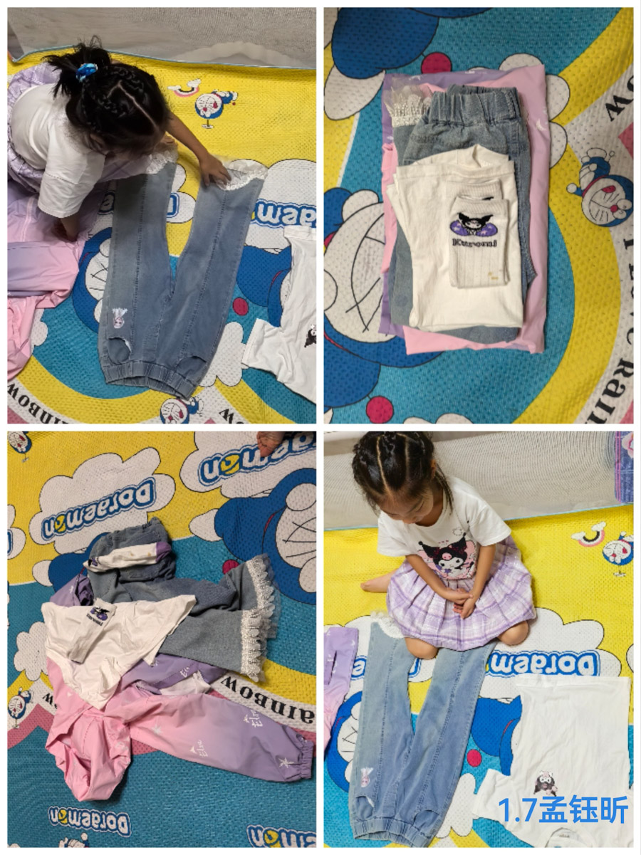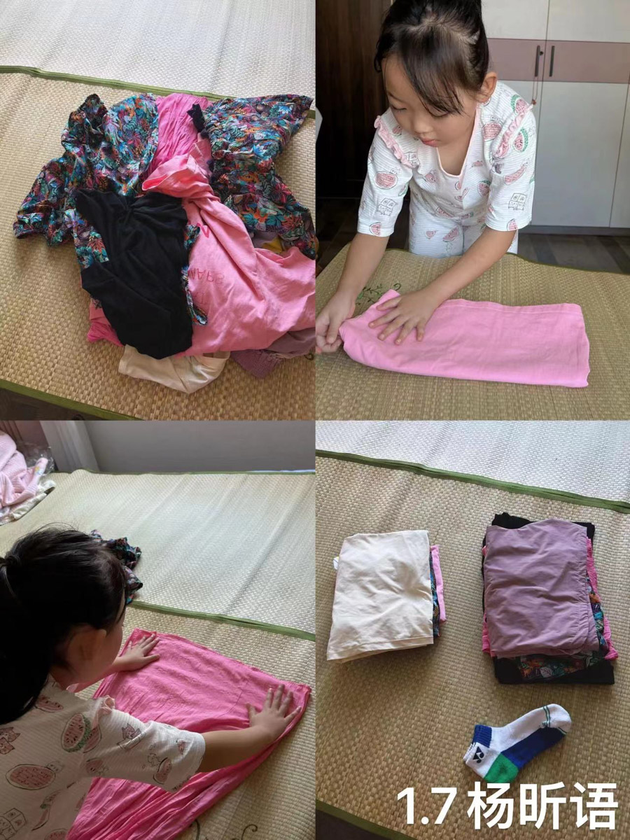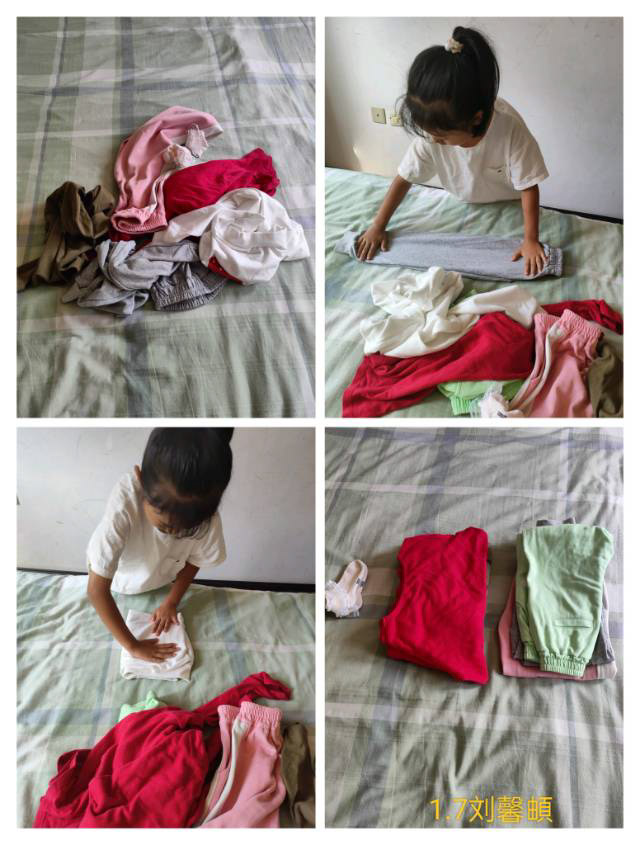我的衣服我来收,物品整理是一个学习的过程,孩子们在整理的过程中不仅可以按衣服的某种特征来分类,也可以按照其用途来分类,还可以根据衣服颜色、大小等进行分类。在整理的过程中,学生可以学习如何折叠衣服,如何合理利用衣柜的空间,培养他们的空间观念。