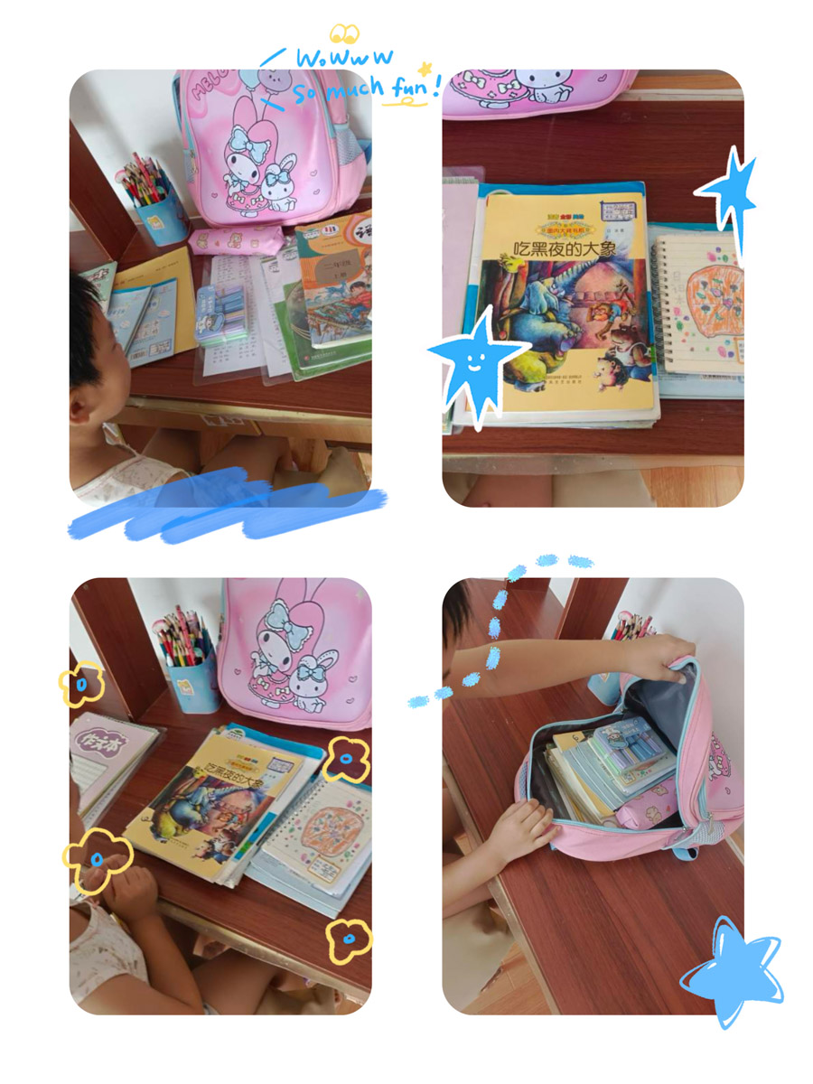 我的书包我做主,书包是孩子们学习生活中的必须品,课前调查发现,部分孩子书包中的书本堆积摆放,不利于拿取。孩子们根据学科、书籍与本子、书本大小等标准,将书包中的书本进行分类并整理,做好自己书包的小主人。例如,将语文、数学等课本放在一起,将作业本、练习册放在一起,将文具、杂物等放在一起。在分类的过程中,学生可以思考不同物品之间的关系,培养他们的分类思维。