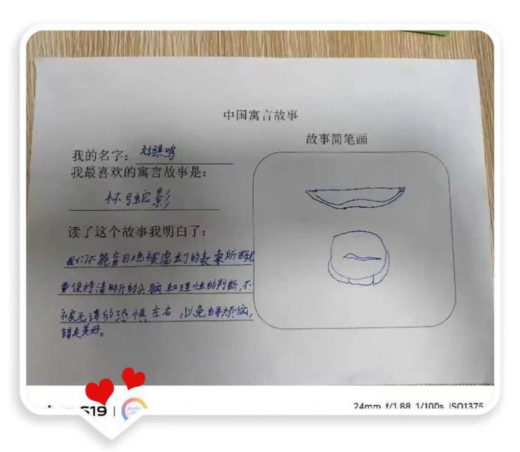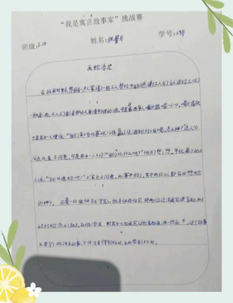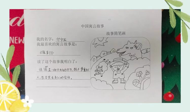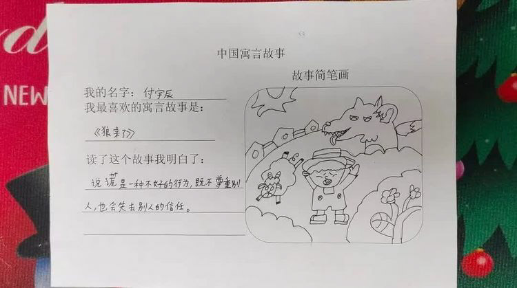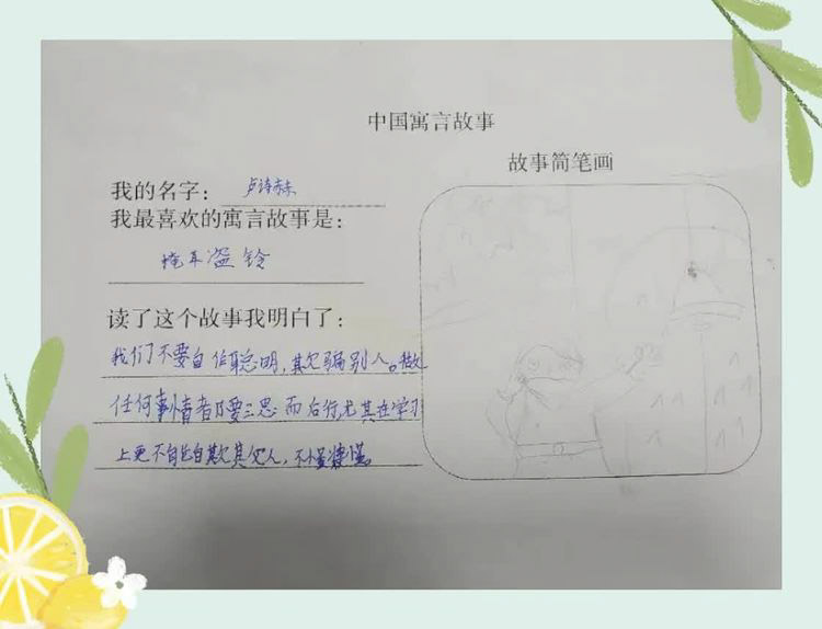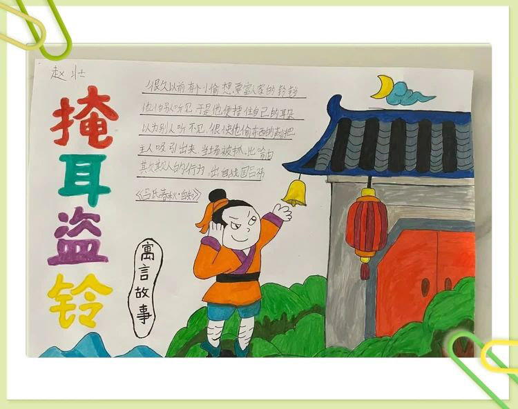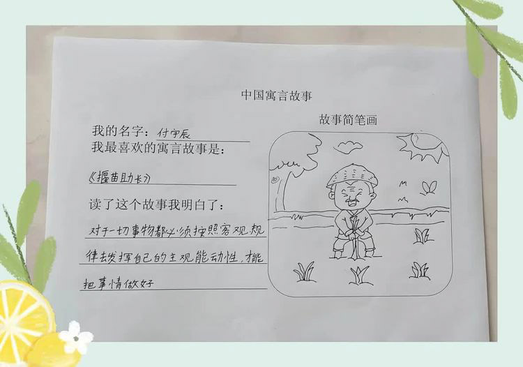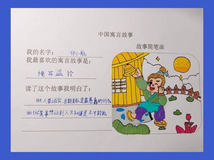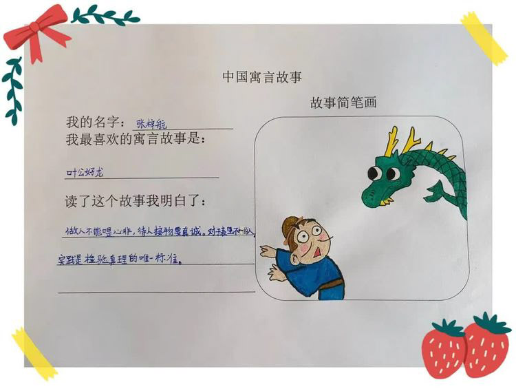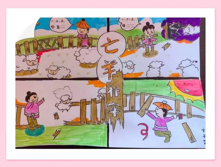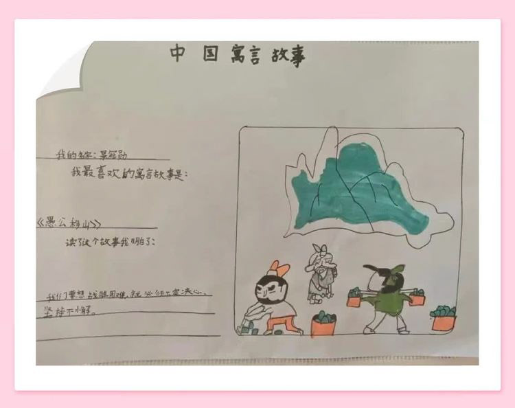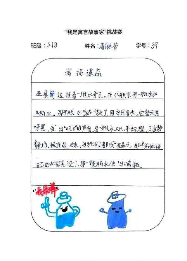 张潇默和周琳萱同学理解了寓言的寓意,纷纷行动起来,刻画出了心中的寓言。