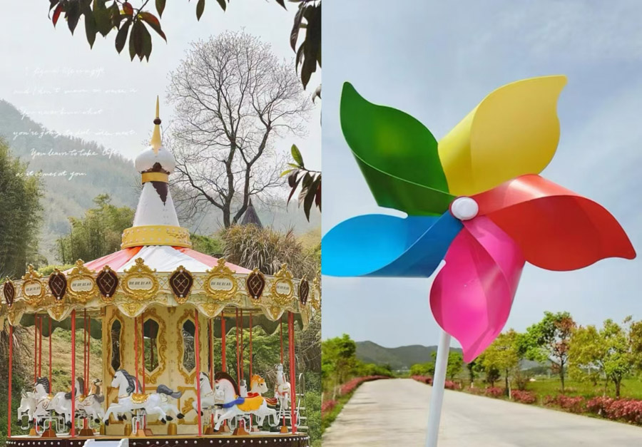 刘谦玉、裴浩岩发现经常玩的风车和旋转木马都是通过旋转实现的。