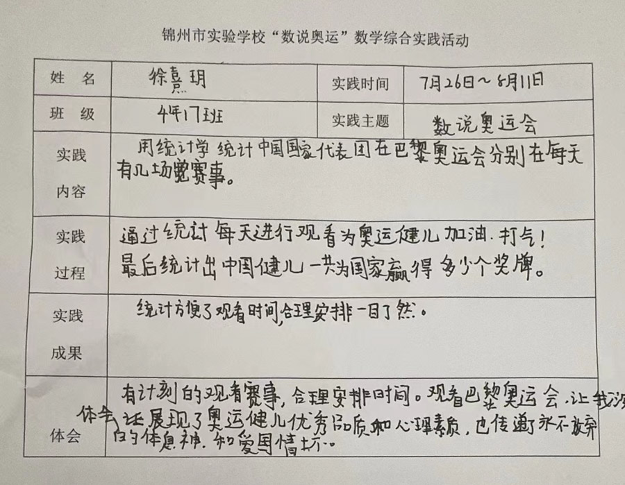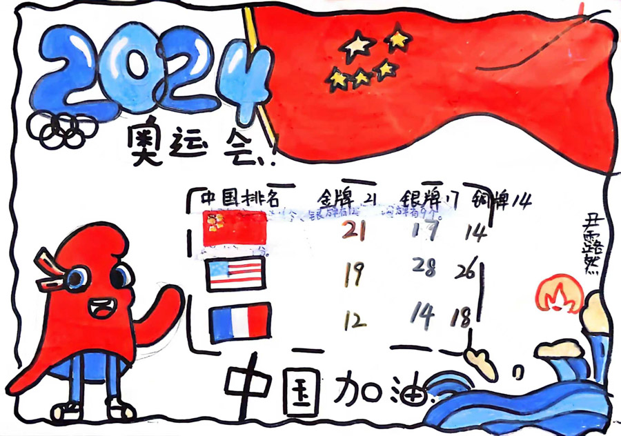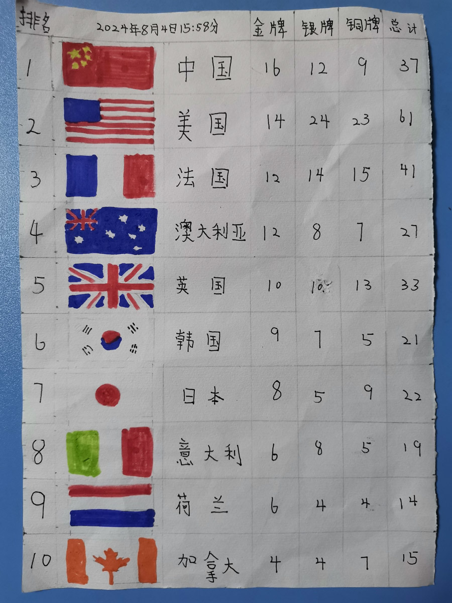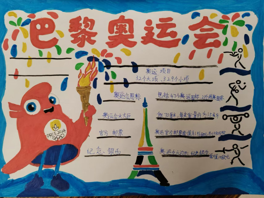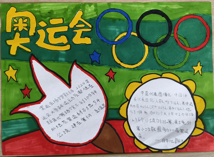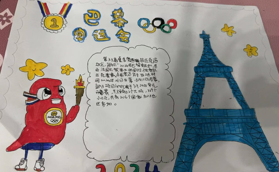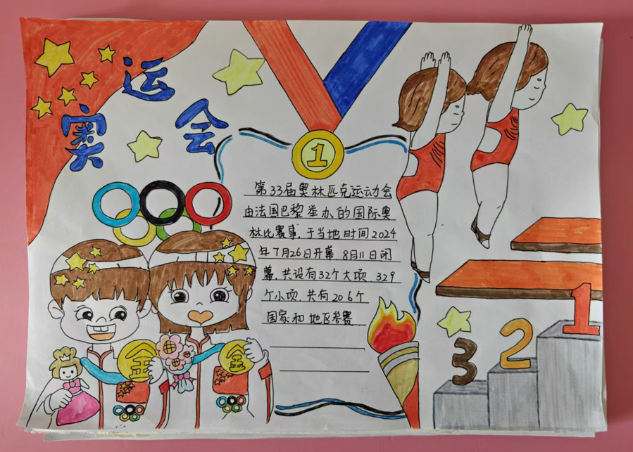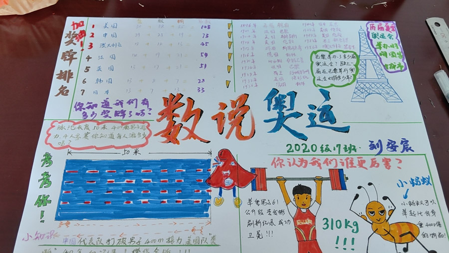 本次巴黎奥运会,中国健儿们已赛出佳绩!孩子们也增长了和奥运相关的知识,通过孩子们用一系列的文字、数字和统计图的探索奥运知识的展示,让我们对奥运会有了更深刻的认识,孩子们也会继续努力学习数学知识,用自己的实际行动继续为祖国健儿们,加油助威!