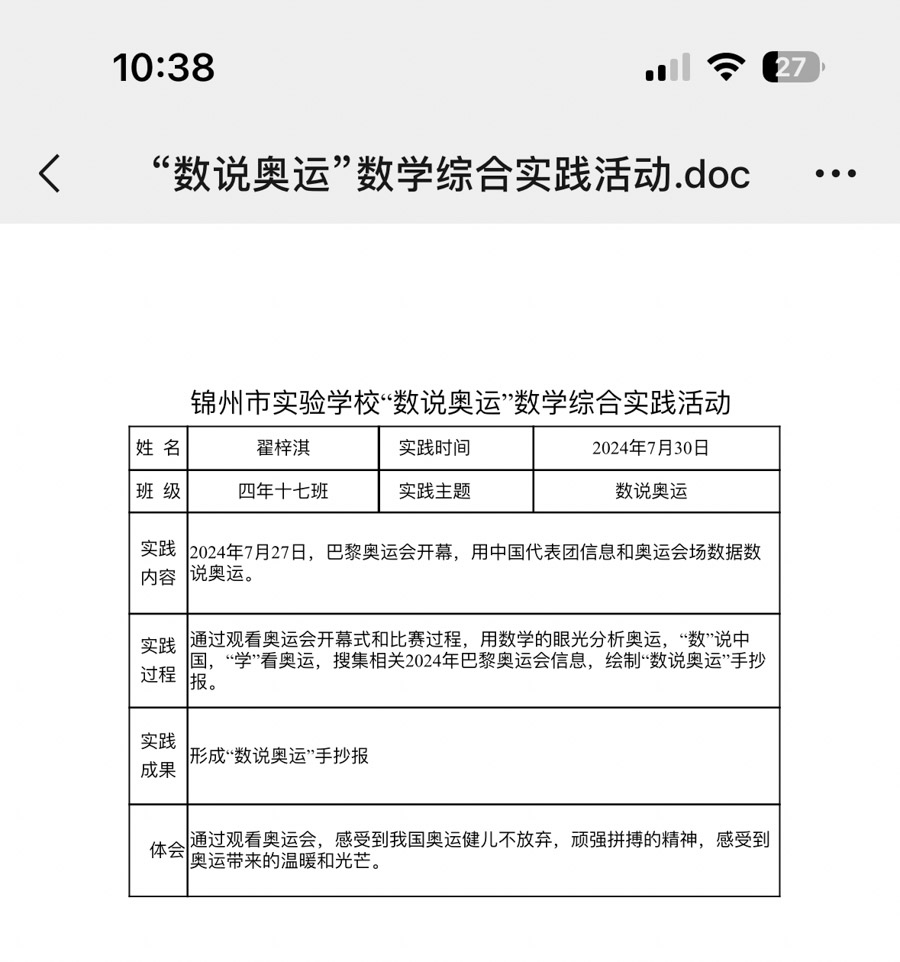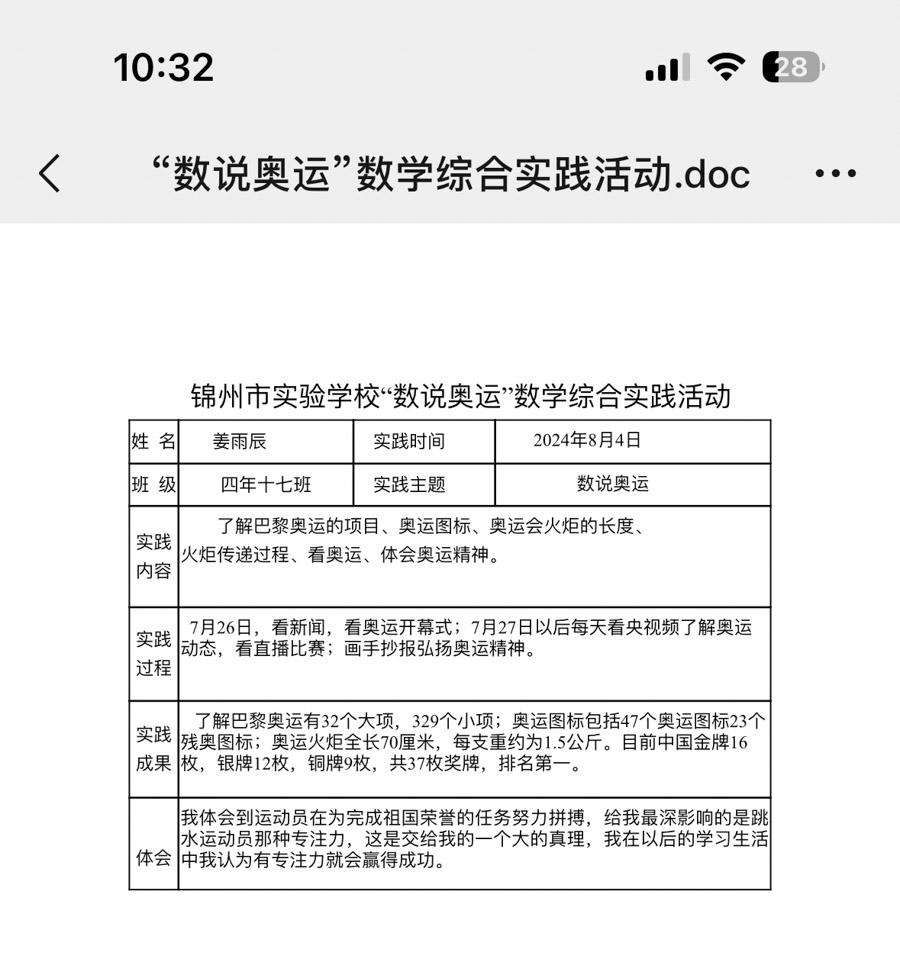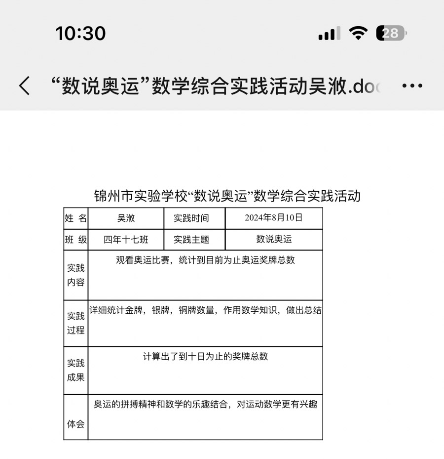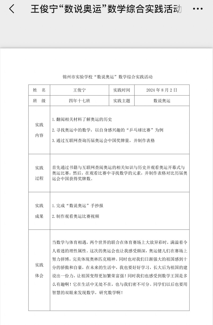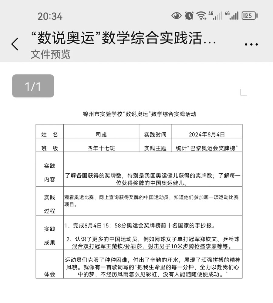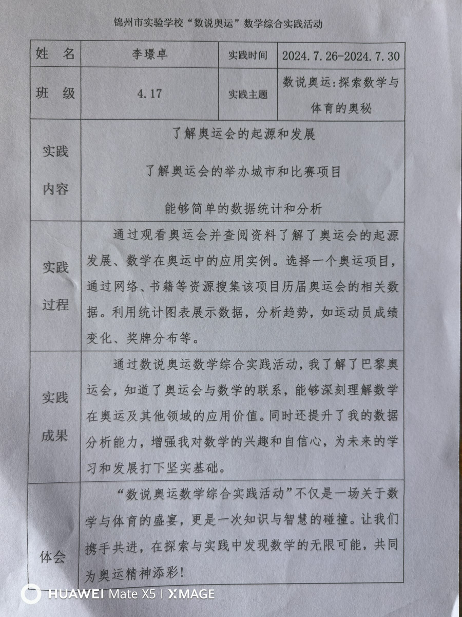 本次巴黎奥运会,中国健儿们已赛出佳绩!孩子们也增长了和奥运相关的知识,通过孩子们用一系列的文字、数字和统计图的探索奥运知识的展示,让我们对奥运会有了更深刻的认识,孩子们也会继续努力学习数学知识,用自己的实际行动继续为祖国健儿们,加油助威!