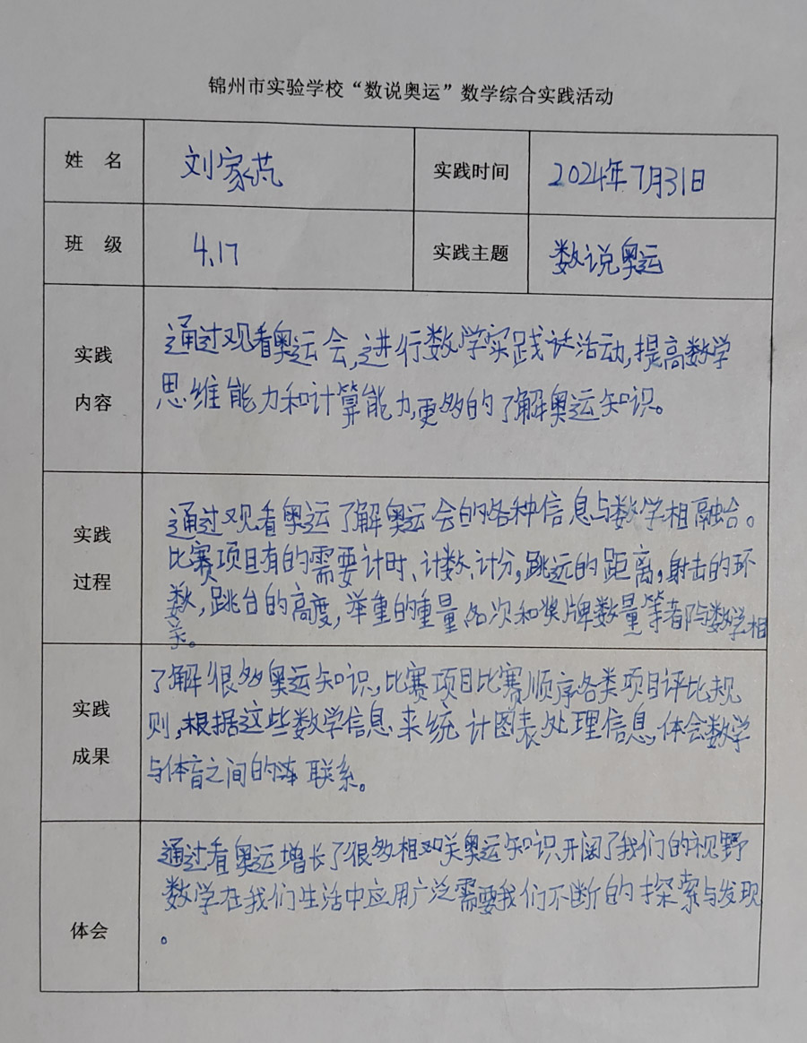 在这个充满梦想和激情的暑期,同学们在观看比赛的同时,通过上网查阅资料,了解到奥运会中蕴含的数学知识,感受到数学与生活的联系,写下自己的收获。