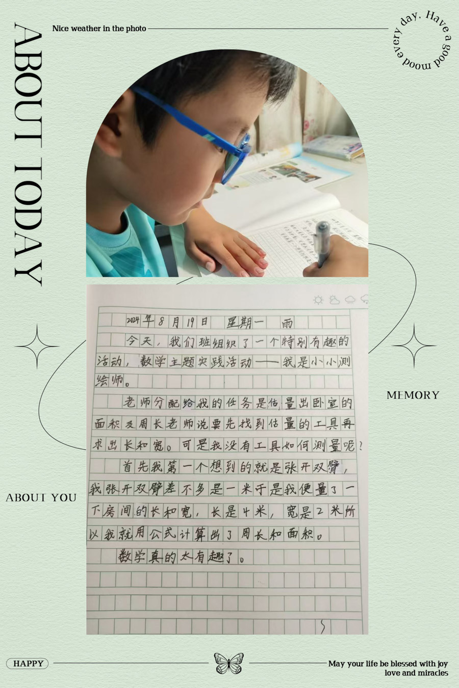 同学们为各自的测量活动,个性化定制各具特色的表格。通过表格的绘制让孩子们经历整理和分析数据的简单的统计过程,学会用简单的统计图表呈现数据。他们的作品有的色彩艳丽协调,有的构思独特,内容丰富。通过自己精心的设计、绘制,尽情体验着数学带来的快乐与收获,充分展现着数学带来的智慧和才气。经过孩子们的认真测量和记录,一张张测量报告单新鲜出炉啦!