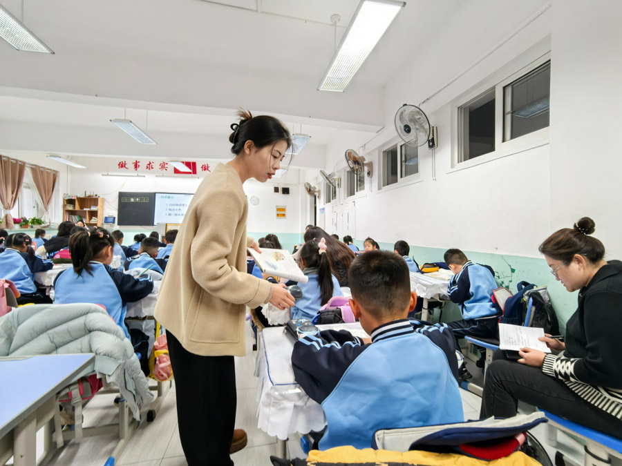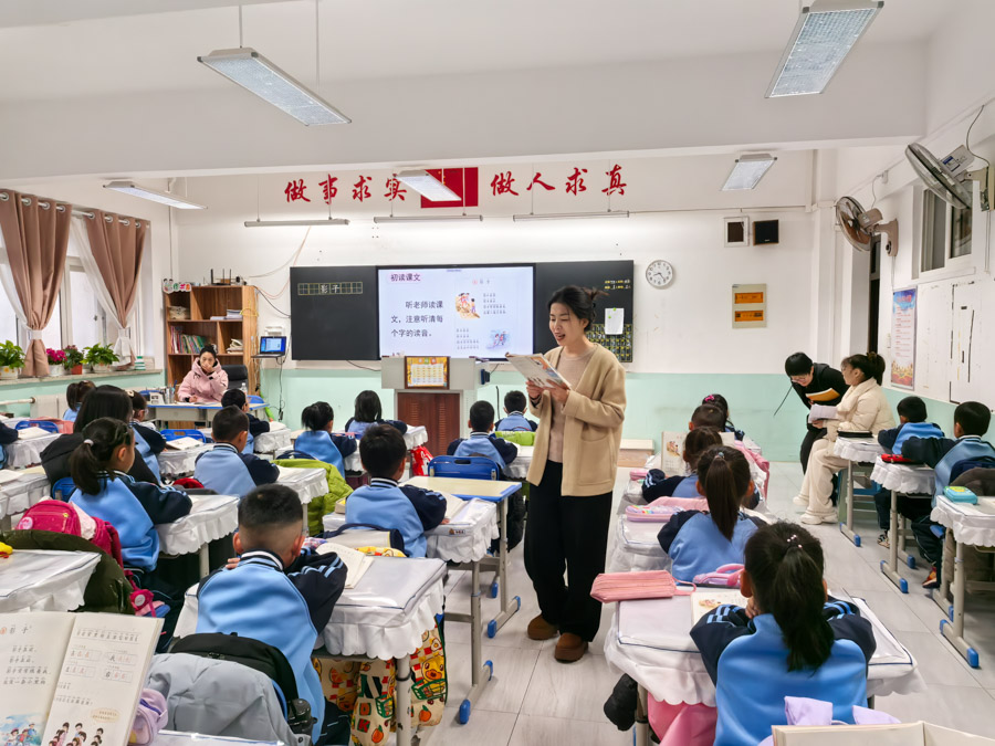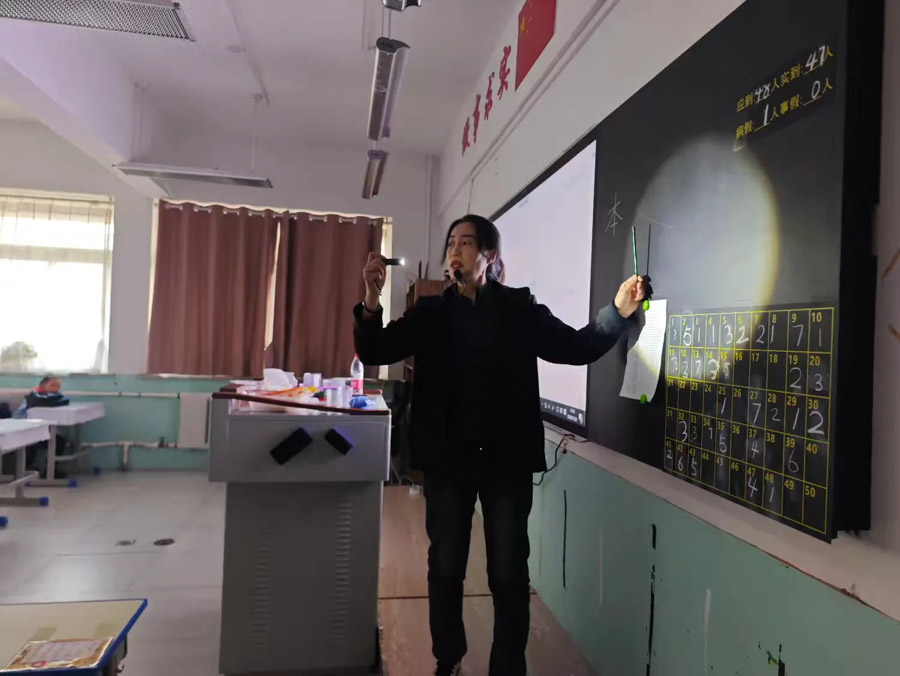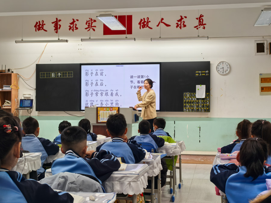 在教学过程中,穆老师注重识字与阅读相结合的原则,引导学生随文识字,提升学生的综合素养。在小组合作学习区分“它”“他”“她”时,采用自主、合作、探究学习方式,学生积极讨论、发表见解。最后穆老师进行总结完善,确保学生准确掌握知识点。此外,穆老师借助黑板演示引读,让学生在比划与朗读中感受影子与太阳位置的变化关系,进一步加深对知识的理解与记忆,使学生在积极的学习氛围中收获知识。