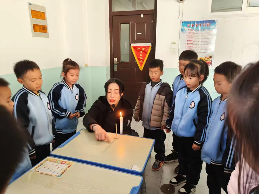 科学课上,侯效喆老师用简单易懂的语言讲解:“小朋友们,影子是因为光沿直线传播,遇到物体就被挡住了,后面就形成了影子哦。”同时,在黑板上画着可爱的图示,让孩子们一目了然。实验环节更是激动人心,孩子们分组围坐在一起,点燃蜡烛,放上小木块,眼睛紧紧盯着墙上的影子。他们发现蜡烛离木块近影子就大,木块移动影子也跟着移动,就像发现了新大陆一样欢呼雀跃。用手电筒实验时,同样充满惊喜。最后,老师播放一段有趣的动画,讲述光精灵和影子的故事,还介绍了日食、月食现象,孩子们在动画中深化了对影子形成原理的理解,心中对科学的探索欲望也像小种子一样开始发芽。
