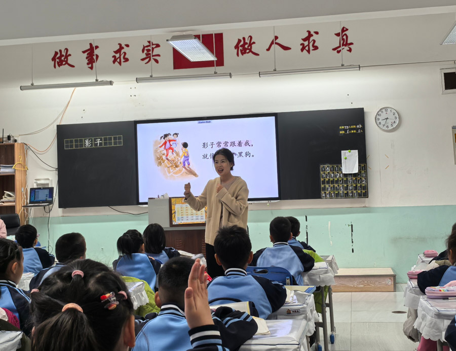 穆思齐老师的语文课在教学活动中率先开启。课堂上,穆老师依据新课标中激发学生学习兴趣与情境创设的要求,播放生动有趣的动画视频,成功吸引了学生的注意力。视频里各种物体于阳光下形成的影子现象,引发了学生的好奇心与探索欲。