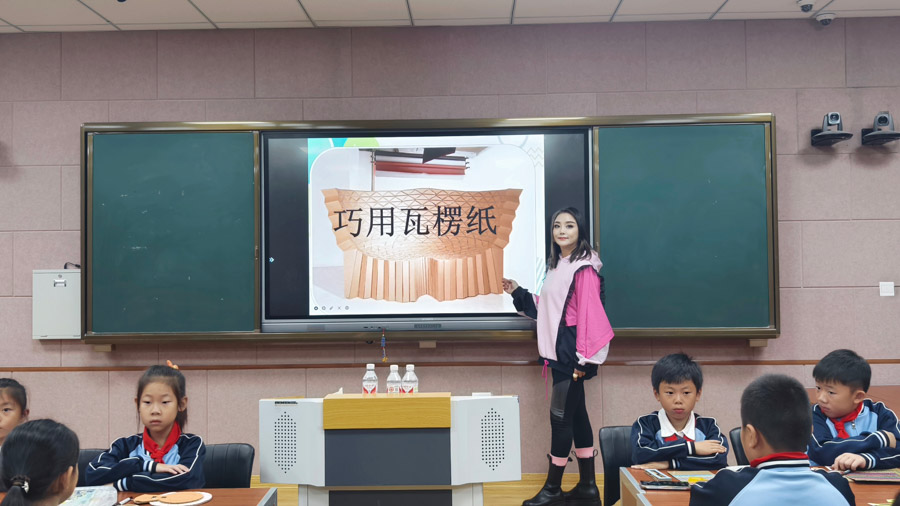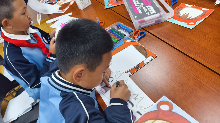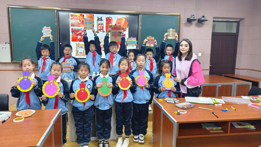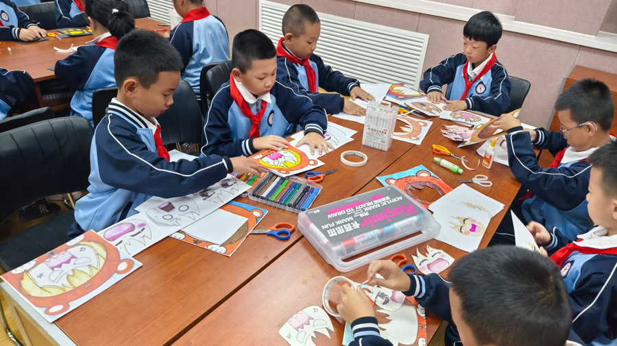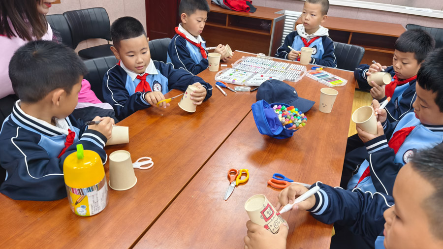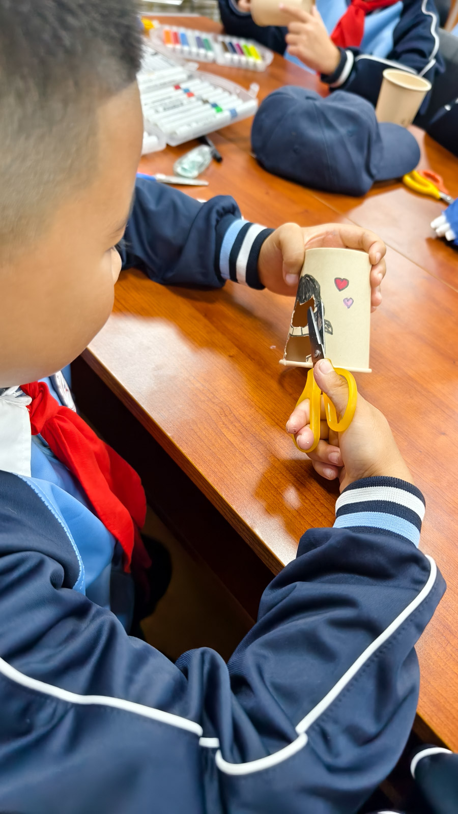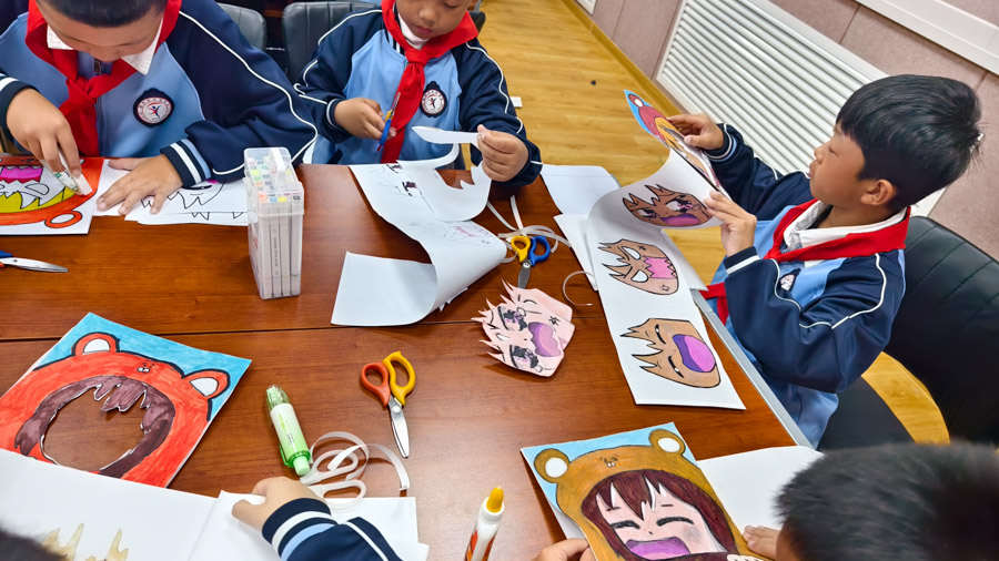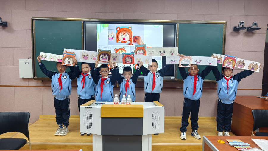 这些美术作品不仅是手工的结晶,更像是篇用双手书写的“文字作品”。学生们把美术课的作品带到了语文课上,举办了一场艺术与语言的盛宴,让学生在理解语文知识的同时,增强美术学科的人文性,提升创新思维能力。