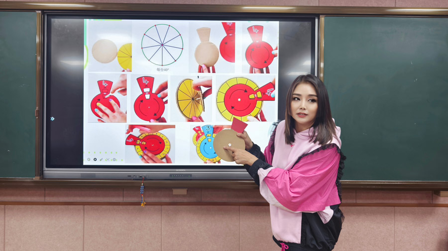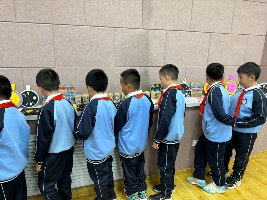 而美术课上,同学们用画笔描绘出各种图案,无论是抽象的线条还是具体的形象,都展示了同学们的想象力和创造力。当这些画作与数学相结合时,更是碰撞出了奇妙的火花。例如,将美术作品中的图案进行平移,可以让画面产生动态的效果,仿佛整个画面都在移动,让人感受到平移的魅力。再如,将月相变化制作成旋转板,通过旋转展示月相的周期性变化,不仅让同学们直观地看到月亮从新月到满月再到新月的循环过程,还能让同学们感受到旋转的动态美。这种旋转展示方式不仅增强了学习的趣味性,也让同学们更容易理解和记忆月相变化的规律。