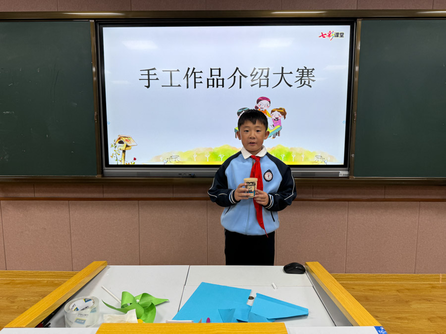 活动最后,师老师进行总结。师老师对介绍精彩的同学提出表扬,例如“这位同学说的好,条理特别清晰,把复杂的制作过程用刚刚学的顺序词简洁地表达出来”。对于善于倾听的同学也加以赞美,“他能专注地看着台上同学,还不时点头回应,这就是真正的会听”。通过这次充满趣味又具有教育意义的活动,语文课也能成为创意和交流的舞台。