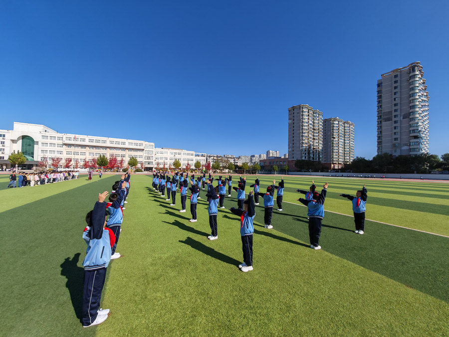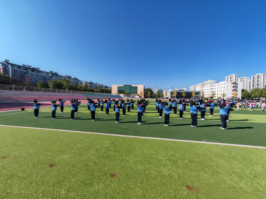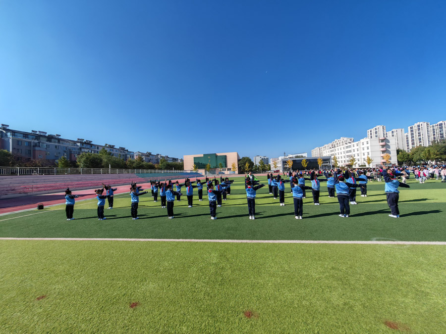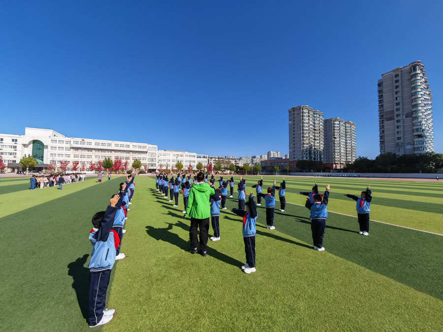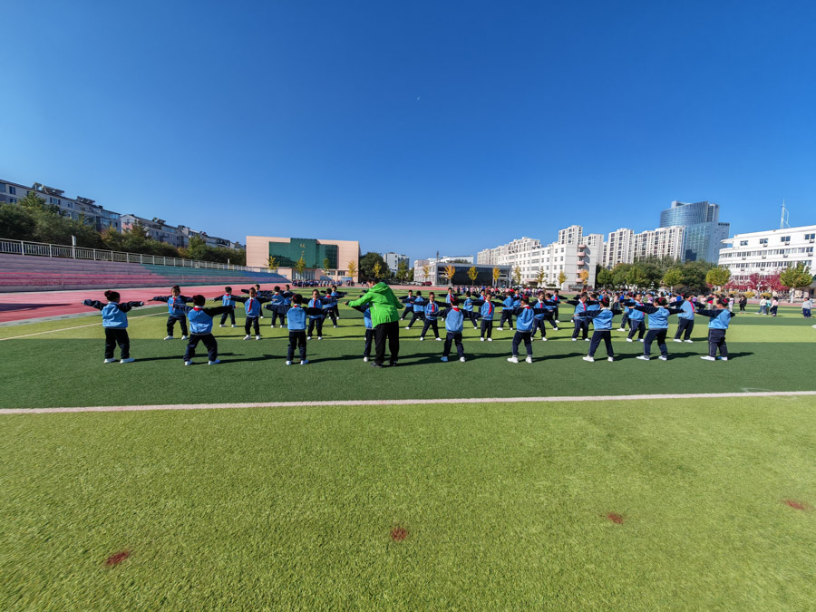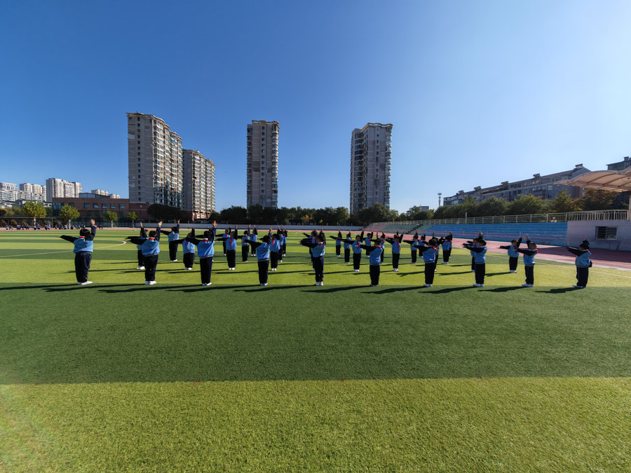 体育课上,充满了许多可以感受数学概念的奇妙瞬间。在胡盈盈老师的指导下,同学们深刻感受轴对称的魅力。比如做体侧运动,两手臂向两侧展开时,以身体的中心线为对称轴,左右两边的手臂动作是完全对称的。这种对称感不仅让动作看起来整齐美观,更让同学们切实理解了轴对称。