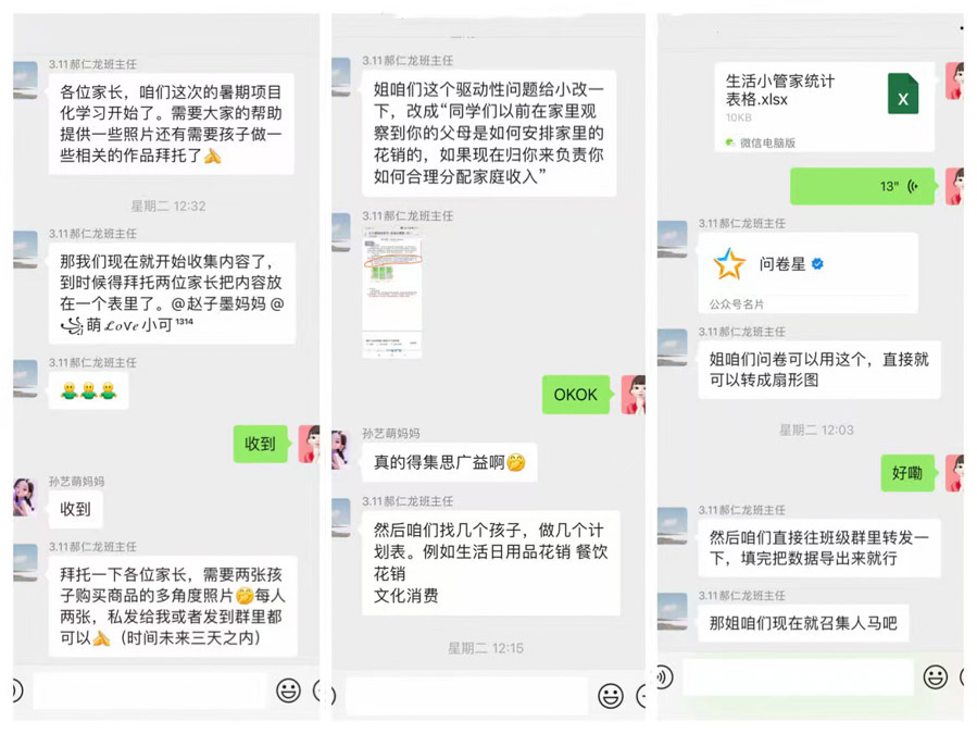 针对驱动性问题的三个子问题,我们在郝老师和家长的指导下,共同探讨各环节的内容设计。