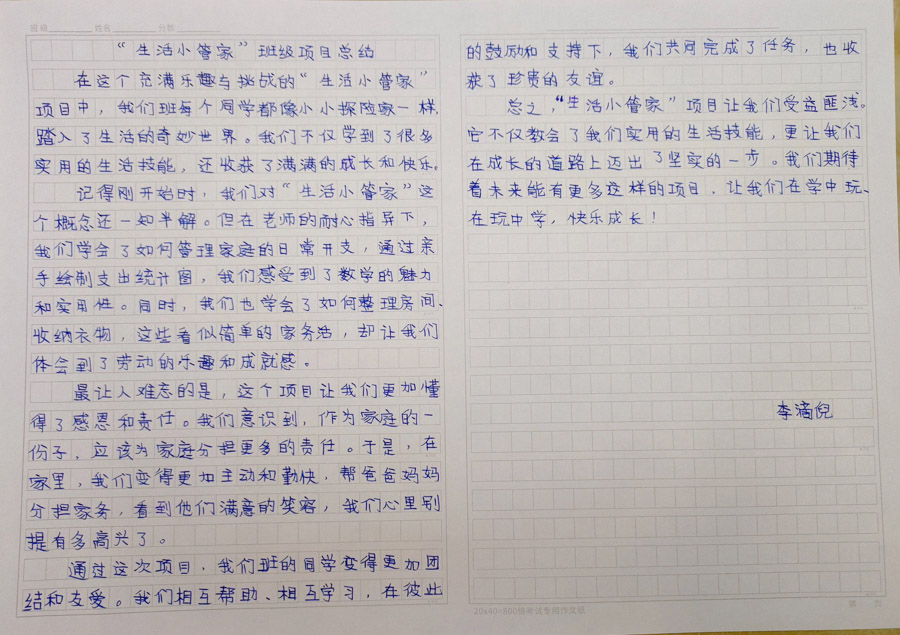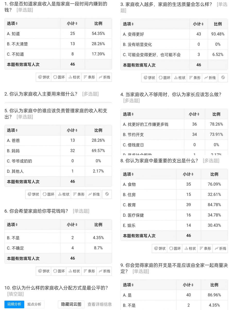 2).班级里大约有10%的学生担任过家里的小管家,在担任期间,负责监督家中的家务及财务情况,协助父母安排家里日常开销活动表等。