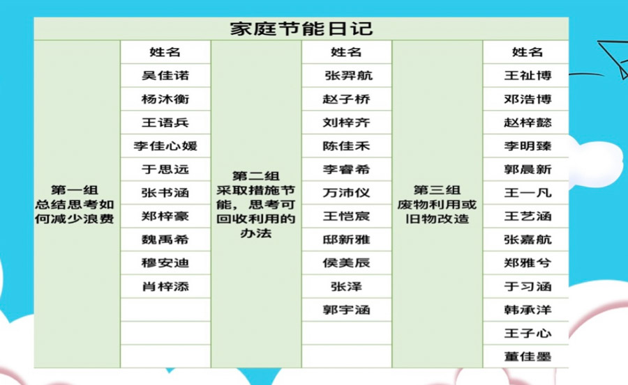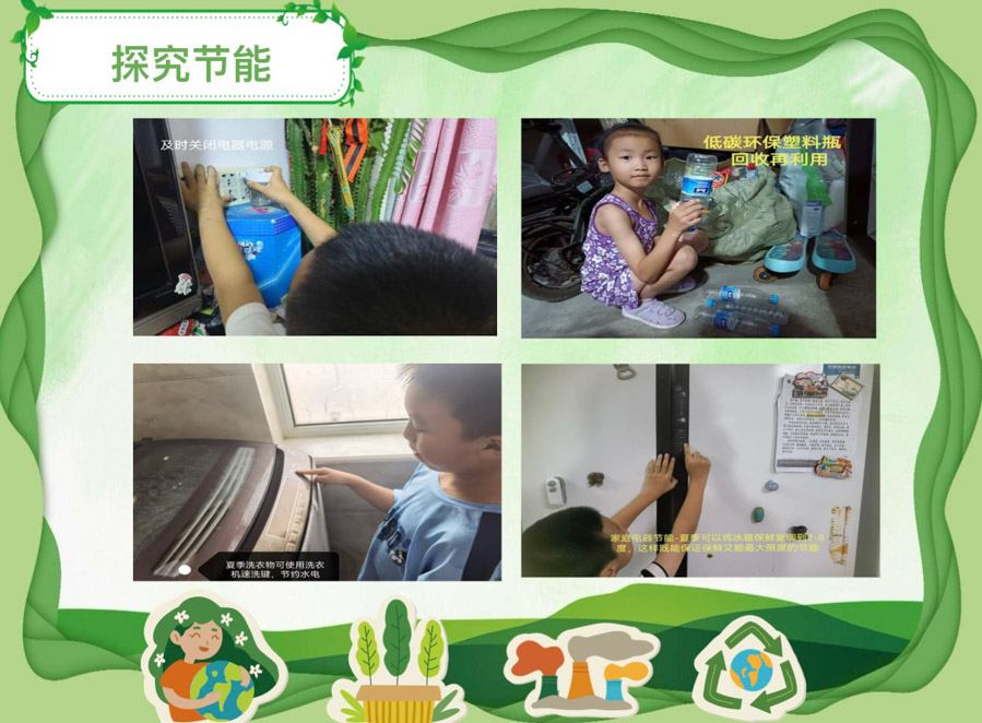 我们这一组通过查找资料、家庭成员的经验分享,寻找节能方式方法。瞧!环保节能就从身边小事开始了!