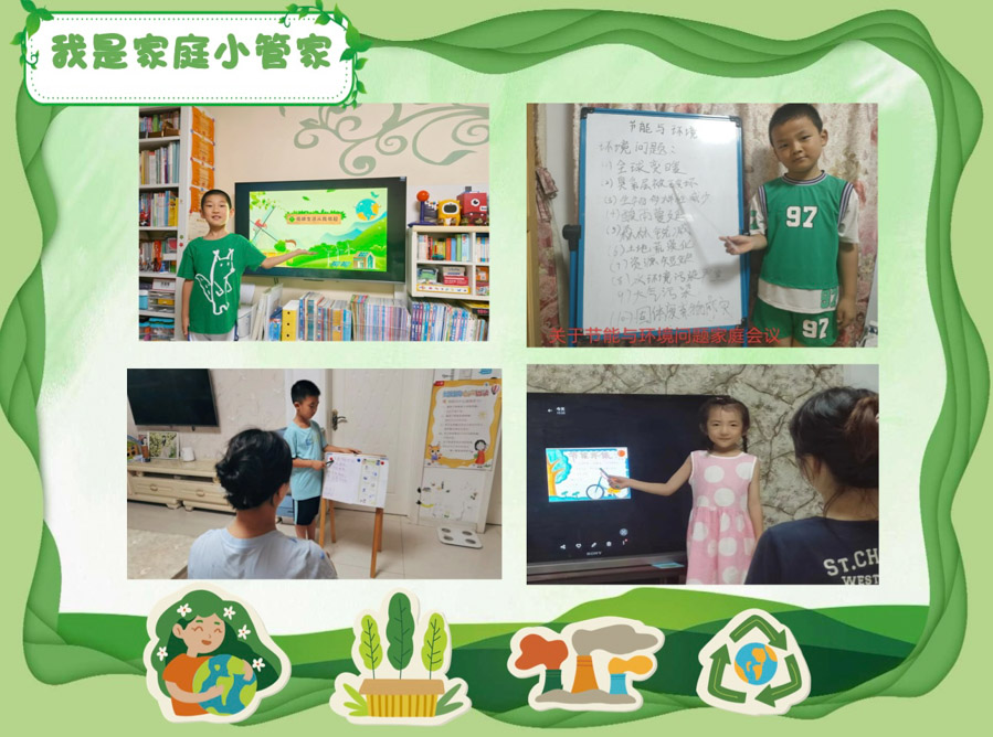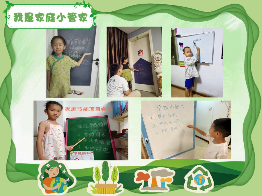 为了让我们的家庭成员在生活中提高节能意识,我们选择家庭会议的形式普及家庭节能知识,同时以家庭小管家身份,向家人宣传环保知识,如节约水电,不浪费粮食等,形成全家参与环保的良好氛围。