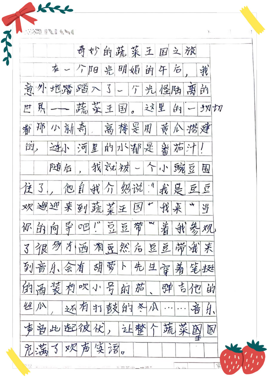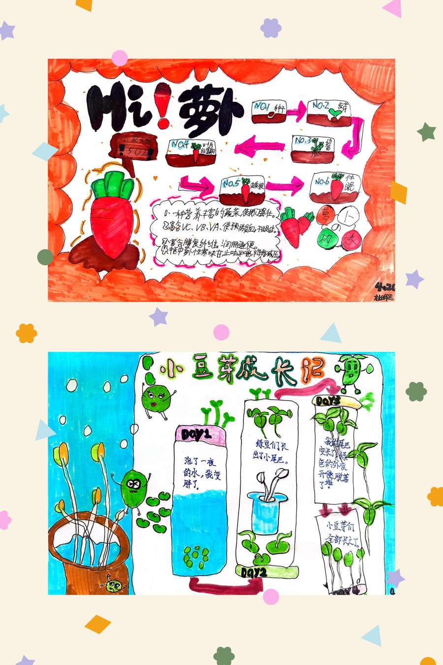 为了记录下自己可爱的蔬菜朋友,同学们还拿起了画笔和钢笔,通过观察和想象,以绘画和写作的方式,书画了一幅幅“蔬菜成长记”和“蔬菜王国奇遇记”……