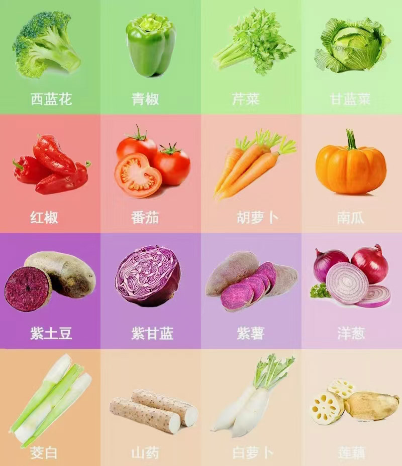 代表蔬菜有:胡萝卜、白萝卜、卷心菜、茭白、莴笋、芦笋、蒜苔等。