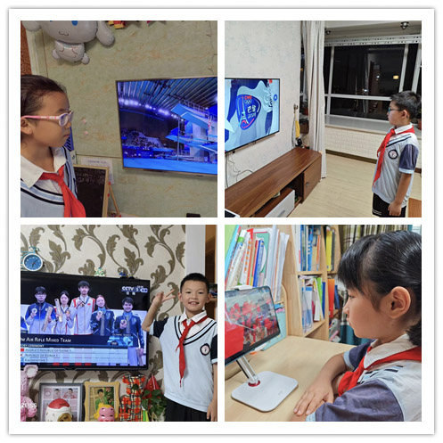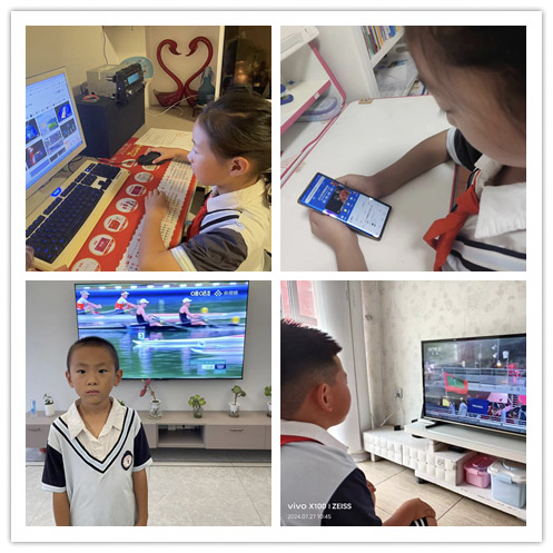 同学们积极地与家人、小伙伴一起观看奥运比赛直播、关注比赛报道,还有的同学利用旅游的机会,去参观北京奥运会的比赛场馆,总之孩子们利用多种方式,切身实地地以自己的实际行动感受奥运、了解奥运、参与奥运。