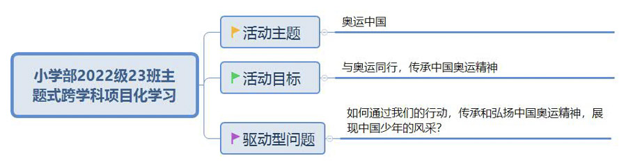 “如何通过我们的行动,传承和弘扬中国奥运精神,展现中国少年的风采?”在这一问题的驱动下,开启了本次的项目化学习。