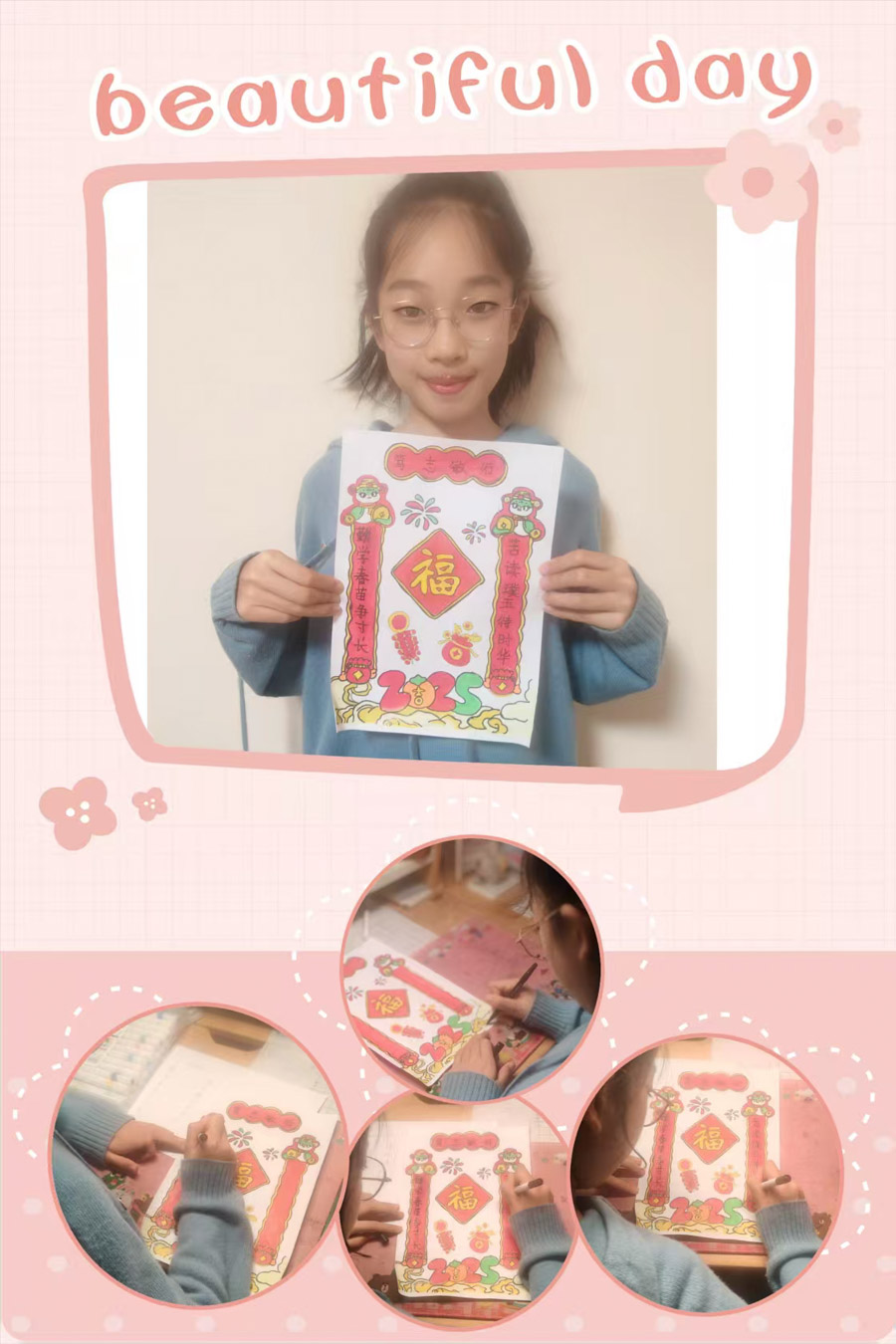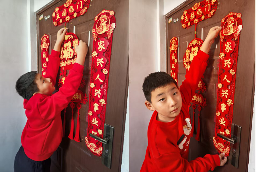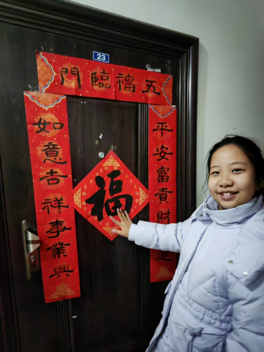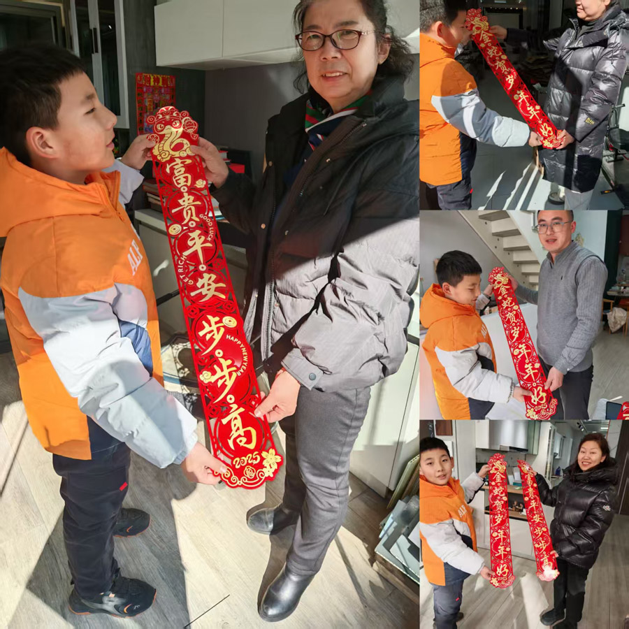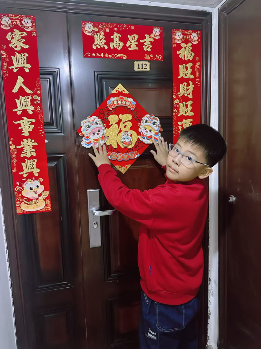 贴春联是春节最鲜明的符号之一,承载着“辞旧迎新”的古老传统。同学们通过亲手张贴,与千年的文化根脉对话,传递对美好生活的祈愿;通过全家共同贴春联的过程,强化了家庭协作与代际互动,成为春节团圆的“仪式化表达” 。