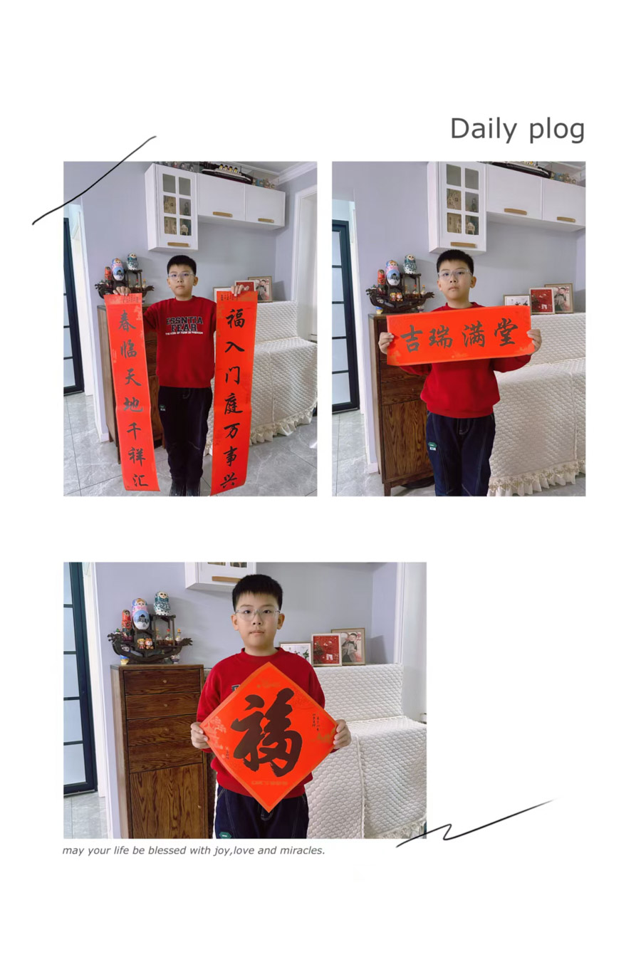 此次活动通过班主任张老师的细心规划和部署,让孩子们与家长、同伴们合作一起来体验春联里的中国年。通过读书、上网查资料等形式了解春联的历史起源、文化内涵及基本规则(平仄、对仗、字数等);通过讲春联起源、送祝福等方式提升语言表达能力;通过自己设计春联、写春联提高创意写作能力;通过与家长和同伴的合作与实践,体会节日仪式感;通过成果展示培养跨学科思维(结合文学、艺术、历史等)。同学们可以感受到中华传统文化的魅力,增强文化自信。