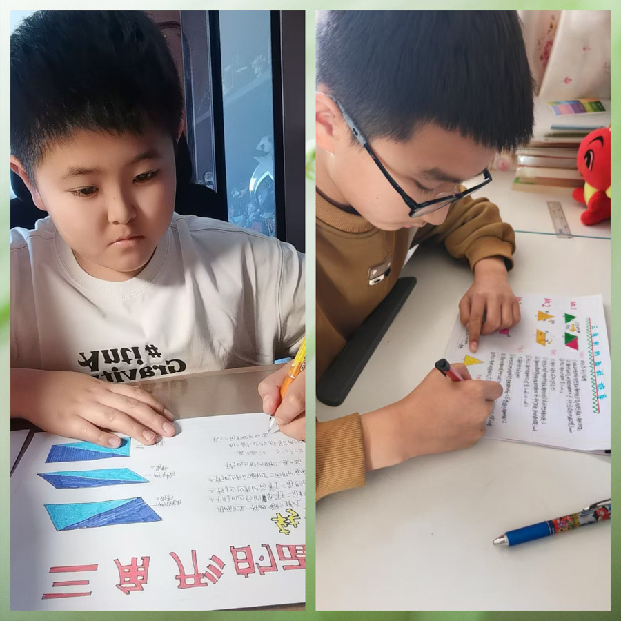 主题确定后,同学们积极相应,踊跃报名参加,共同回顾了本学期学过的基础图形的相关知识并整理出详细的思维过程。