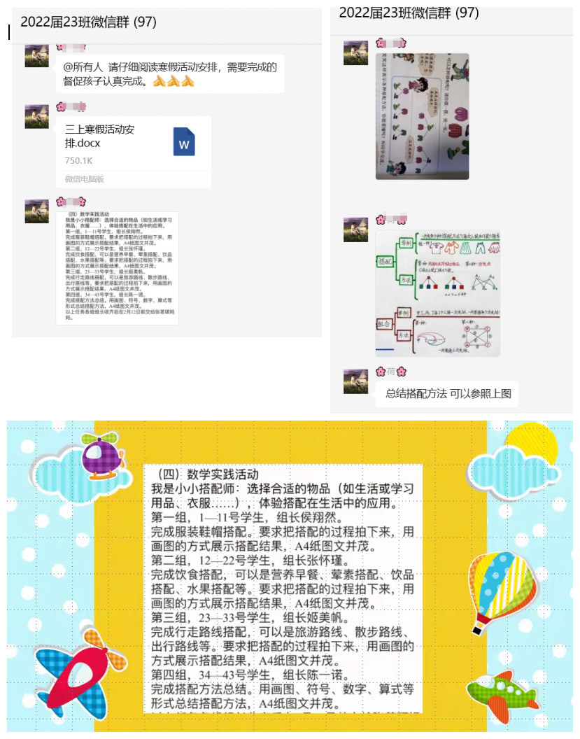 随后,根据老师发布的任务要求,同学们在家长的帮助下,仔细阅读、分析各自任务,积极地参与到这次数学实践活动中。