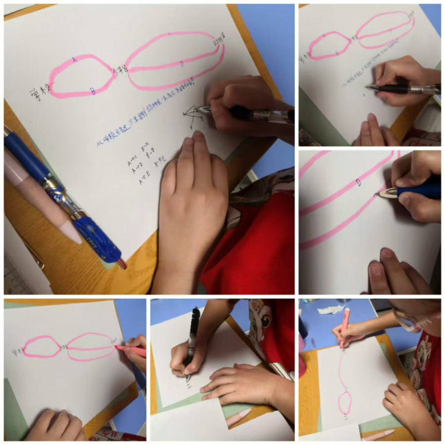 第四小组成员将整个探索实践过程进行总结,通过画图、符号与数字记录、算式模型等形式,将发现和思考过程通过多种形式表达,将抽象的组合问题转化为直观操作,既体现了数学的严谨性,又兼顾了趣味性。