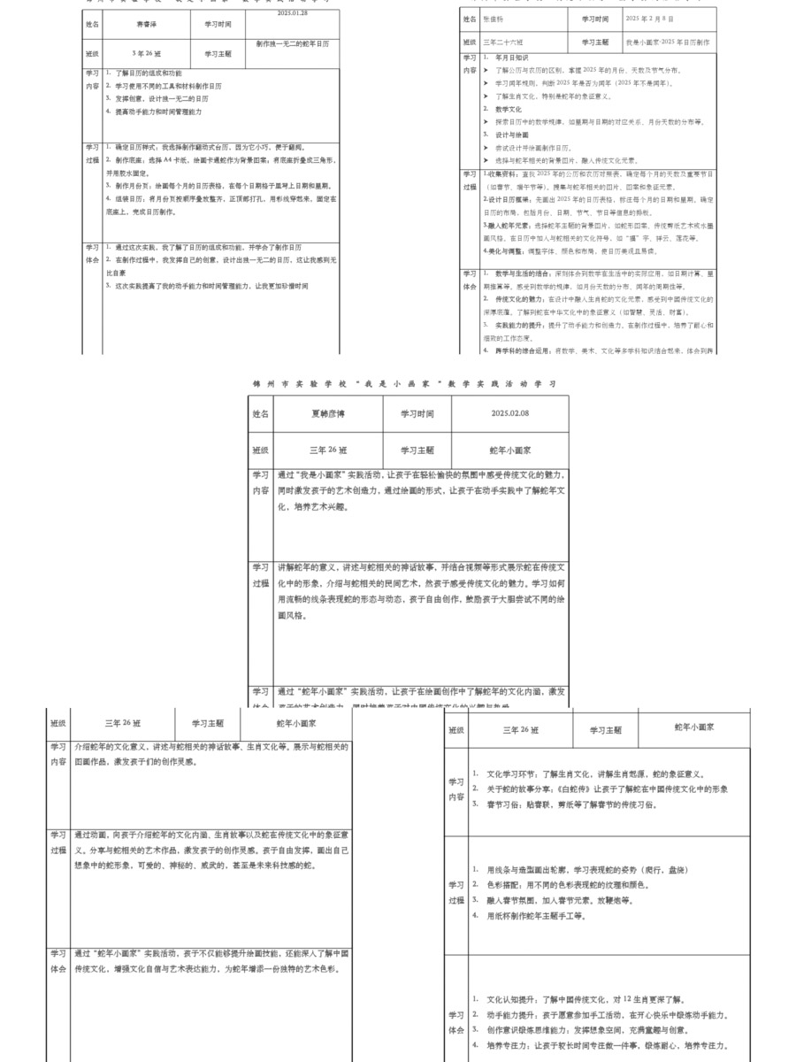 1.这次绘制蛇年年历的数学实践活动,使学生进一步巩固所学的“年、月、日”有关的知识,加深对所学知识的理解。