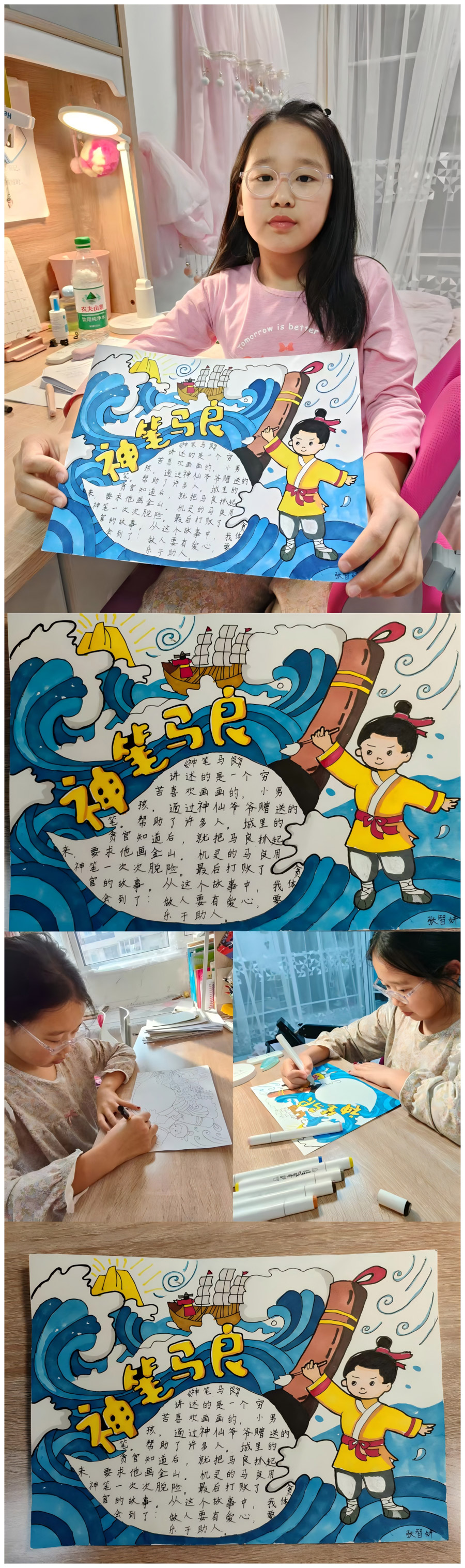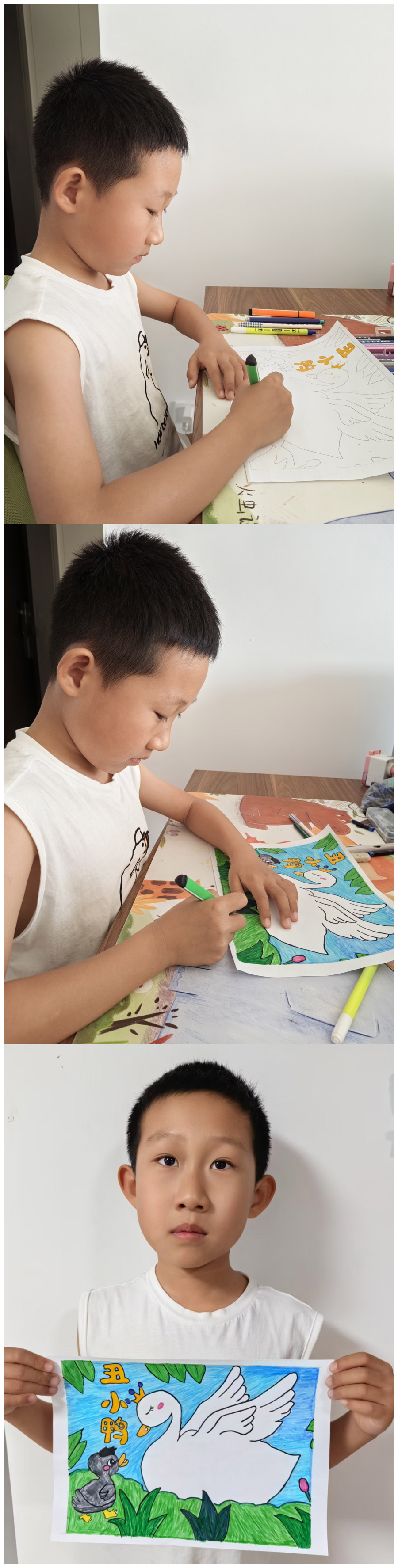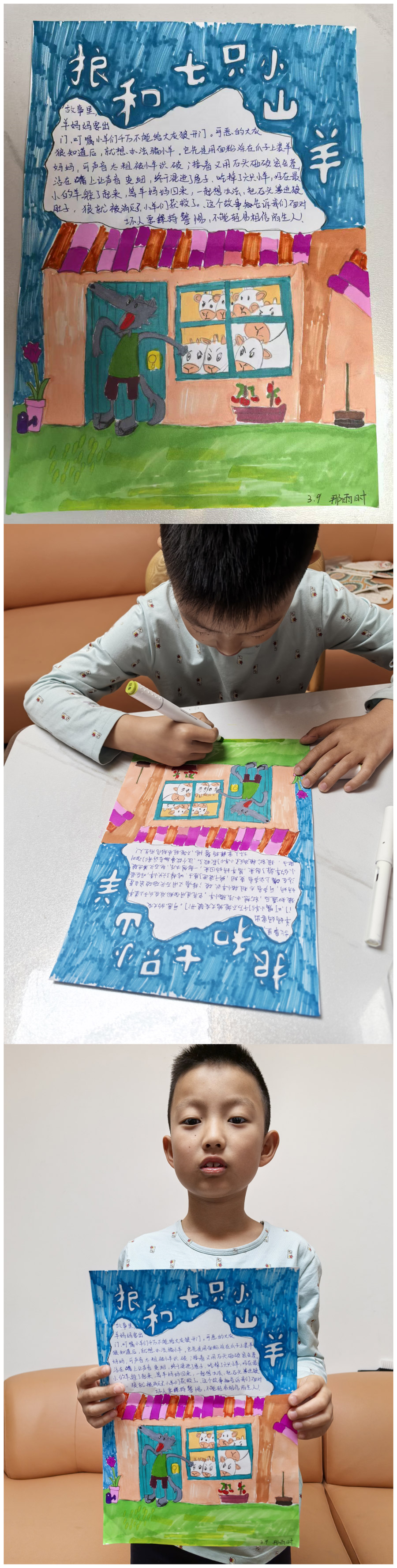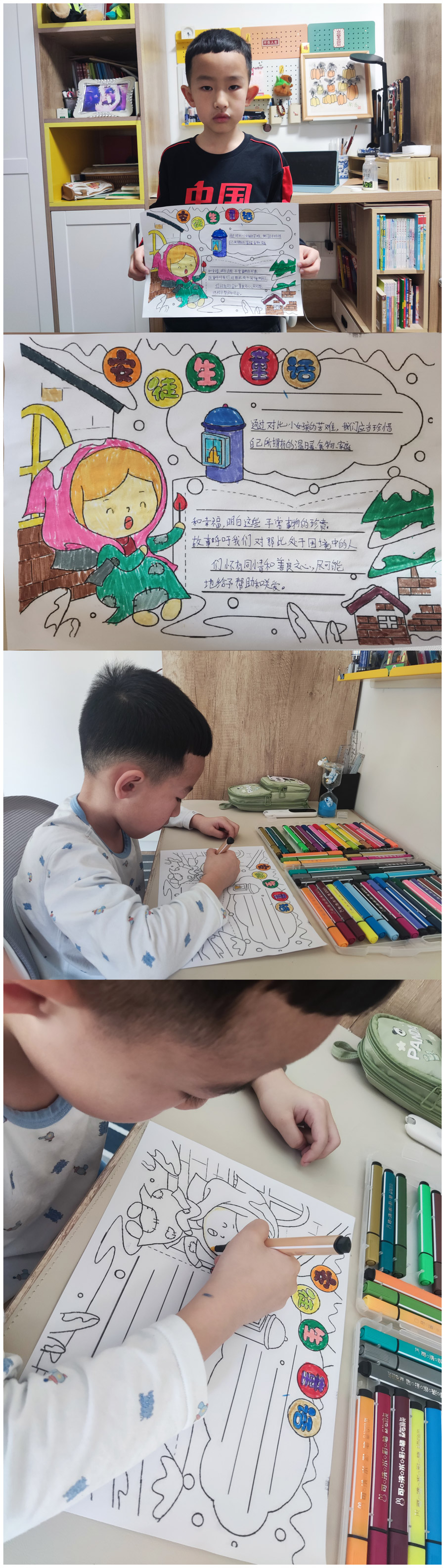 “一篇好童话胜过一百句教诲,一个好故事可以直抵孩子的内心”,孩子们在三年级上期学习了“童话单元”,而在童话中享受的又何止是他们,是他们和老师一起去经历了发现美的旅程。本次寒假语文综合实践活动,学生的创造性体现在利用阅读经验、绘画兴趣,结合语文、美术知识,通过绘画创作、故事展示、想象创编等,让学生深入童话的世界,探寻童话故事的魅力。学生在项目化学习过程中对于想象、理解、探究、合作、关注和选择童话知识有了更深的理解,提高了学生信息搜集、思维逻辑、阅读、绘画、写作、想象能力。在奇妙的童话世界中,一幅幅精美的画片,一行行活泼的文字,为大家带来了无尽的快乐与想象。未来让我们以书为伴,知深行远,勇敢追逐自己的梦想!