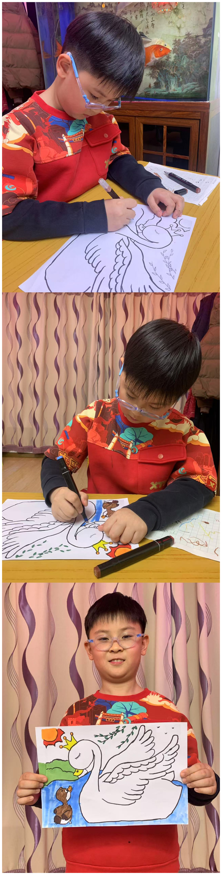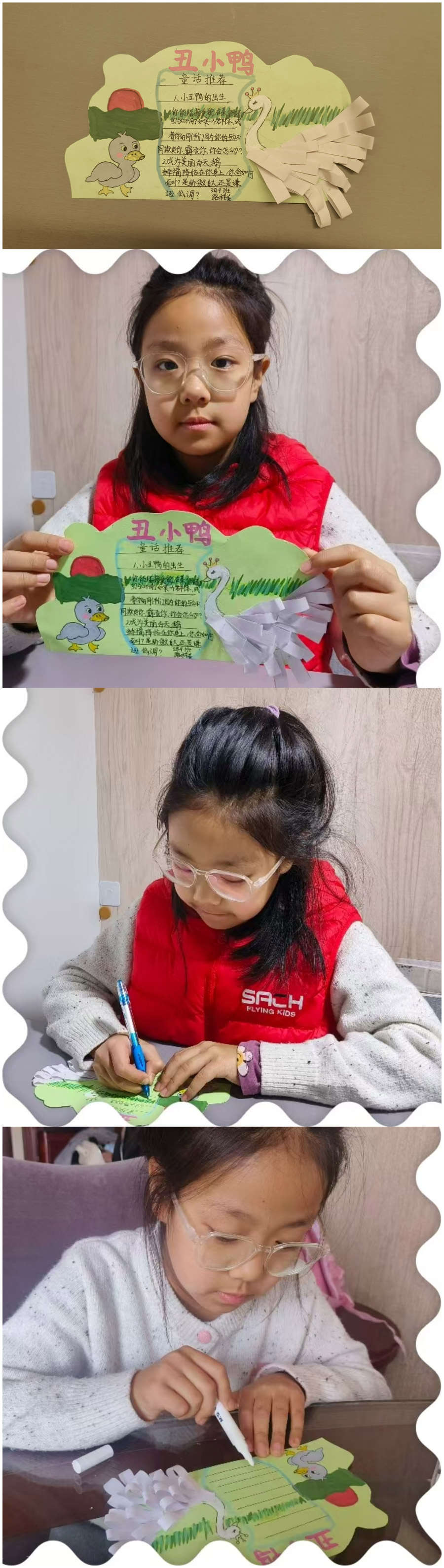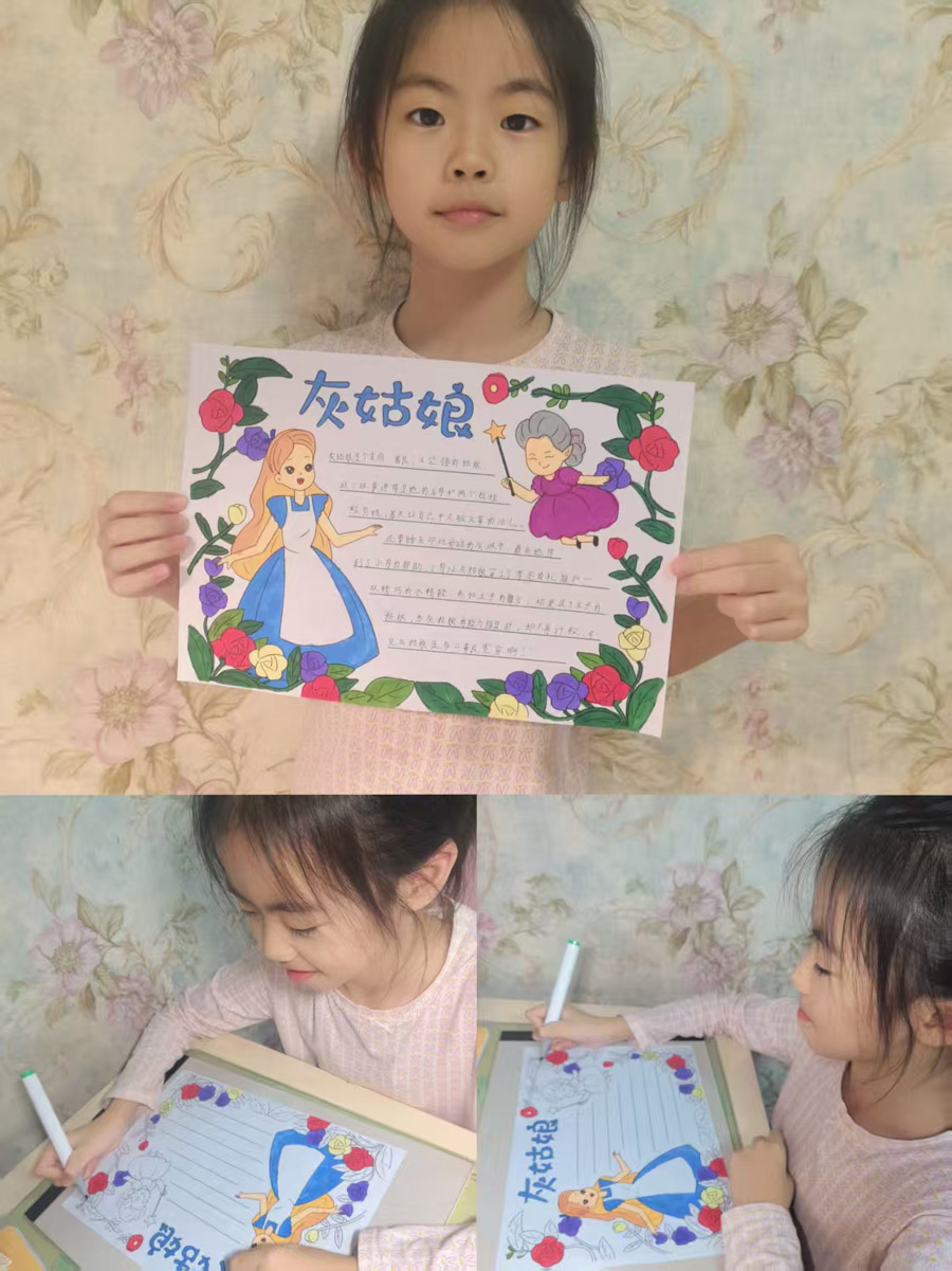 家长感悟:生活本身就是一个童话。在这个童话中,有等待大家跨越的高山、穿过的溪流、有意想不到的困难与挑战。在挑战过程中,可能会难过、沮丧。这次语文实践活动让孩子们有一个安静的空间,去阅读,去思考,去体悟,通过童话故事教会孩子们勇敢、善良和坚强,学会面对困难时不轻言放弃,保持一颗纯真的心,最重要的是在语文实践活动中感受到了孩子们的成长。