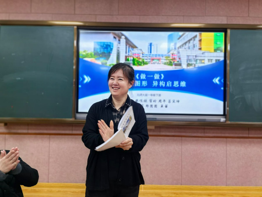 当印泥与童心相触,当立体与平面邂逅,侯雨和陈梦杉两位教师以独具匠心的教学设计,在方寸讲台间绽放出数学的万花筒。侯老师如春风化雨,将生活智慧揉进课堂;陈老师似巧手织锦,用童话情境串起思维珠链。这场关于“面从体生”的教学共舞,不仅勾勒出低段数学的灵动之美,更在异构中奏响了核心素养的育人和弦。