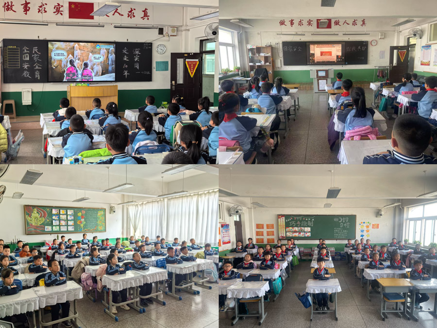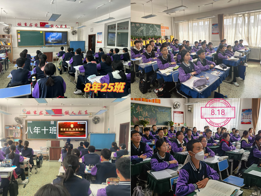 我校初中部、小学部分别组织学生有序观看“国家安全 你我共护”主题教育宣传片,通过动画案例了解什么是国家安全。涉猎到政治安全、军事安全、经济安全、网络安全、生物安全等16个重点领域,强化了“国家安全与每个人息息相关”的理念。