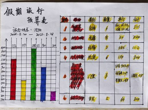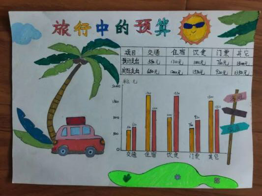 和孩子一起梳理旅行中的开销项目,需要算出“每项总价”和“旅行总预算”,如果总预算超了,一起讨论“哪些项目可以调整”(如:选择更经济的住宿,或减少1个非必去的付费项目)。