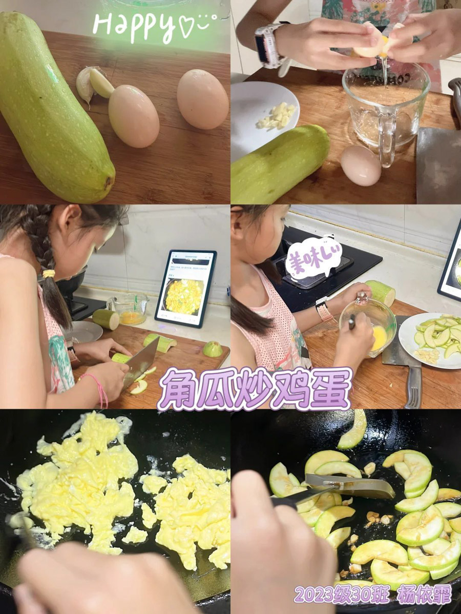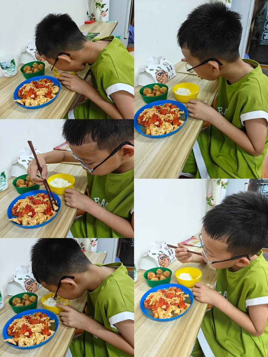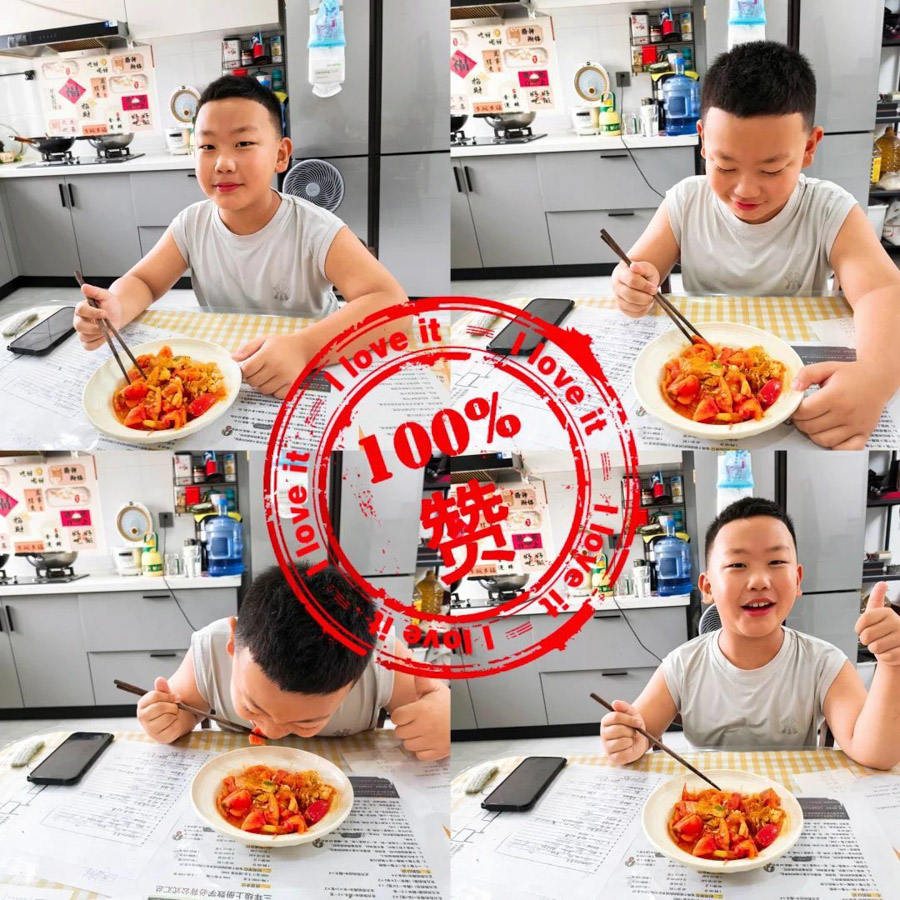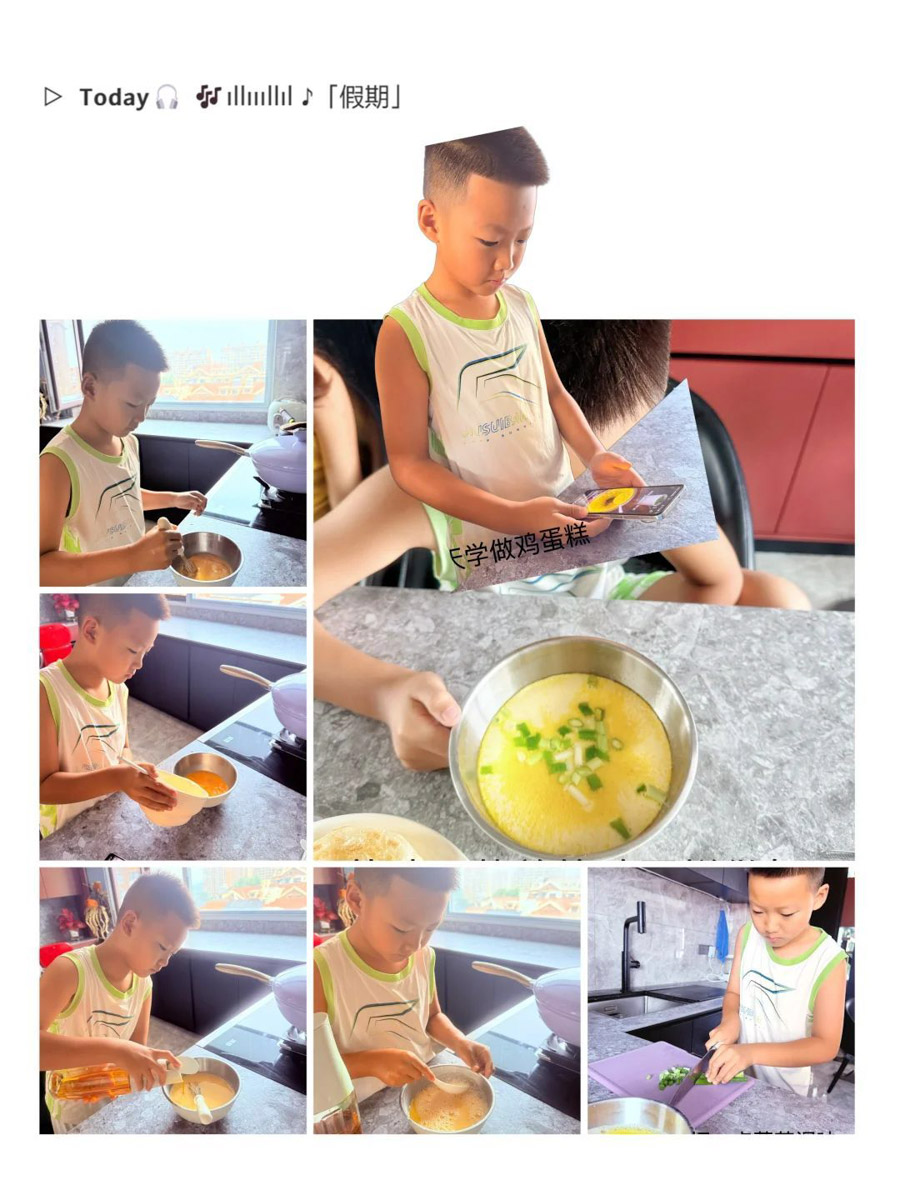 张家硕:今天我和妈妈一起做了香喷喷的**西红柿炒鸡蛋**!我负责洗红红的西红柿,把它们切成小块(妈妈帮我扶着)。我还打了鸡蛋,黄黄的蛋液在碗里跳舞,真好玩!妈妈教我开火、倒油,看着鸡蛋在锅里“滋啦”一声变成金黄色的蛋饼,我有点紧张又很兴奋。最后我们把西红柿倒进去一起炒,香味飘满了厨房!自己动手做的菜,吃起来感觉特别香,感觉自己像个小厨师一样厉害!