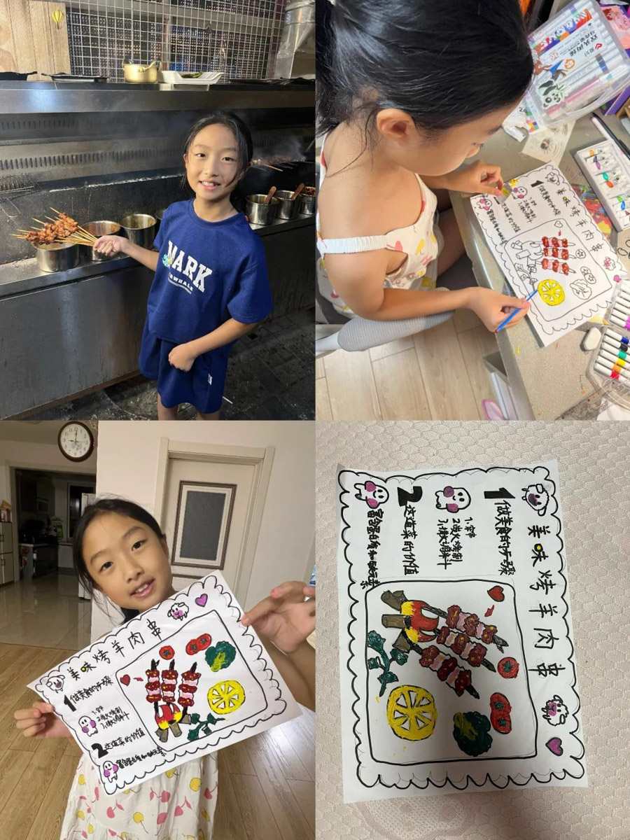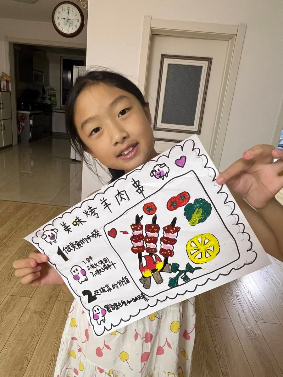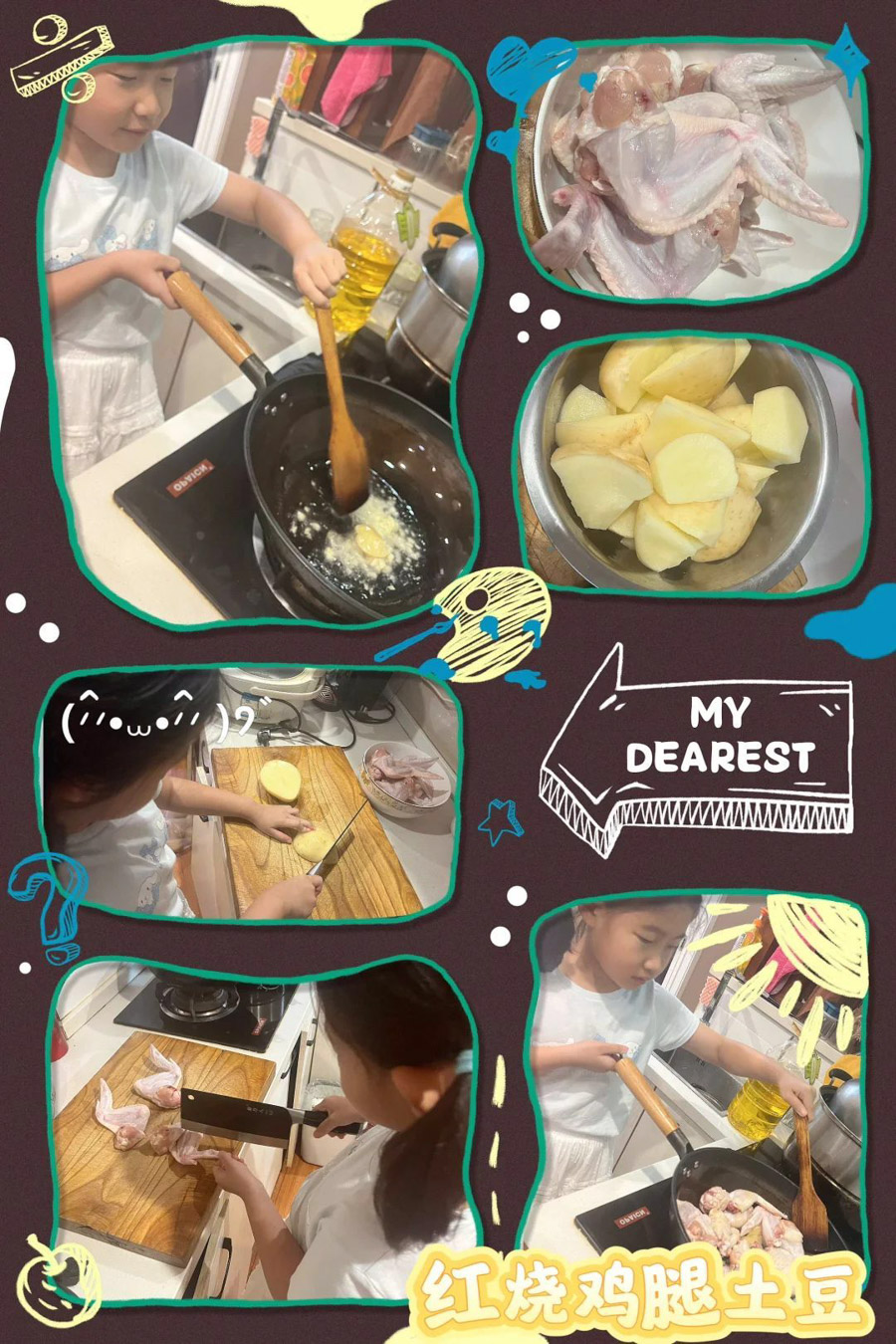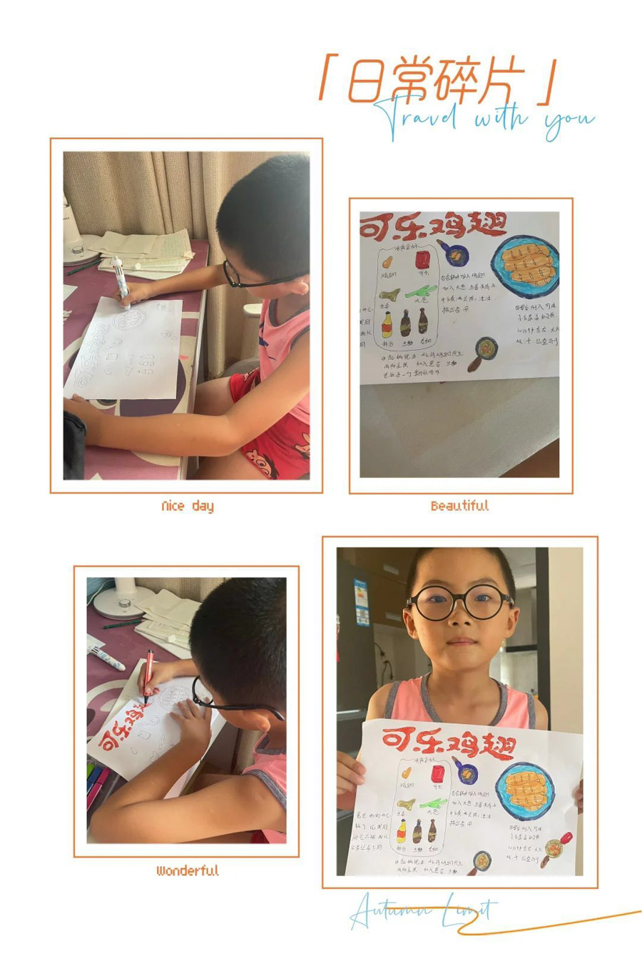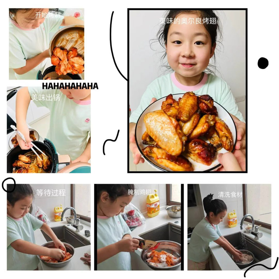 刘妤恩:今天学校活动,我和奶奶一起做了我最爱吃的可乐鸡翅!我帮奶奶把鸡翅洗干净,擦干水。奶奶调好甜甜的酱汁。奶奶负责煎鸡翅,我就在旁边帮忙递调料、看火候。看着鸡翅在锅里慢慢变得金黄油亮,裹上酱汁,我的口水都快流出来了!奶奶说我是她的小帮手。终于吃到嘴里,又香又嫩,太好吃了!我觉得和家人一起做饭特别开心,也知道了奶奶每天做饭很辛苦,谢谢奶奶!