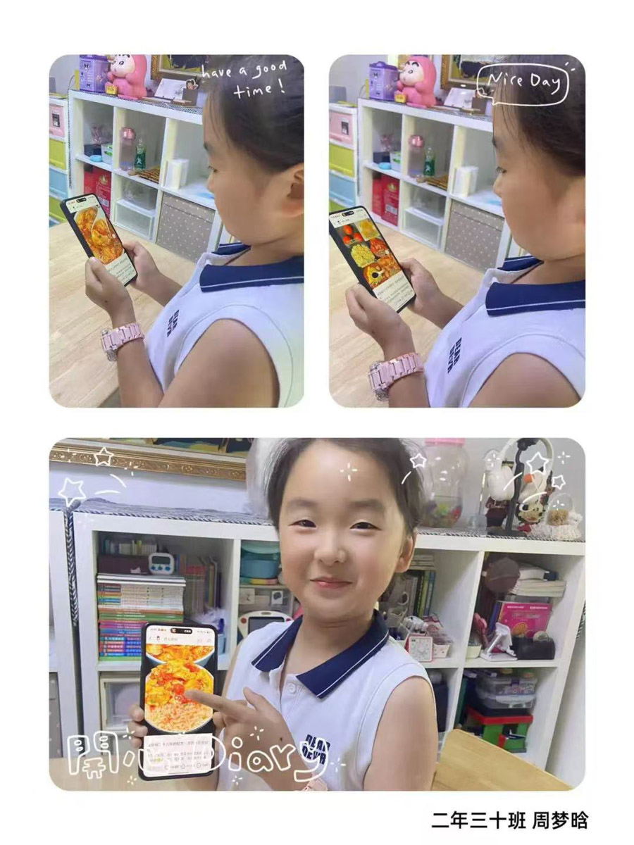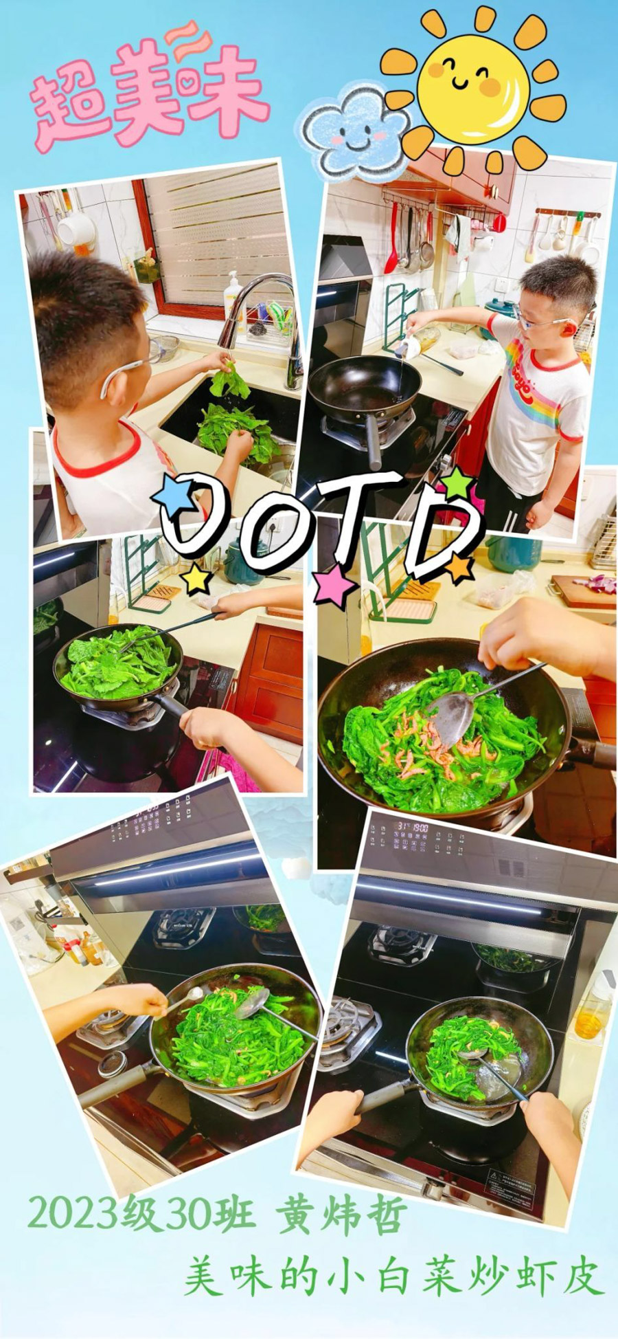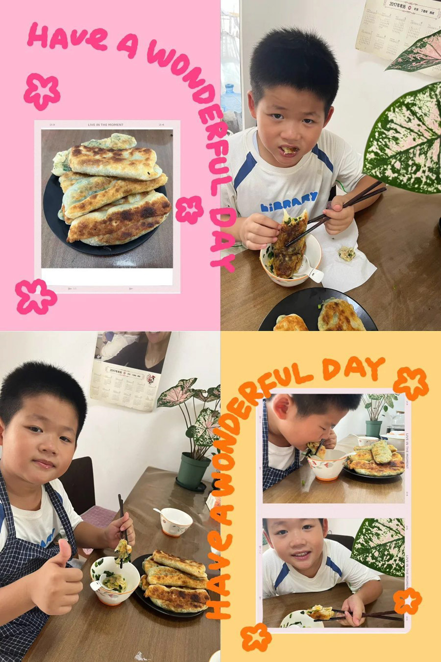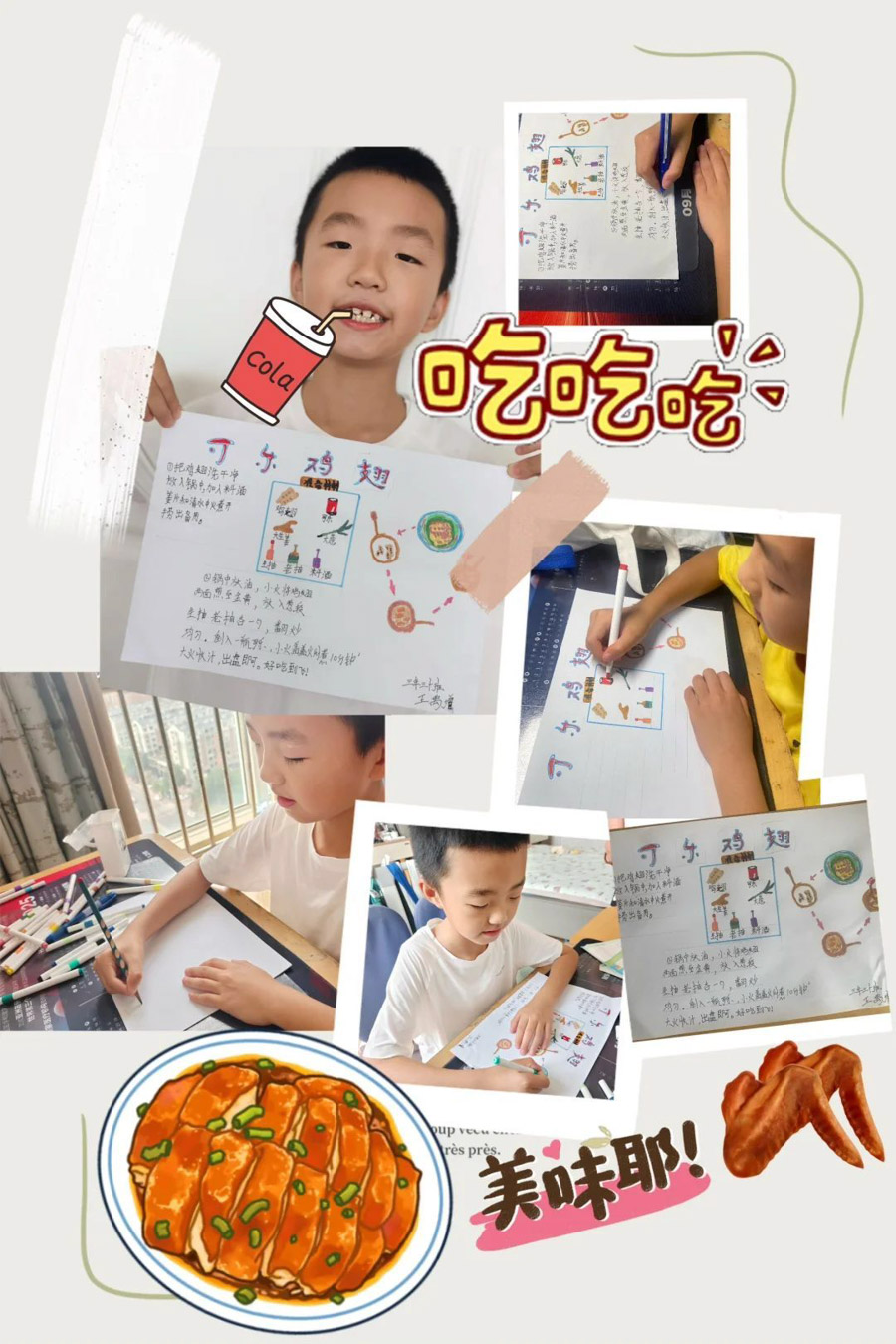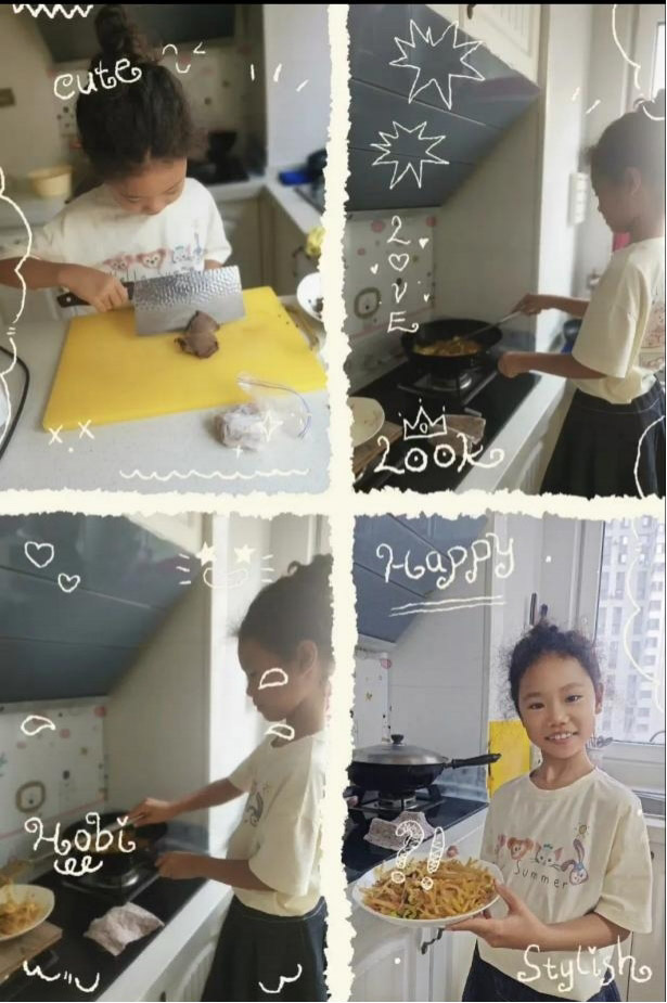 刘妤恩:今天学校活动,我和奶奶一起做了我最爱吃的可乐鸡翅!我帮奶奶把鸡翅洗干净,擦干水。奶奶调好甜甜的酱汁。奶奶负责煎鸡翅,我就在旁边帮忙递调料、看火候。看着鸡翅在锅里慢慢变得金黄油亮,裹上酱汁,我的口水都快流出来了!奶奶说我是她的小帮手。终于吃到嘴里,又香又嫩,太好吃了!我觉得和家人一起做饭特别开心,也知道了奶奶每天做饭很辛苦,谢谢奶奶!