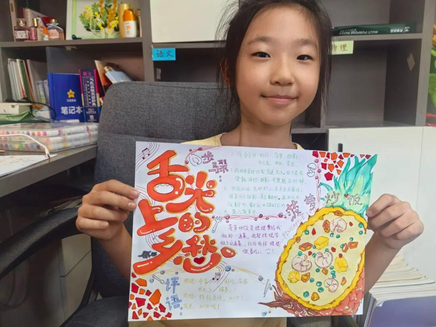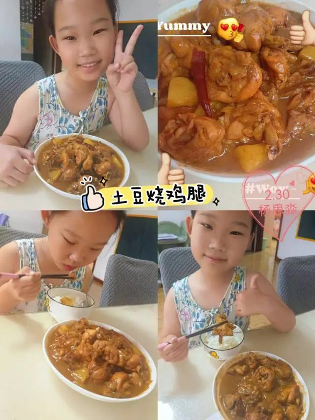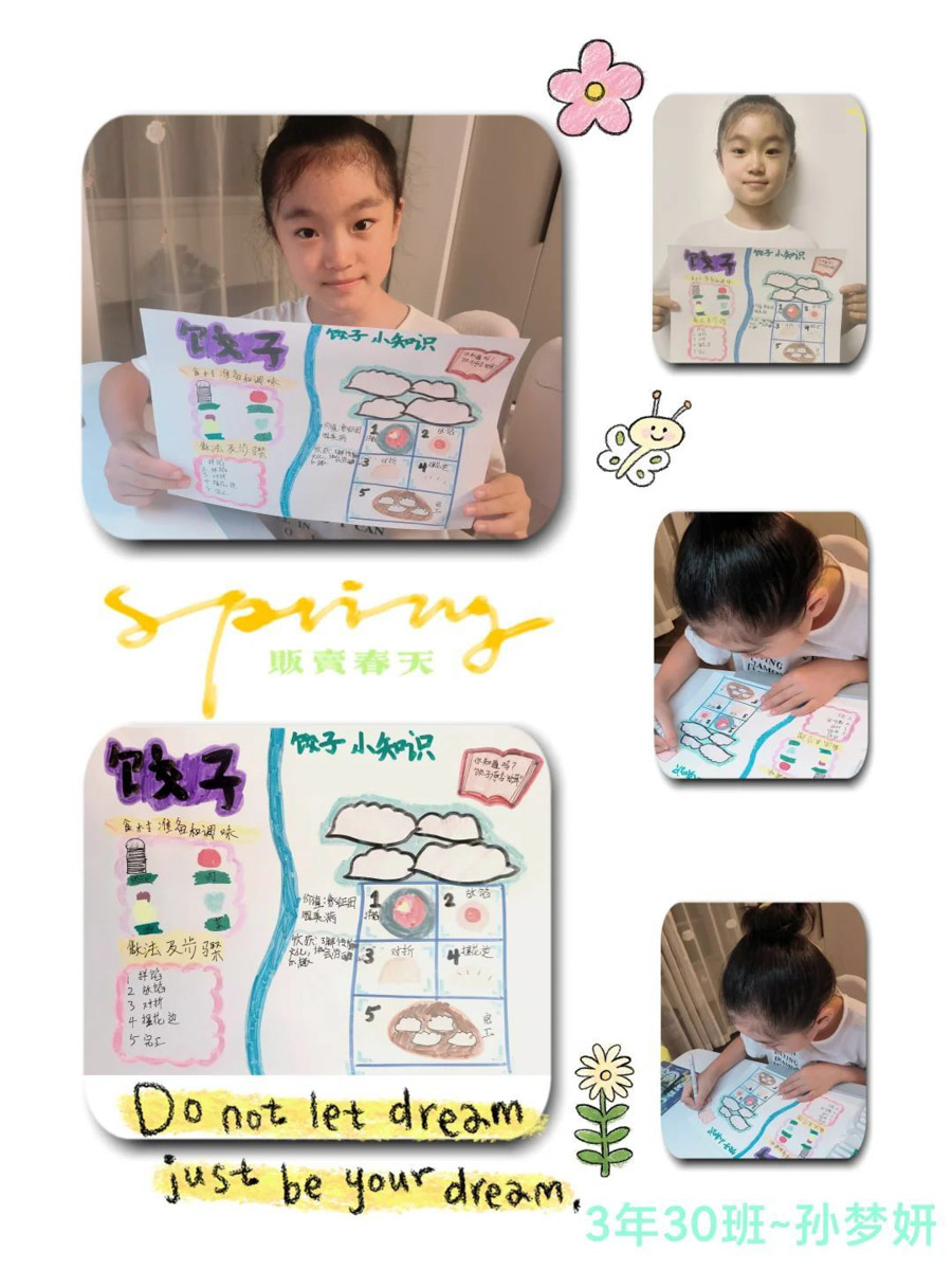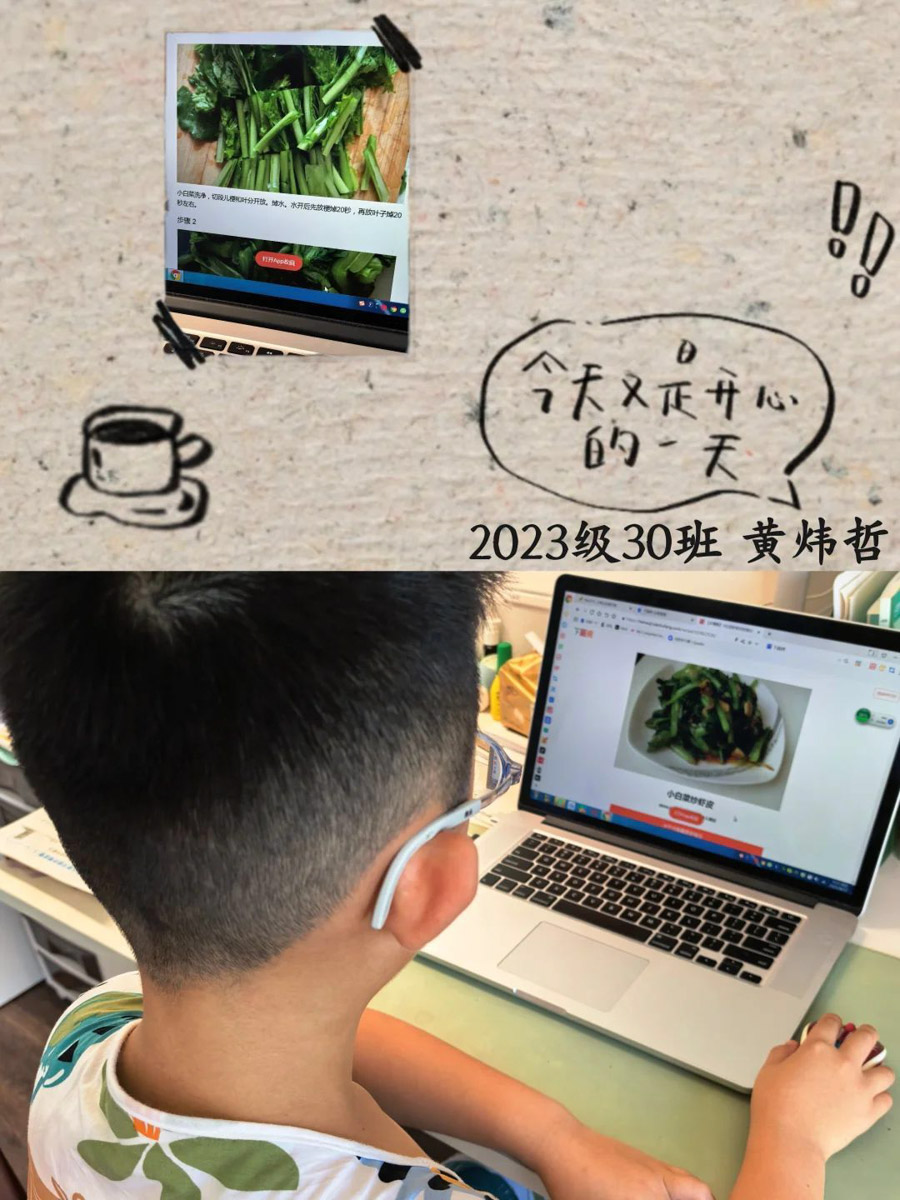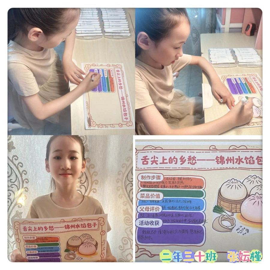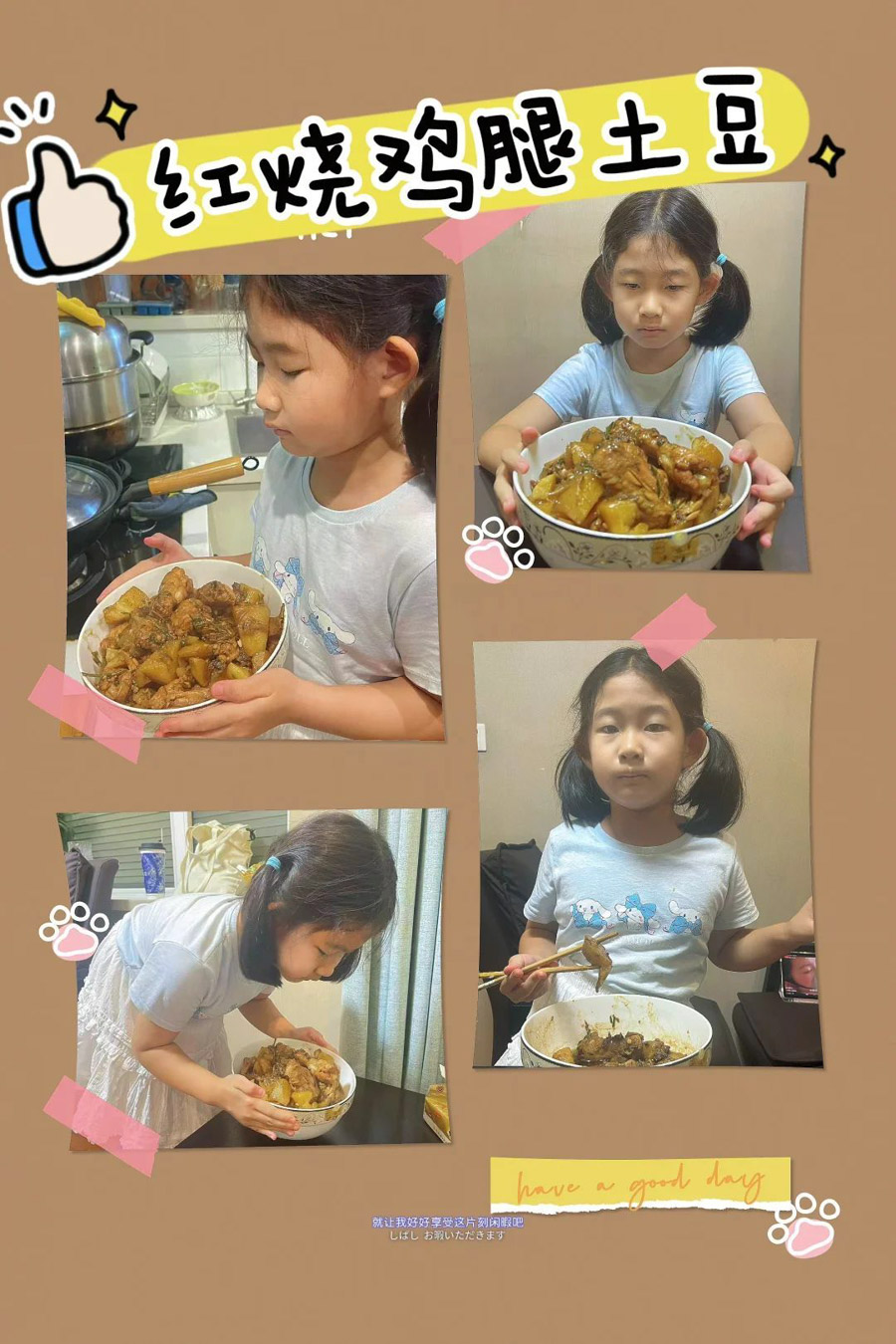 刘妤恩:今天学校活动,我和奶奶一起做了我最爱吃的可乐鸡翅!我帮奶奶把鸡翅洗干净,擦干水。奶奶调好甜甜的酱汁。奶奶负责煎鸡翅,我就在旁边帮忙递调料、看火候。看着鸡翅在锅里慢慢变得金黄油亮,裹上酱汁,我的口水都快流出来了!奶奶说我是她的小帮手。终于吃到嘴里,又香又嫩,太好吃了!我觉得和家人一起做饭特别开心,也知道了奶奶每天做饭很辛苦,谢谢奶奶!