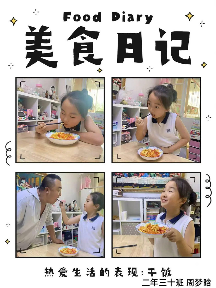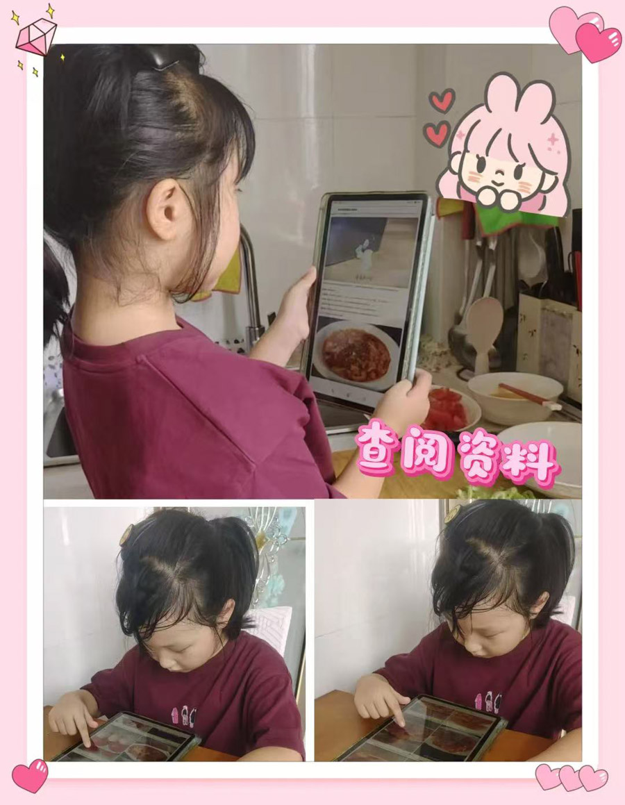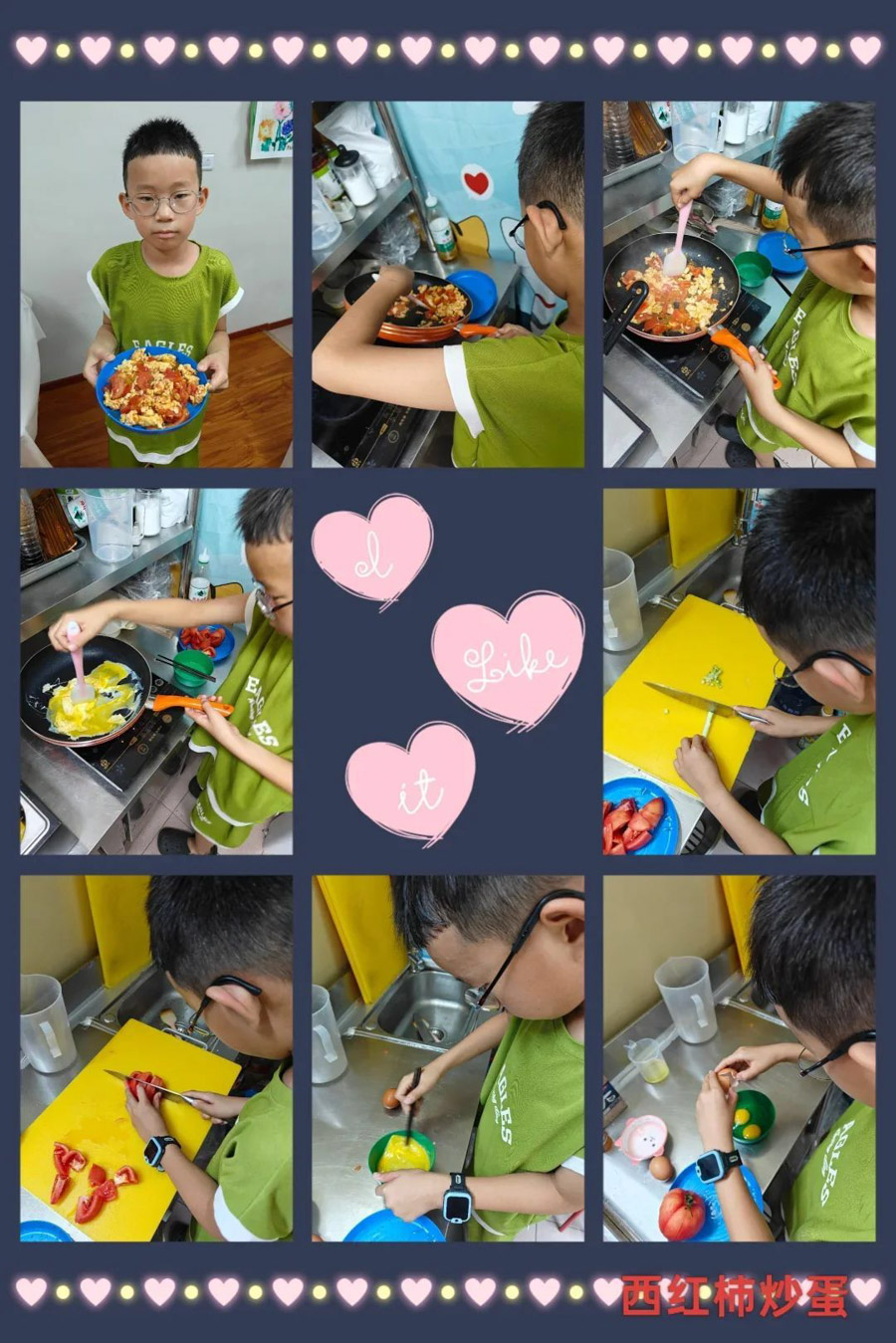 三餐四季,温暖有趣” 小小厨师们准备好食材后,在家长的陪伴下完成了第一道美食!蒸煮炒焖炖,让美食走上餐桌;酸甜苦辣咸,让美食色香俱全,这才是美食的魅力所在!