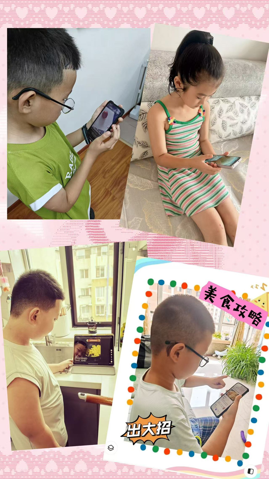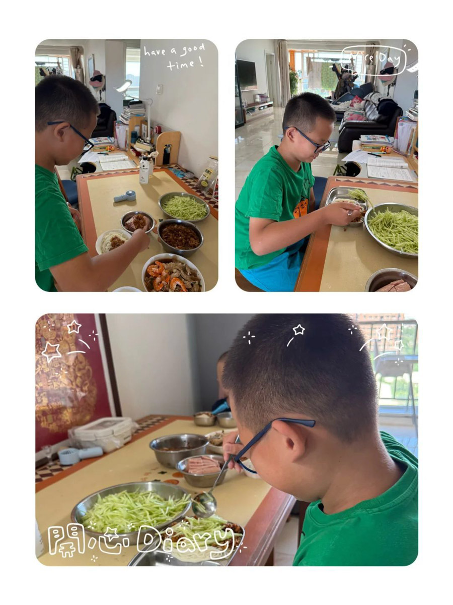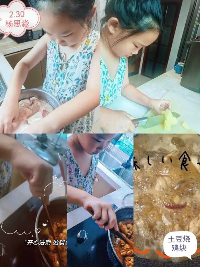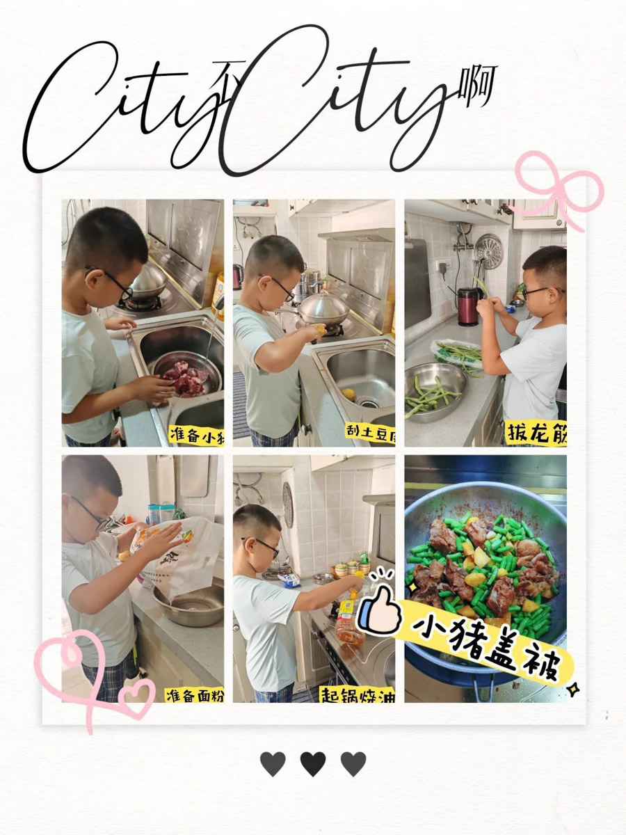 三餐四季,温暖有趣” 小小厨师们准备好食材后,在家长的陪伴下完成了第一道美食!蒸煮炒焖炖,让美食走上餐桌;酸甜苦辣咸,让美食色香俱全,这才是美食的魅力所在!