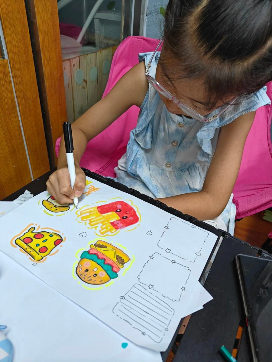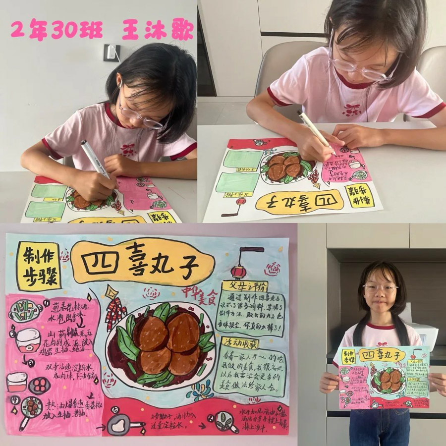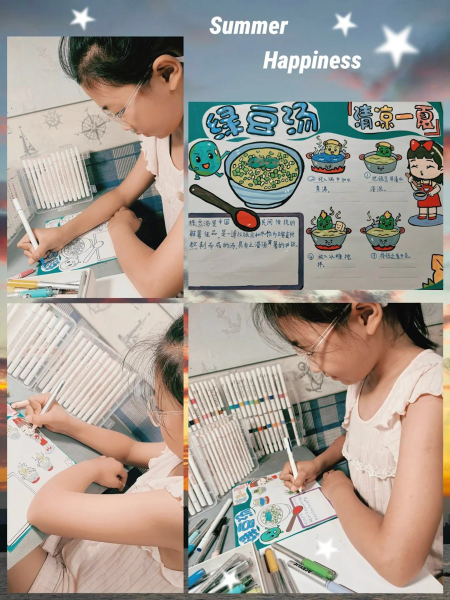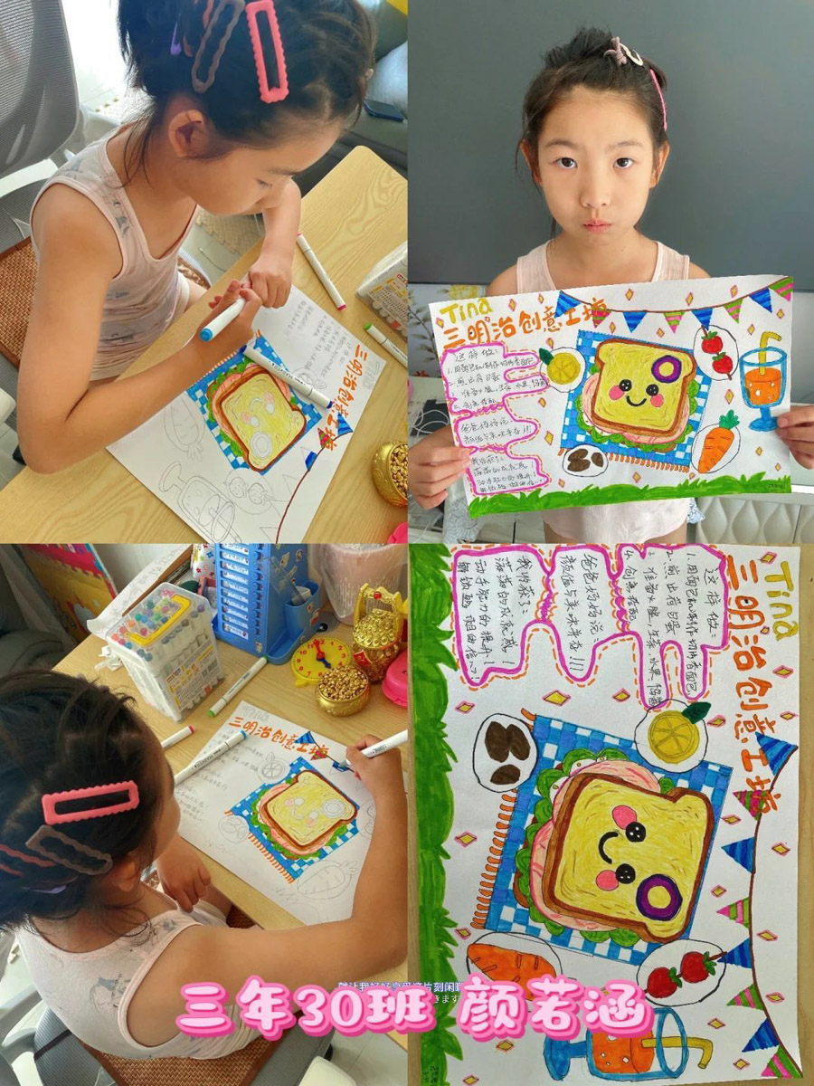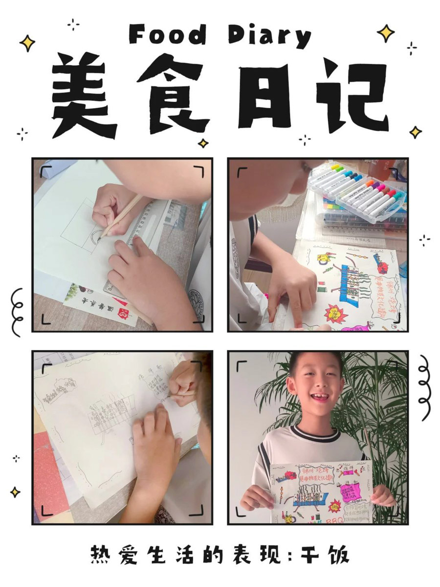 孩子们将自己对美食的理解用画笔画出来,以独特的视角和表达方式挥动手中的画笔,大胆构思,细细勾勒,认真上色。一张张精美的美食小报,图文并茂,让孩子们认识了家乡博大精深的美食文化,体验制作美食的过程,享受创造美食的快乐,进而发现生活的美好。