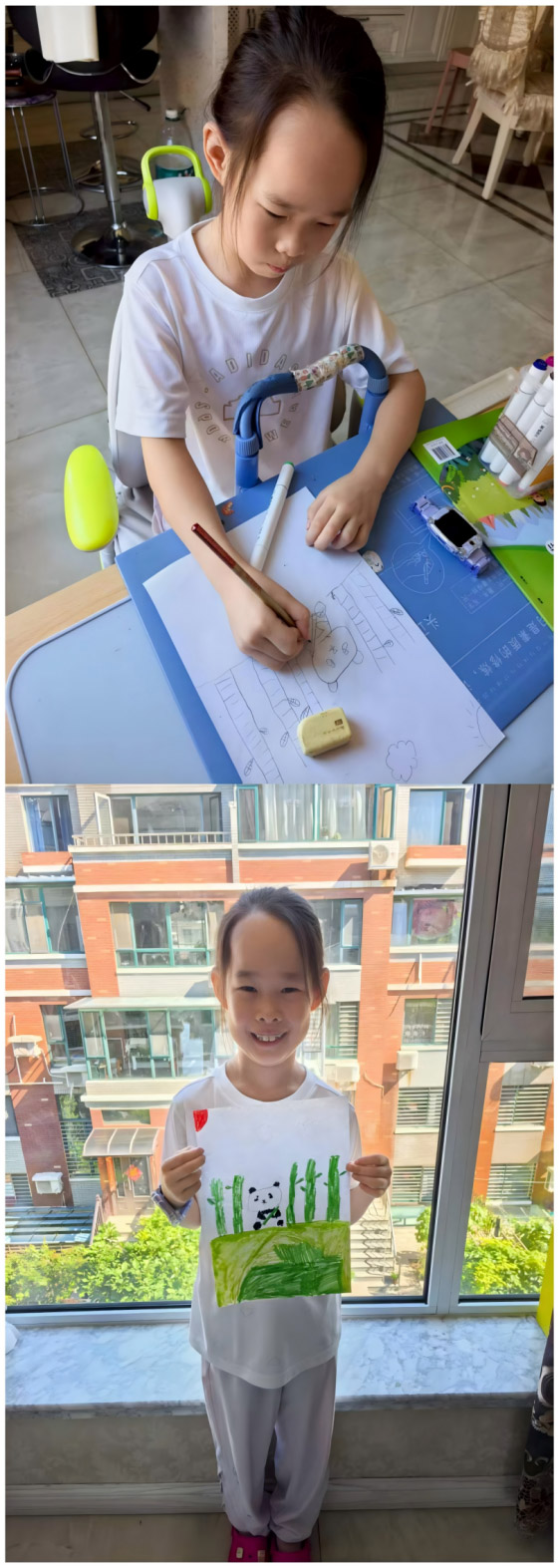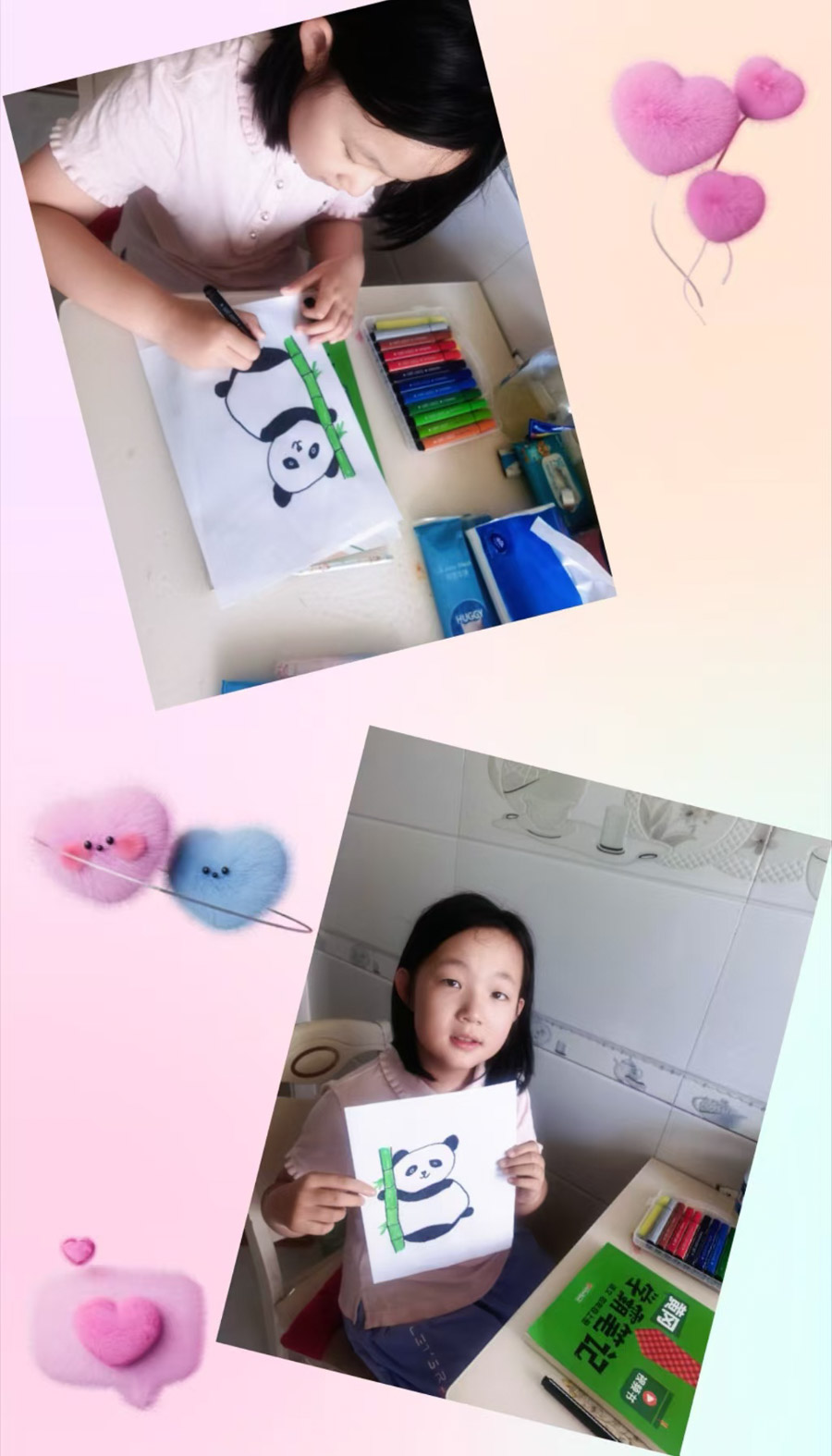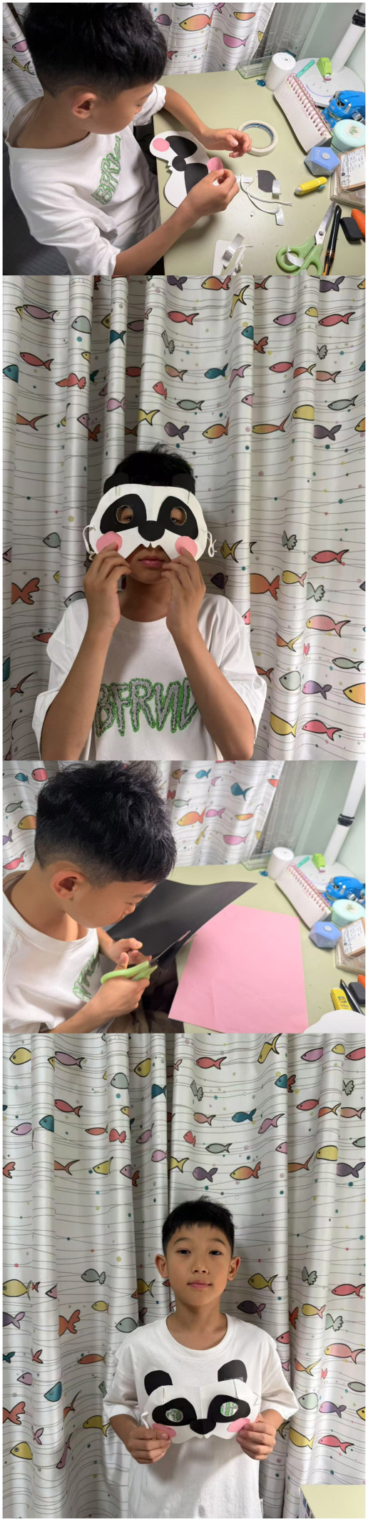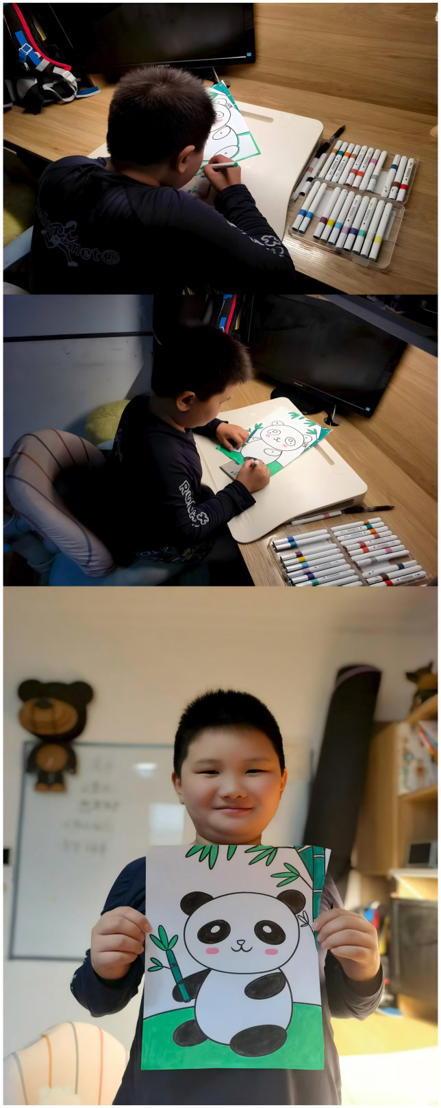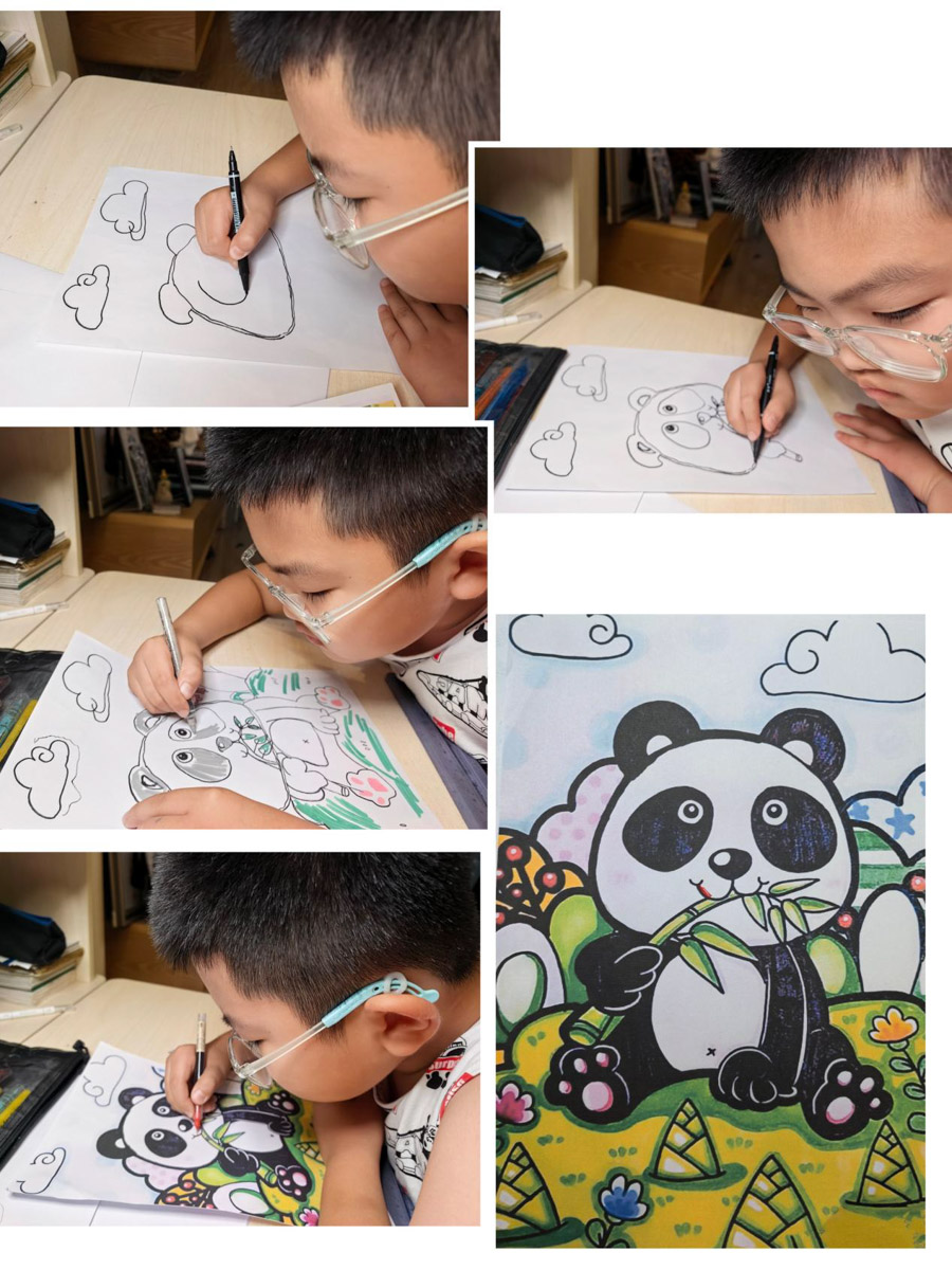看着孩子积极参与这次熊猫主题实践活动,作为家长,我感到特别欣慰。活动刚开始时,孩子对熊猫的了解还很有限,只是觉得熊猫很可爱。但为了完成手抄报,他主动去查阅资料,了解熊猫的生活习性、分布地区等知识,还会和我们讨论哪些内容更适合放在手抄报上;在准备 “小小讲解员” 的讲述内容时,一遍遍地练习,从一开始的紧张忘词,到后来能流利地讲述熊猫的故事,这个过程中他的表达能力和自信心都有了明显的提升;让我惊喜的是,孩子在活动中学会了主动思考和解决问题,比如制作手工熊猫遇到困难时,他没有放弃,而是想办法克服。这次活动不仅让孩子学到了知识,还培养了他的多种能力,这样的实践活动真的很有意义。