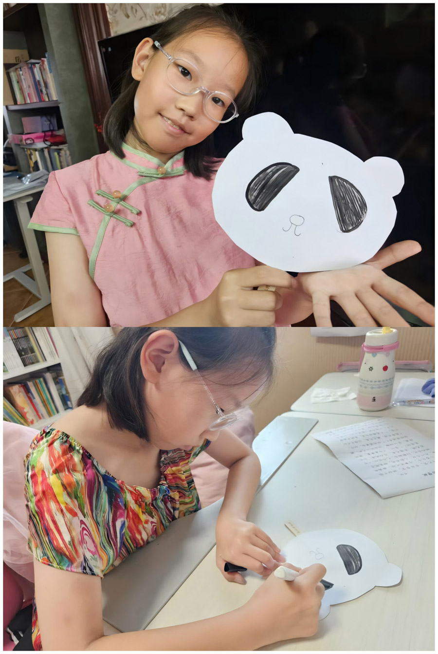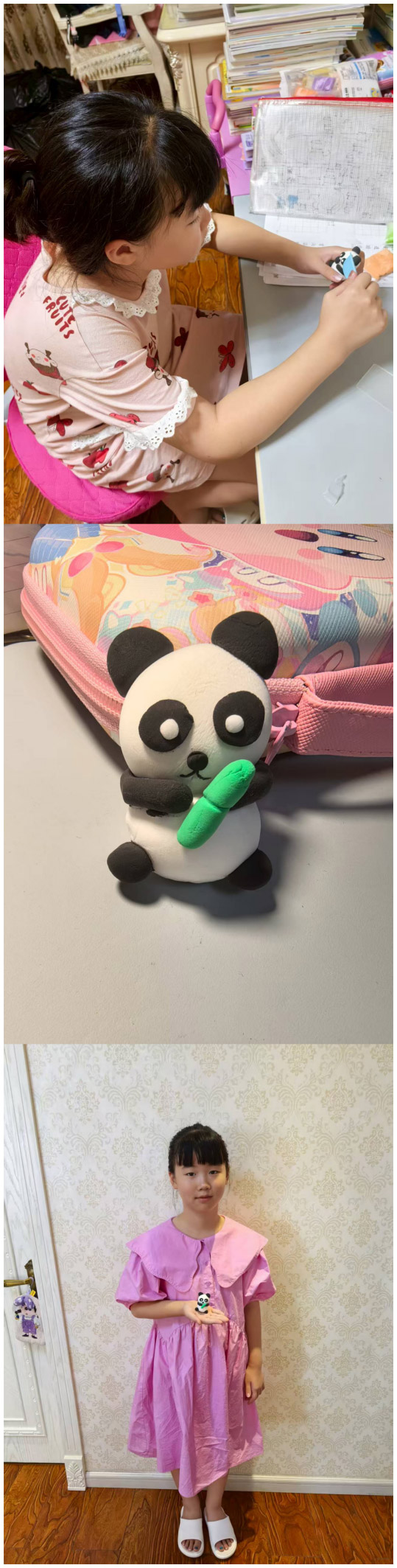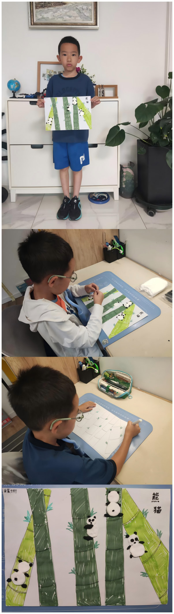 参与这次 “走进大熊猫的奇妙世界” 活动,我就像开启了一场精彩的探险。画熊猫的时候,我为了抓住它啃竹子的神态,特意去看了好多熊猫的视频,原来熊猫吃竹子时会先把竹叶捋下来,那个样子太可爱了;制作黏土熊猫时,我一开始总捏不好它黑白相间的皮毛,后来慢慢摸索,终于做出了一只圆滚滚的熊猫,特别有成就感;在写熊猫自我介绍的小作文时,我好像真的变成了一只熊猫,想象着自己在竹林里玩耍的场景,不知不觉就写了好多字;通过这次活动,我不仅学到了很多关于熊猫的知识,还觉得语文变得特别有趣,原来生活中处处都有语文的影子。