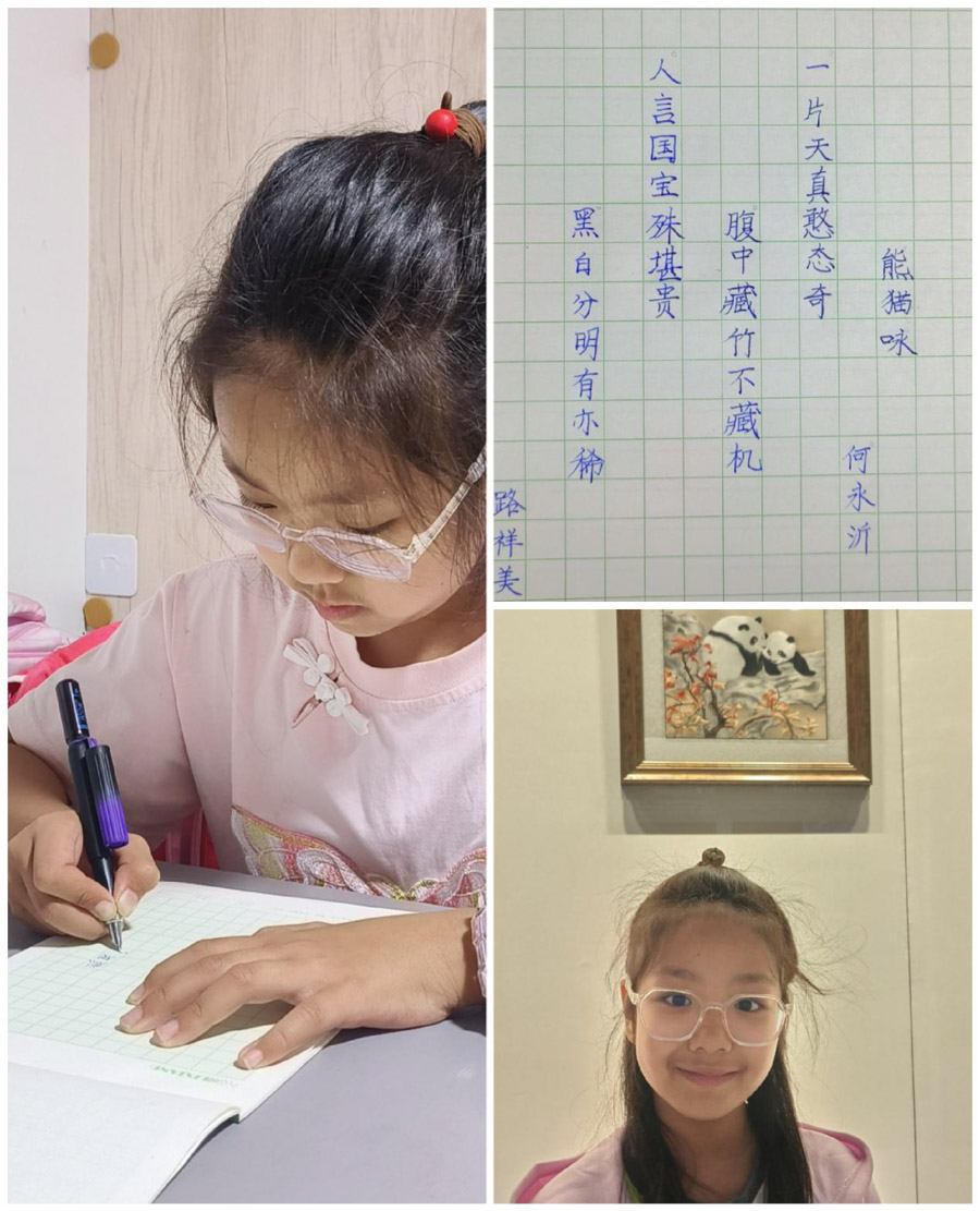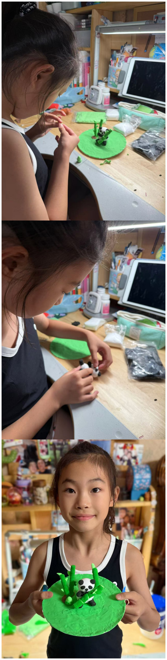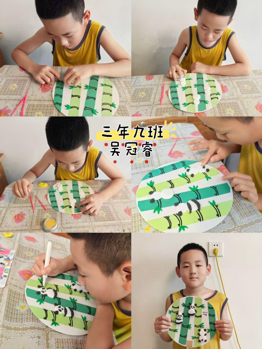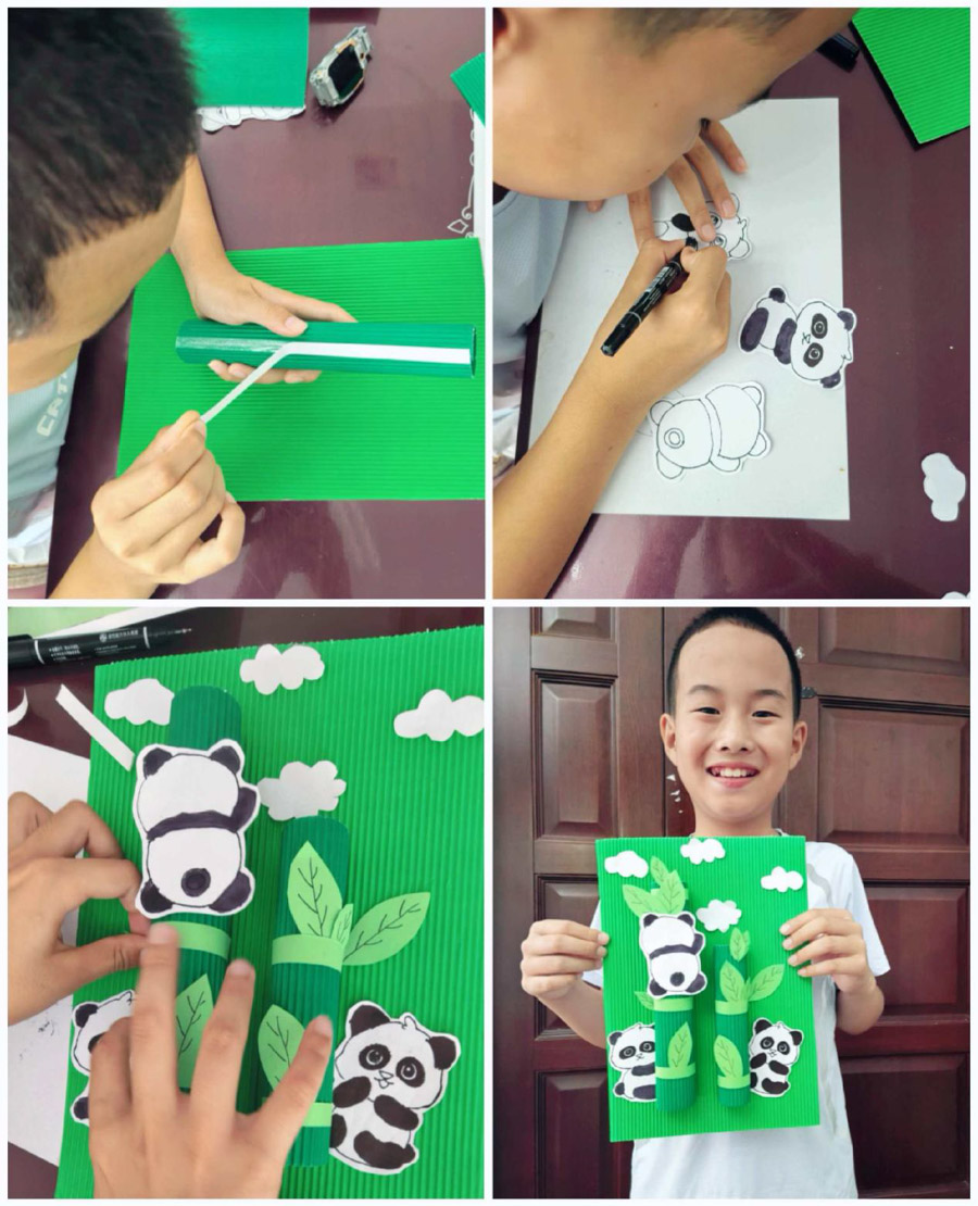 参与这次 “走进大熊猫的奇妙世界” 活动,我就像开启了一场精彩的探险。画熊猫的时候,我为了抓住它啃竹子的神态,特意去看了好多熊猫的视频,原来熊猫吃竹子时会先把竹叶捋下来,那个样子太可爱了;制作黏土熊猫时,我一开始总捏不好它黑白相间的皮毛,后来慢慢摸索,终于做出了一只圆滚滚的熊猫,特别有成就感;在写熊猫自我介绍的小作文时,我好像真的变成了一只熊猫,想象着自己在竹林里玩耍的场景,不知不觉就写了好多字;通过这次活动,我不仅学到了很多关于熊猫的知识,还觉得语文变得特别有趣,原来生活中处处都有语文的影子。